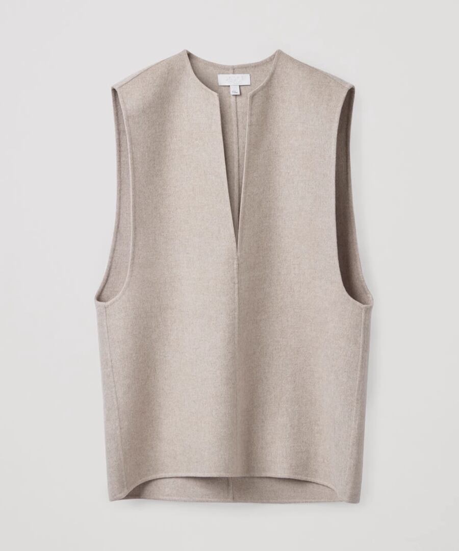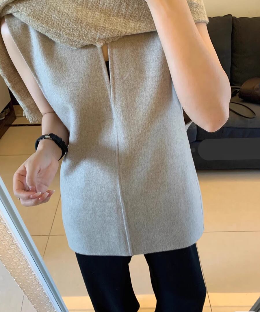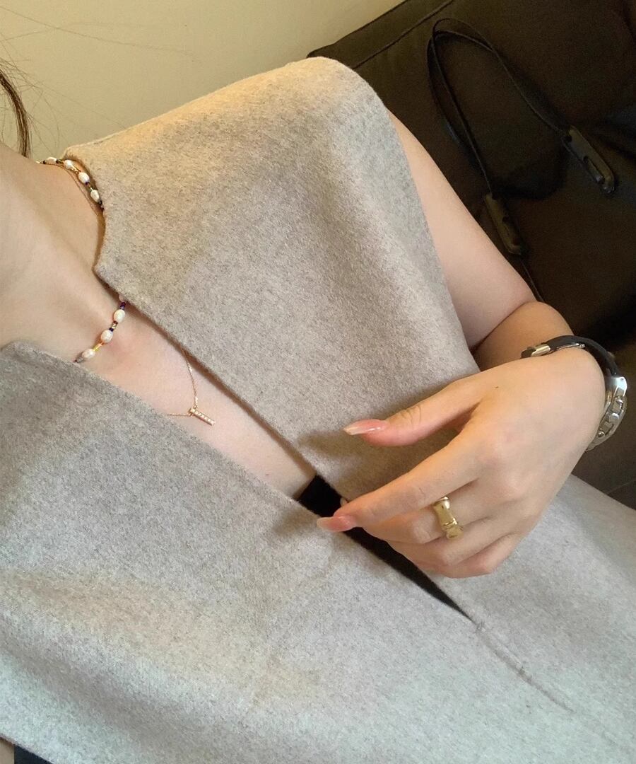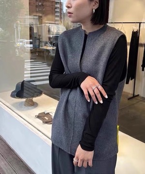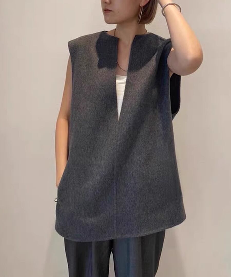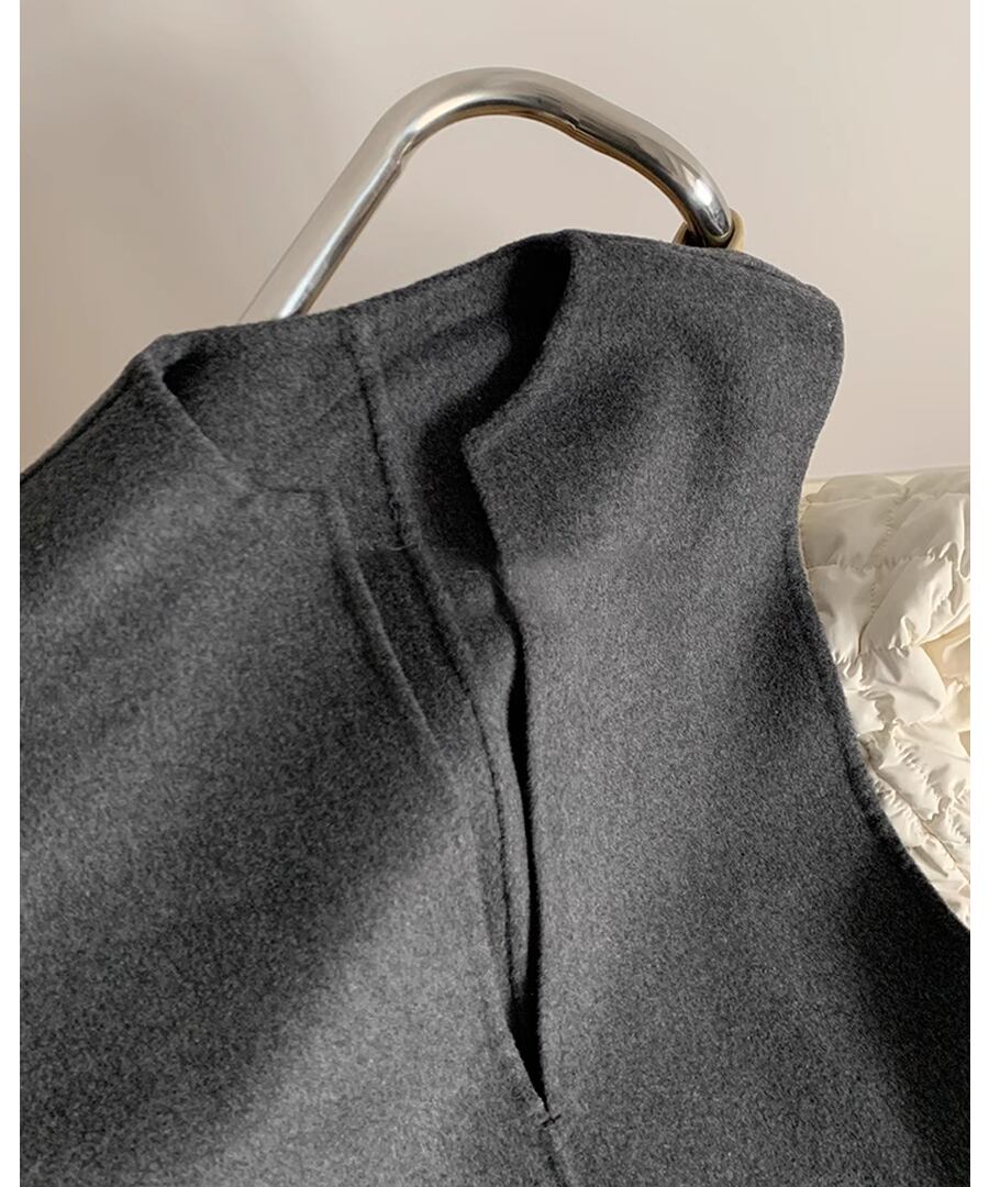 ウール素材のVネックベストは、寒い季節にピッタリのアイテムです。