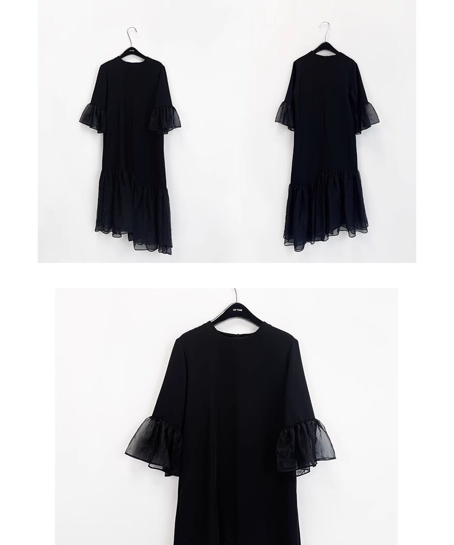 アシンメトリーシフォンフリルが華やかなワンピース。