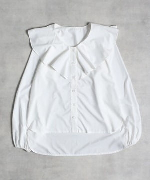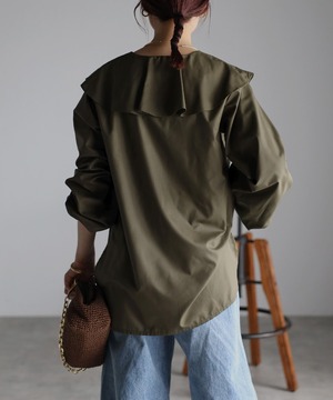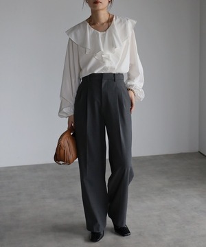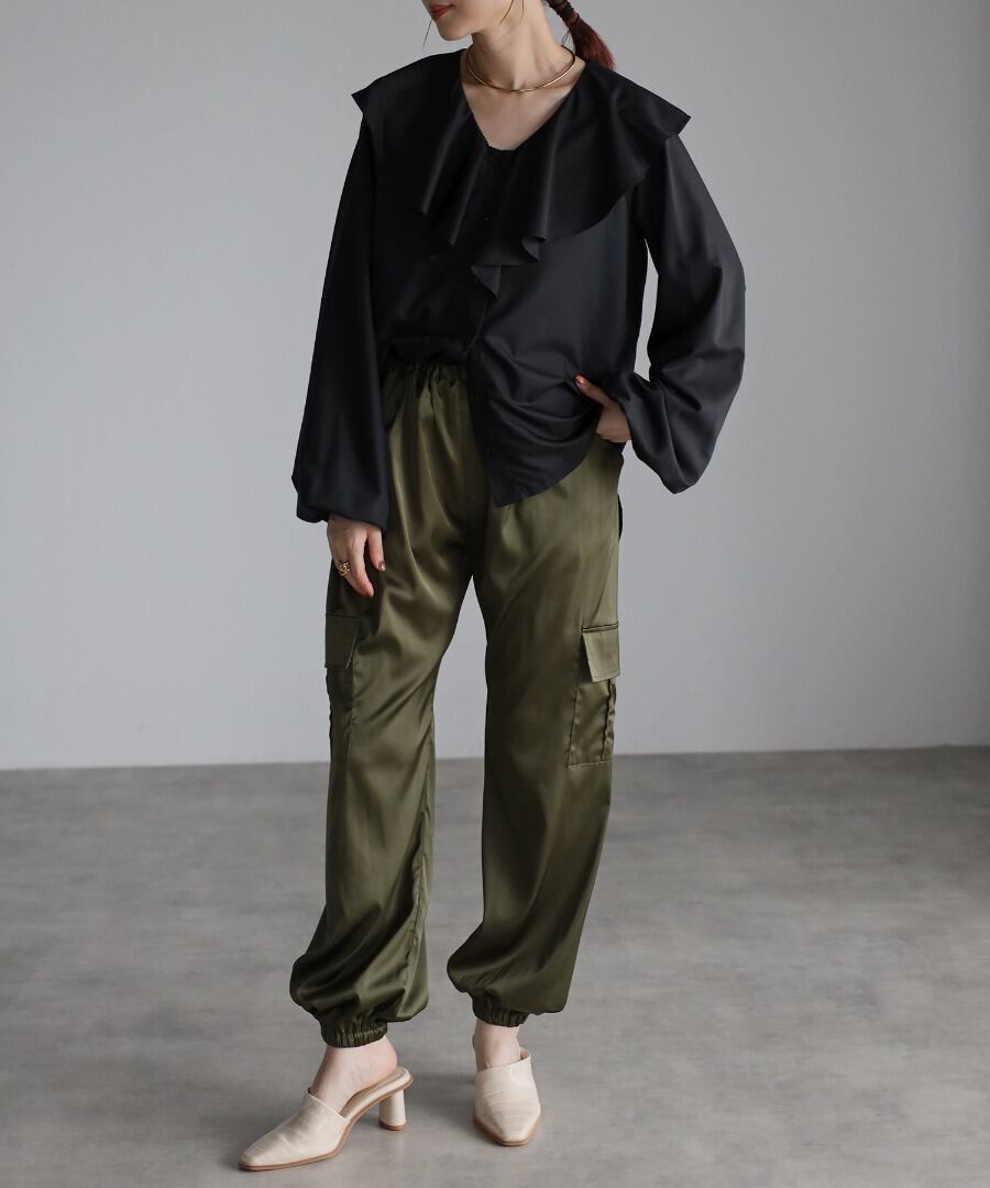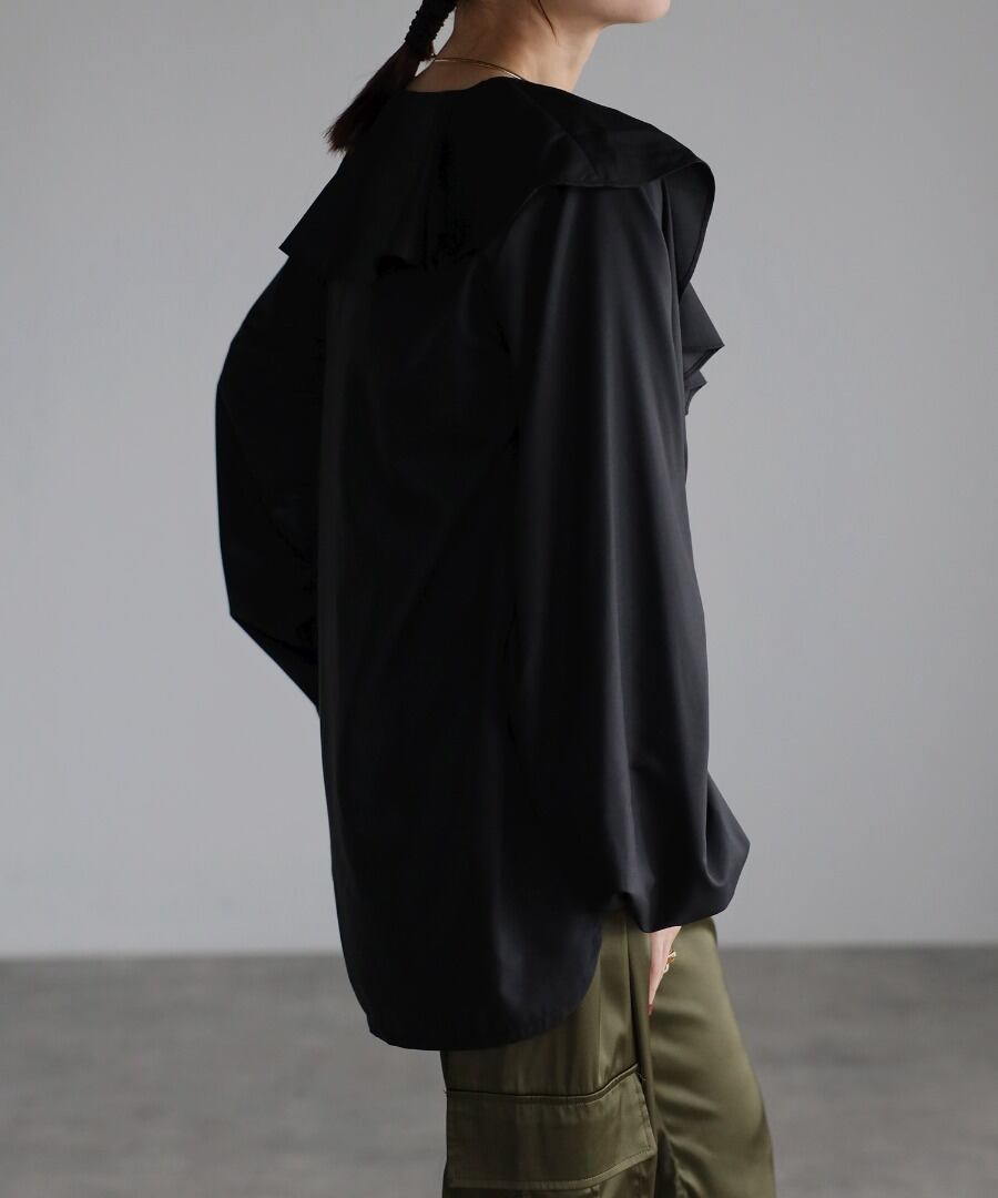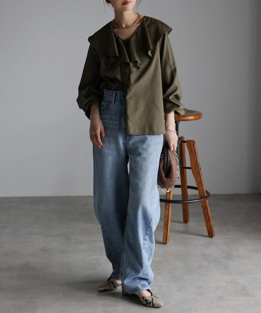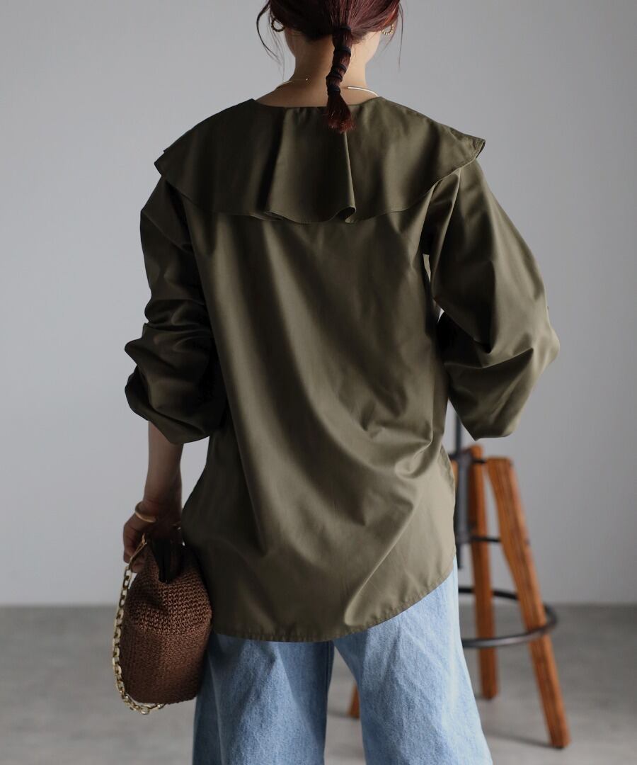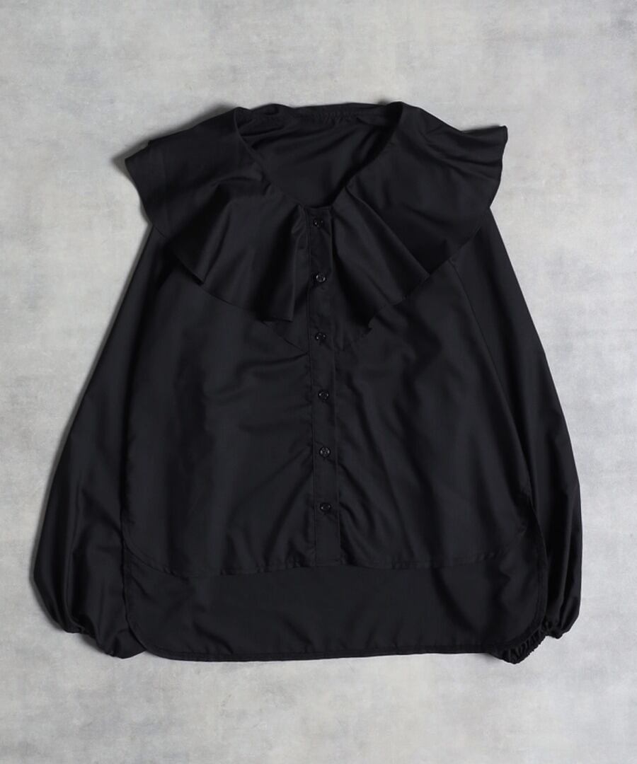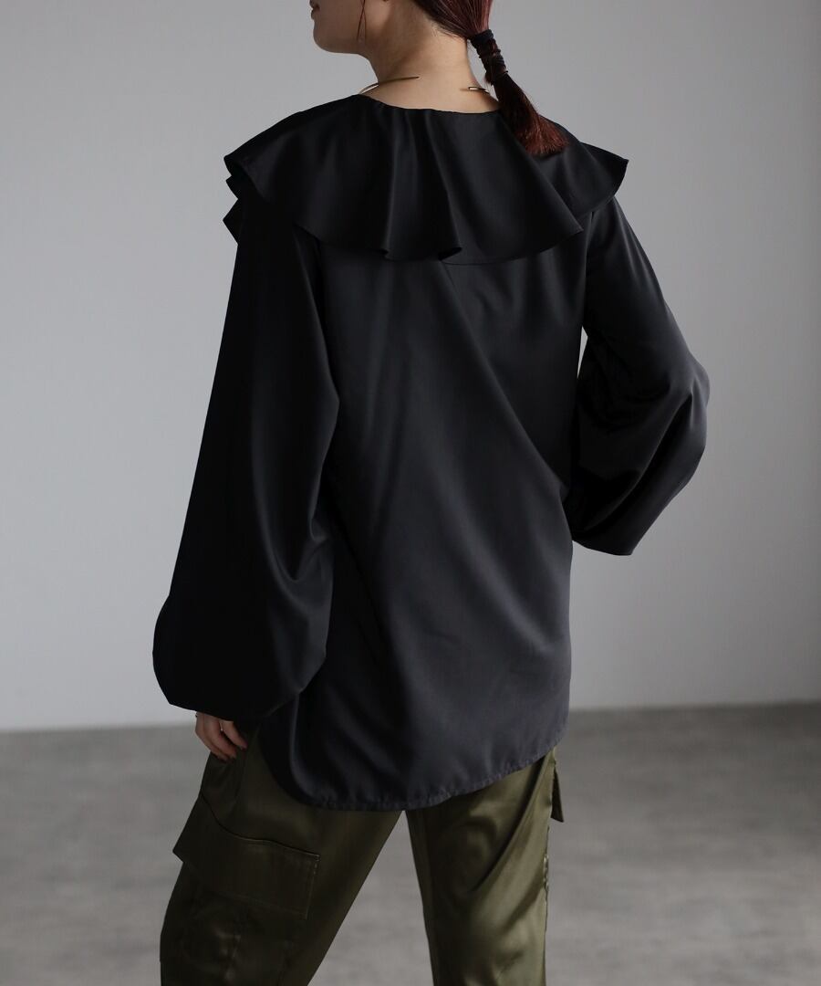 女性らしいふんわりディテールが華やかなフリルカラーブラウス