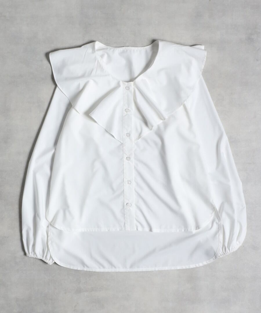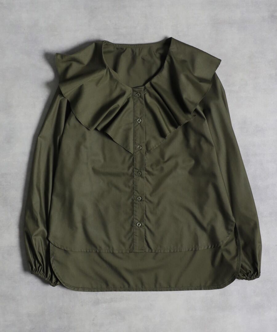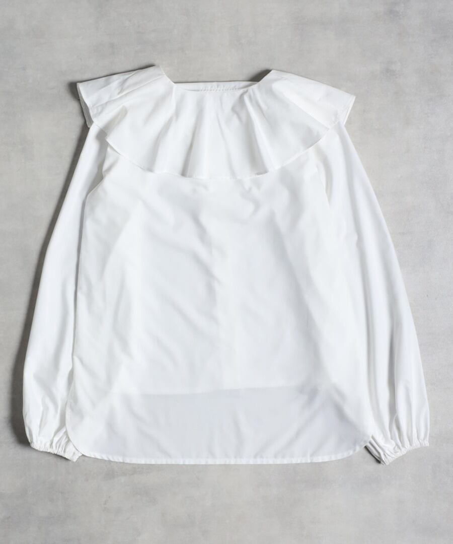 ほどよいボリューム感のフリル襟デザインが魅力のフェミニンなブラウス。