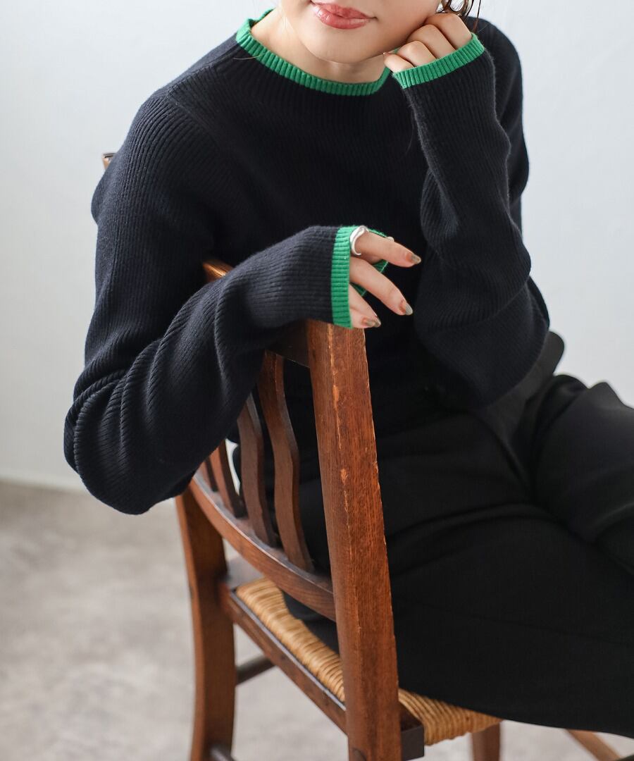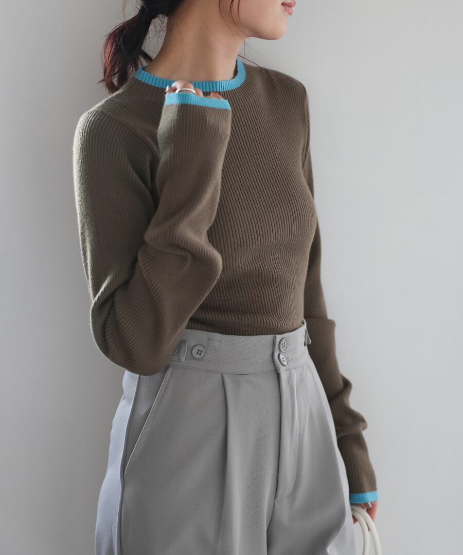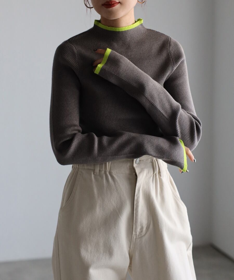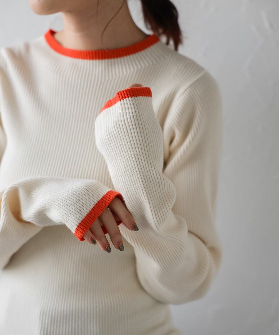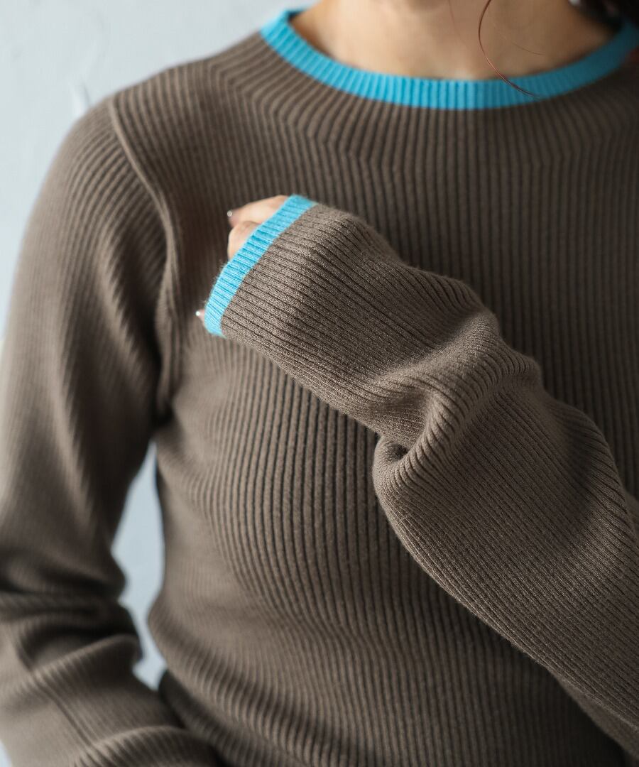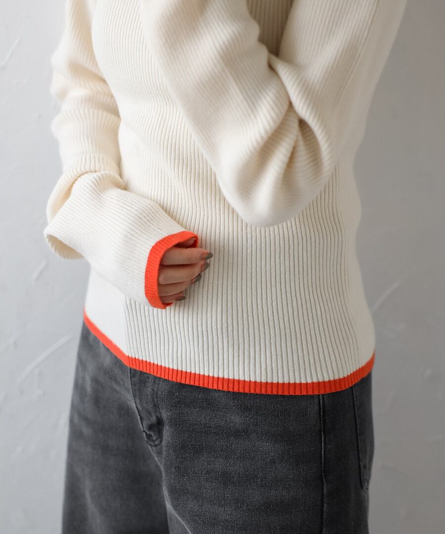 個性的なバイカラーデザインが目を惹く配色リブニット