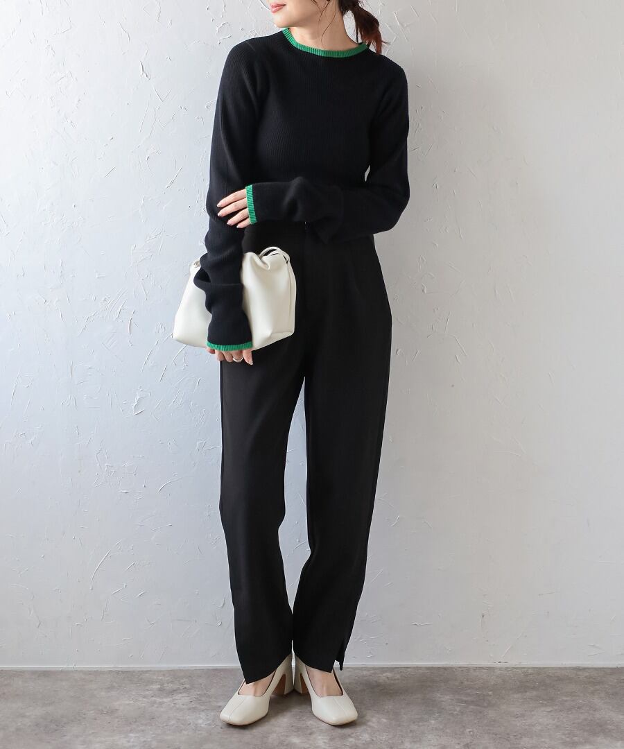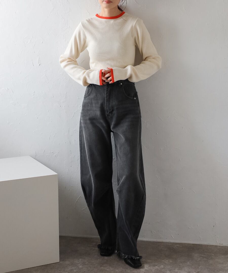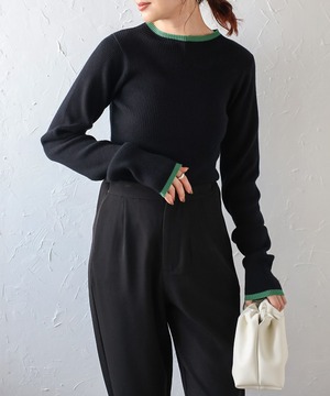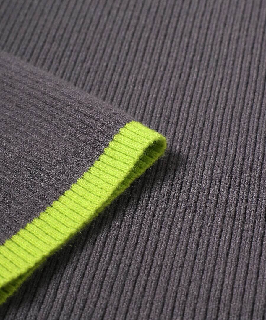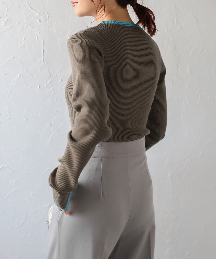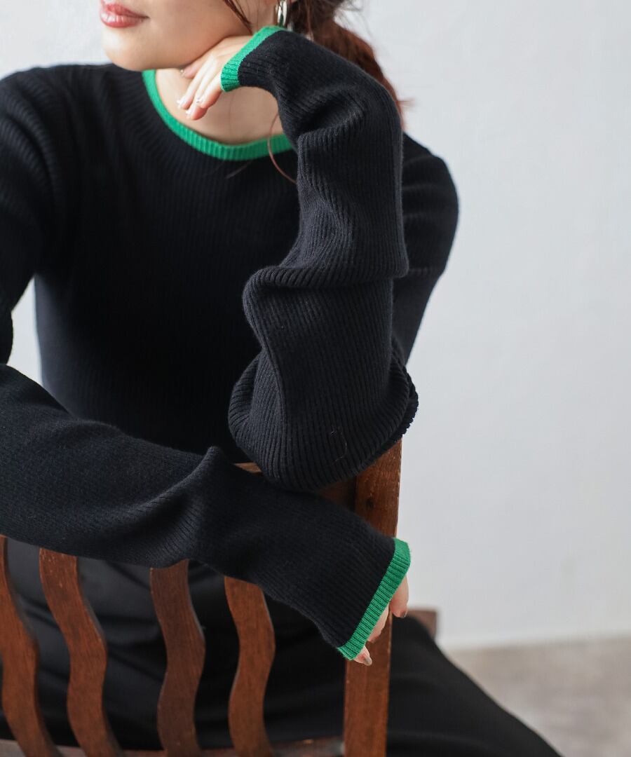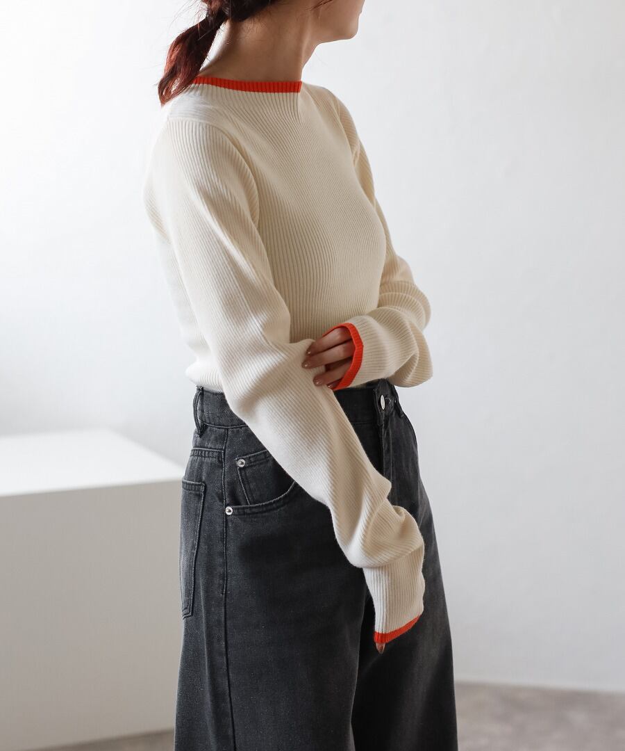個性的なバイカラーデザインが目を惹く配色リブニット