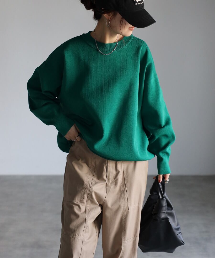鮮やかなカラーで気分を上げる。オーバーサイズスウェットライクニット