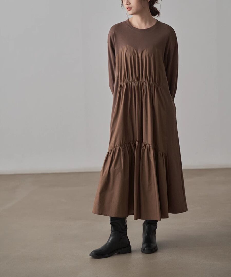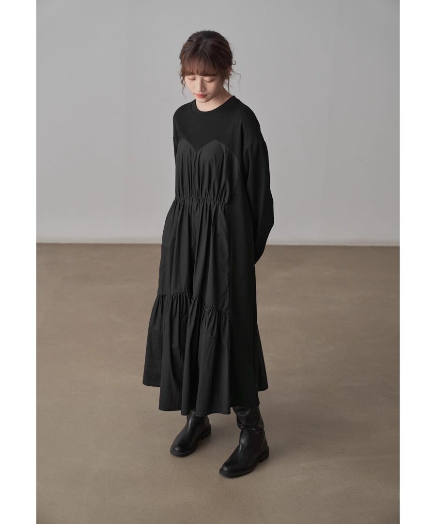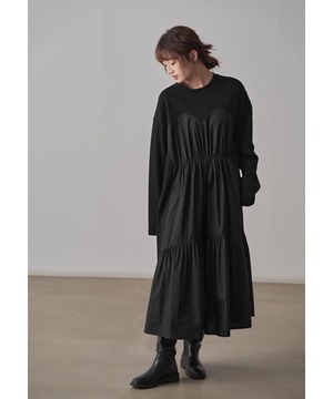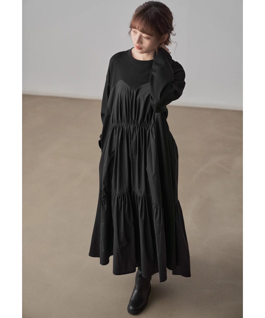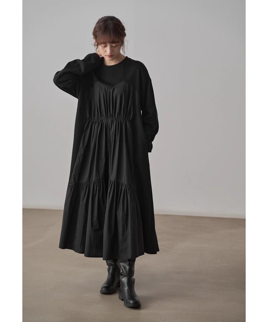 素材感の違う生地を合わせたビスチェ風デザインが今どきです