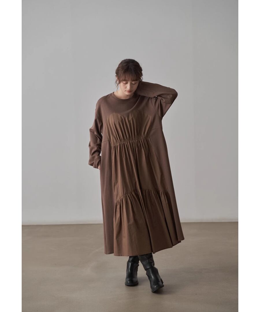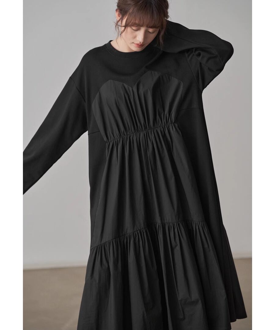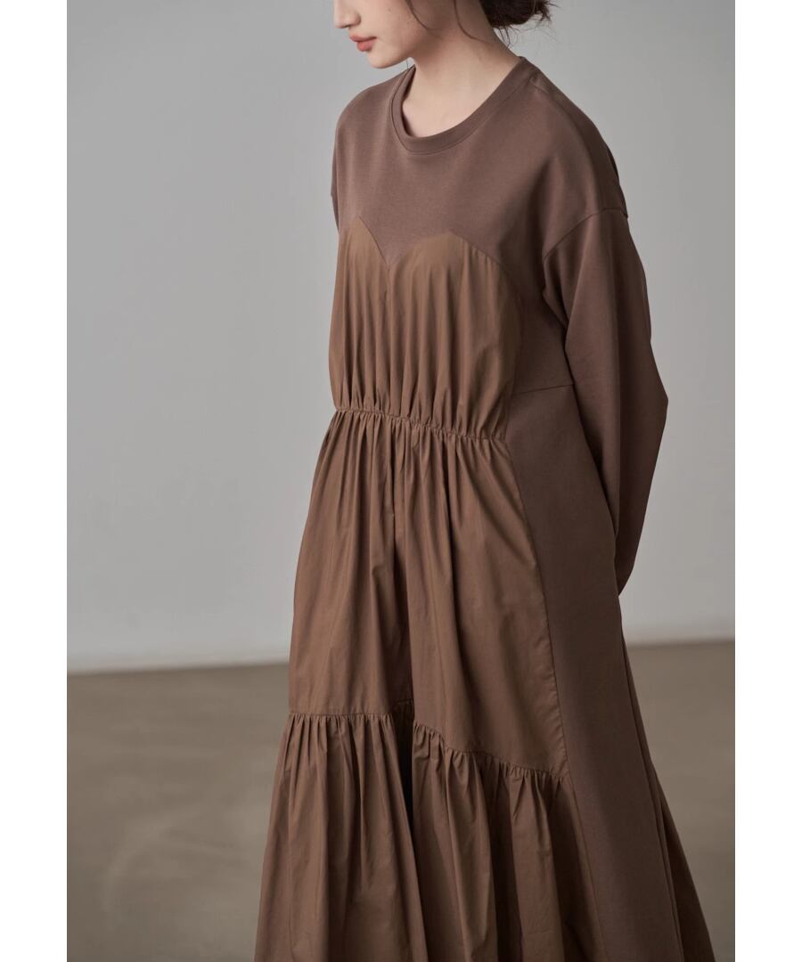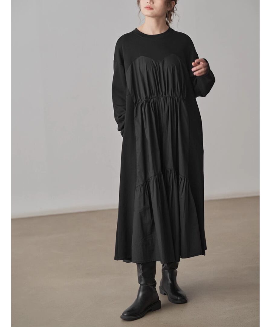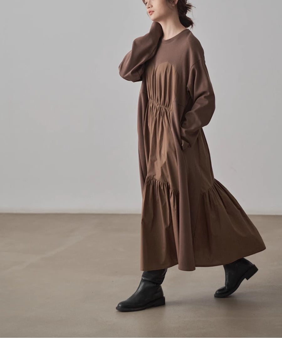 素材感の違う生地を合わせたビスチェ風デザインが今どきです