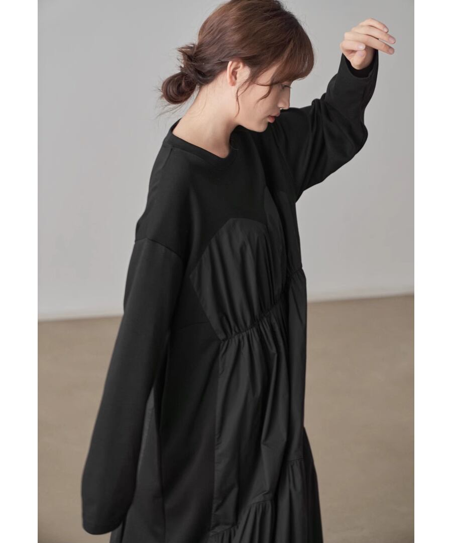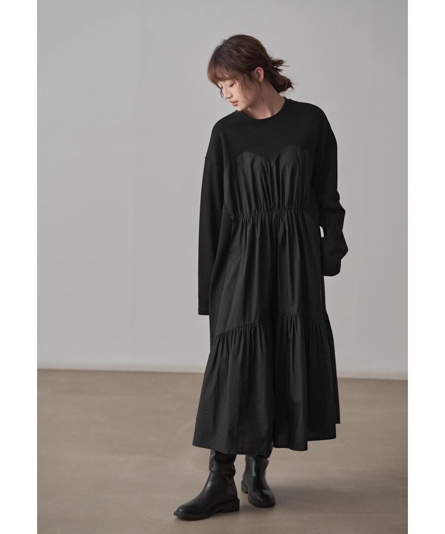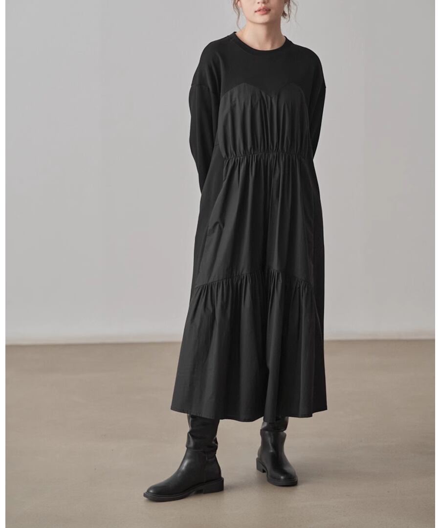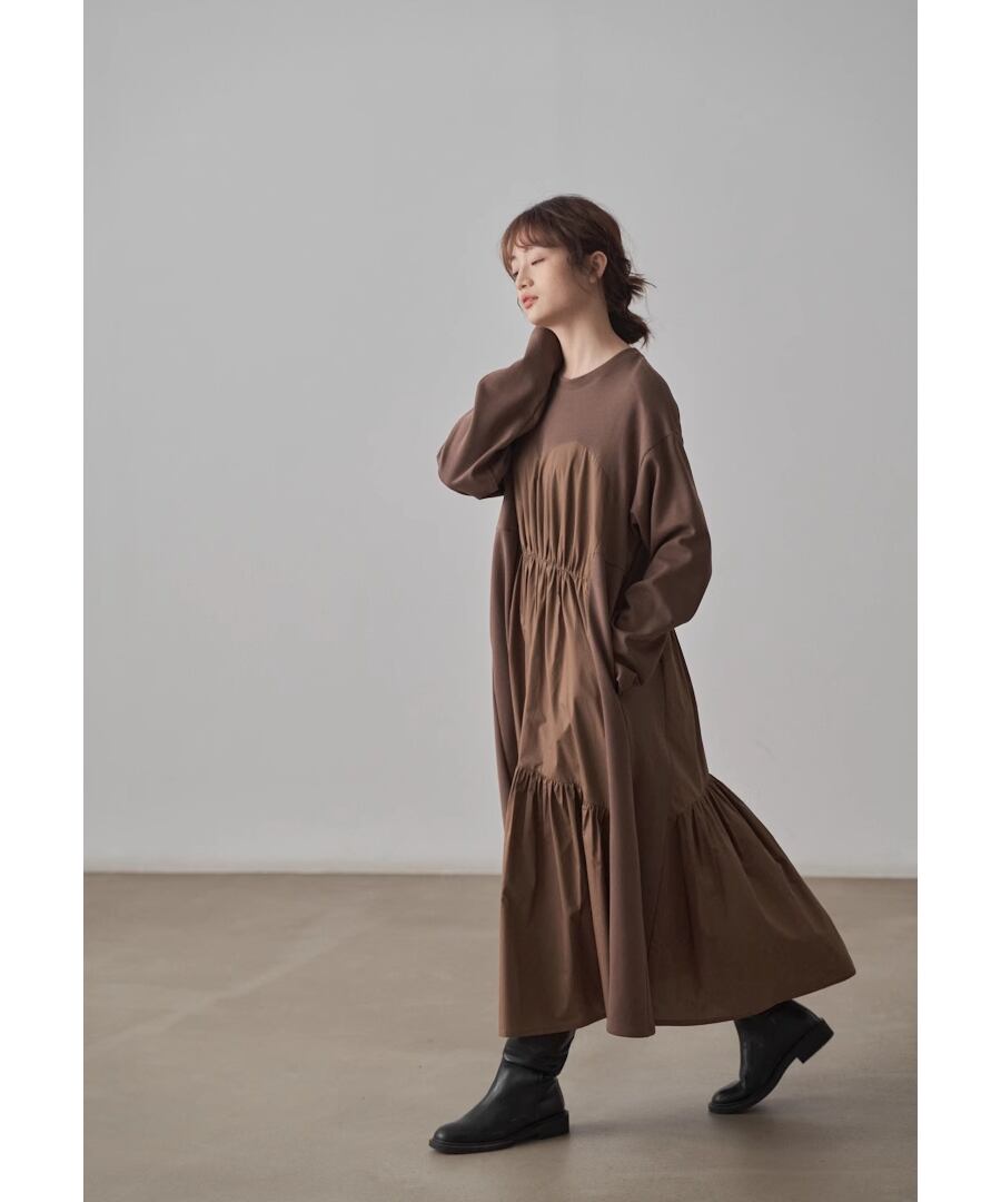 素材感の違う生地を合わせたビスチェ風デザインが今どきです