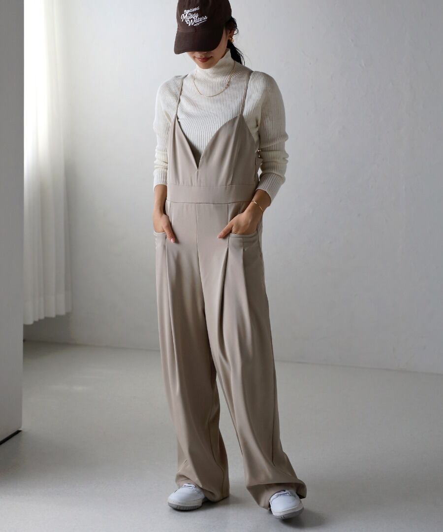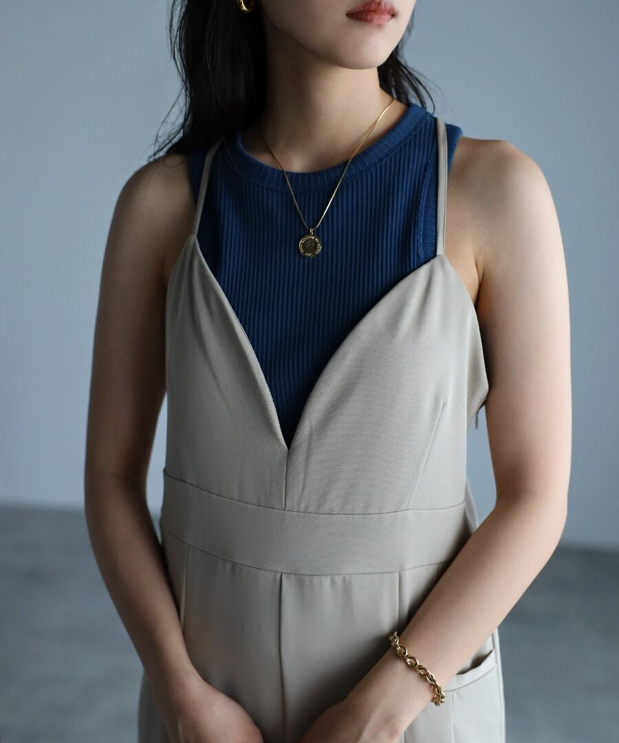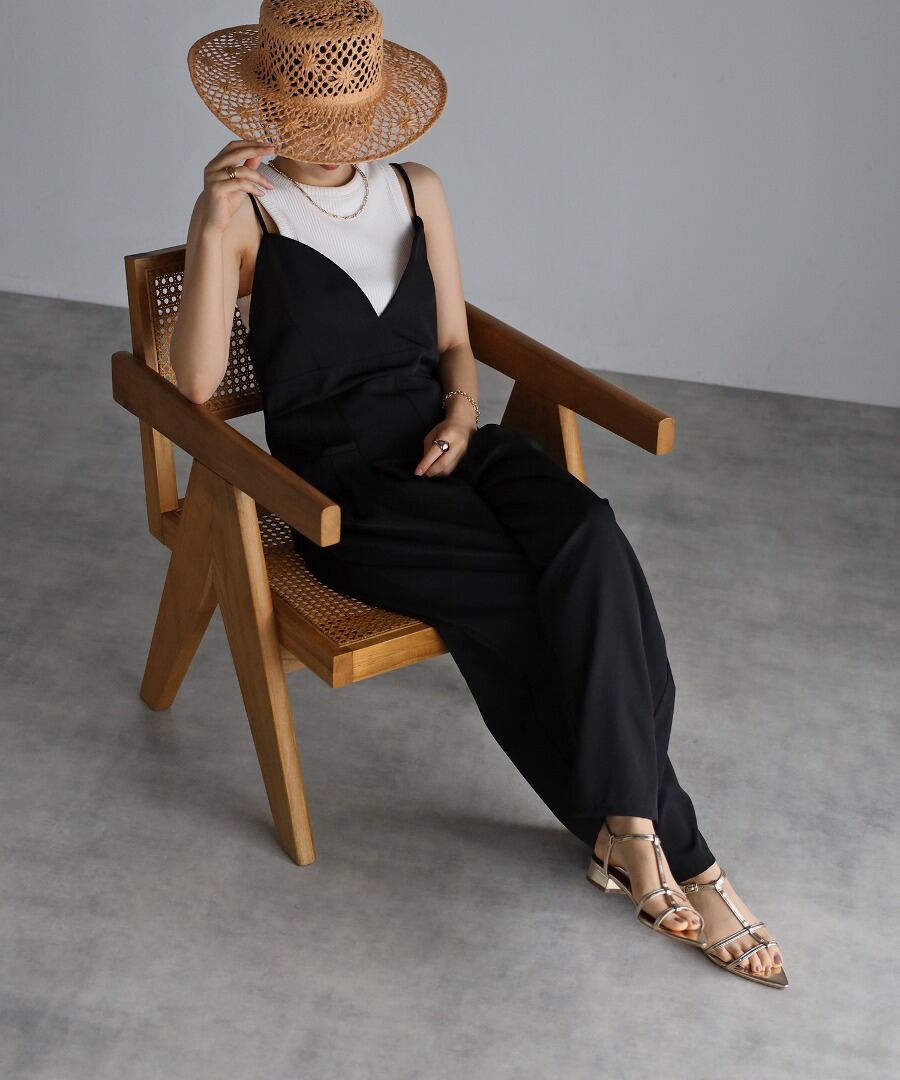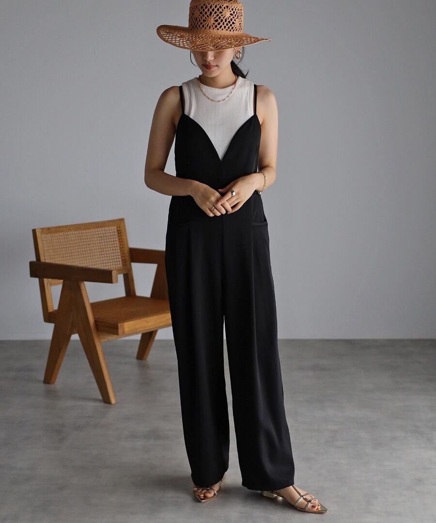 普段使いはもちろん、リゾートなどお出かけにもぴったりのキャミオールインワンです。