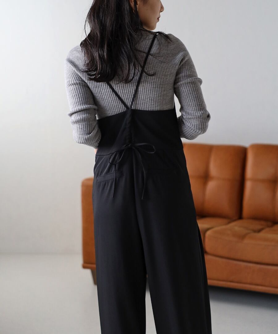 バックデザインが大人の魅力を引き立てるビスチェサロペット