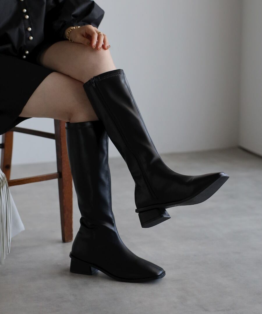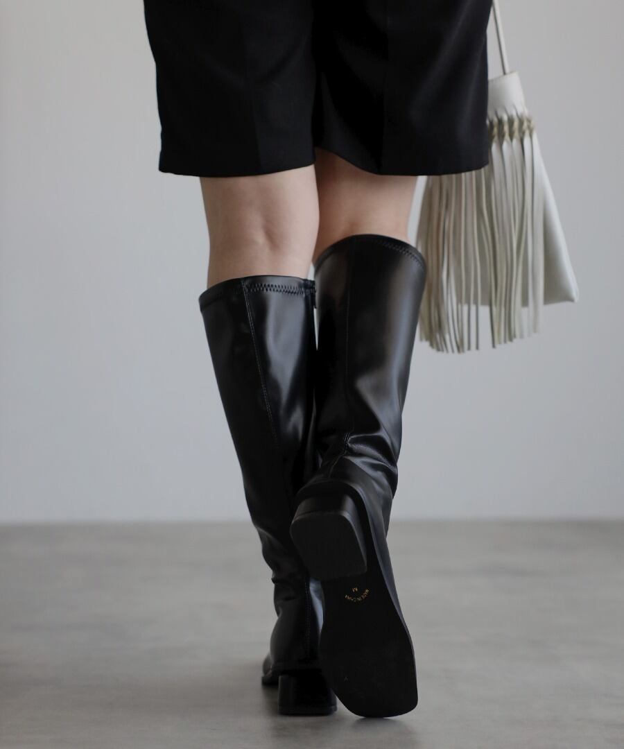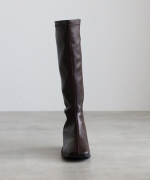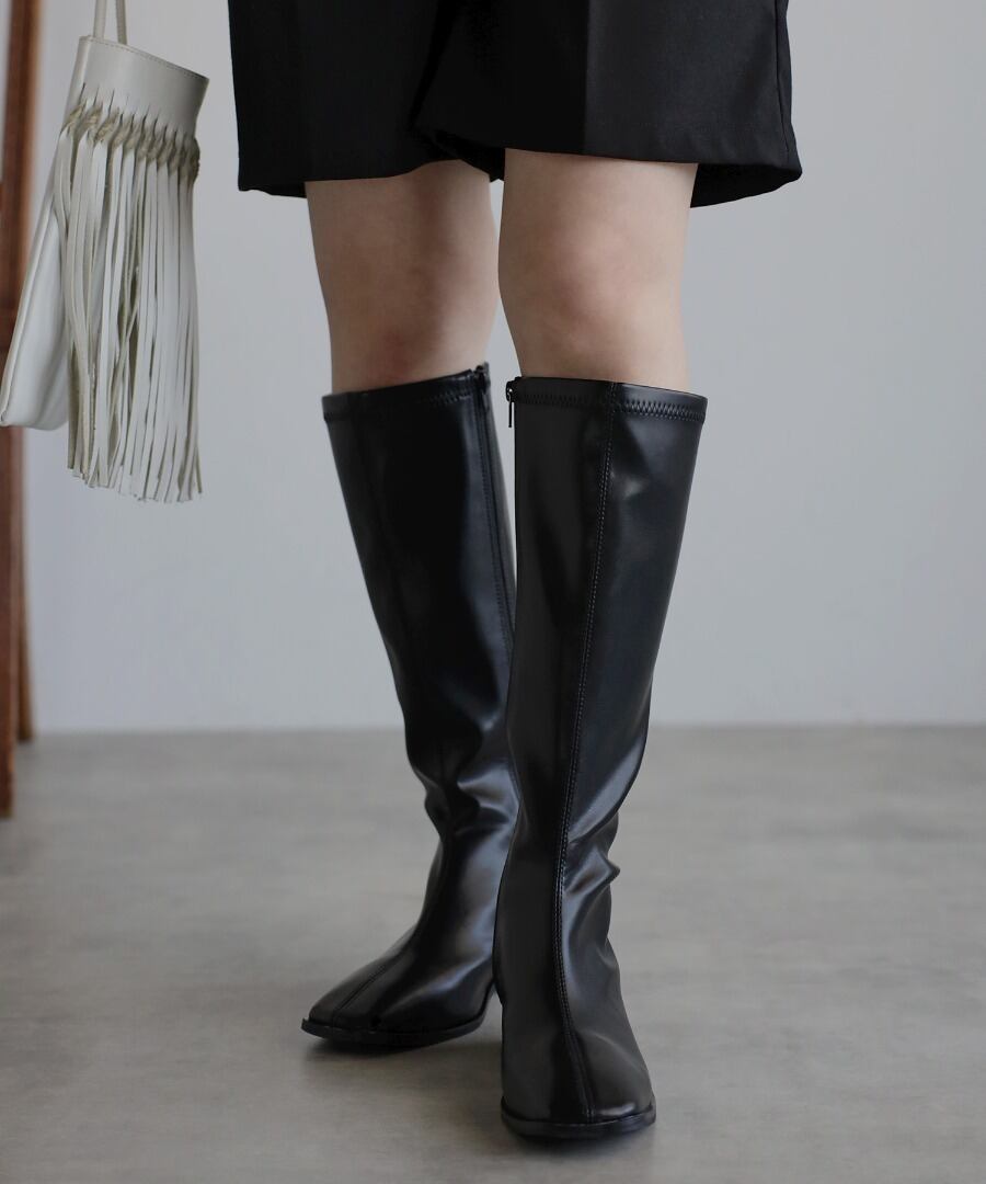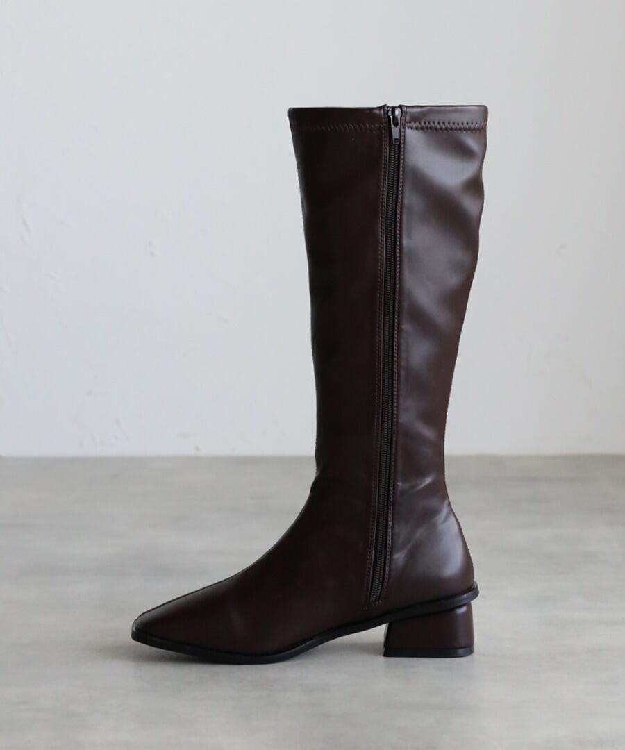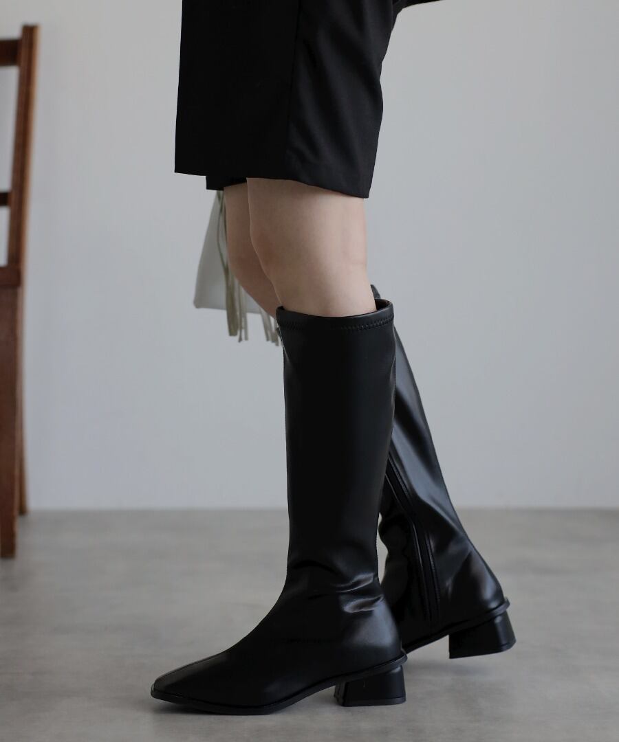 フェイクレザーローヒールロングブーツ【e-70523】.