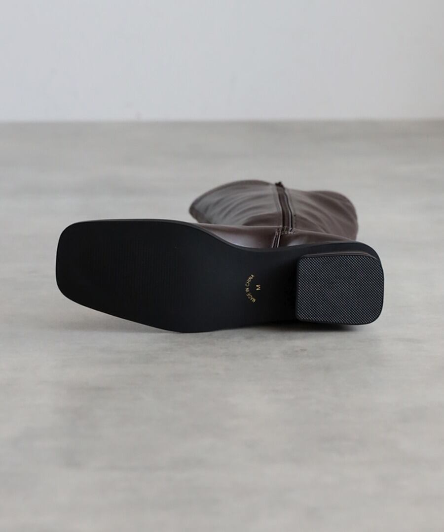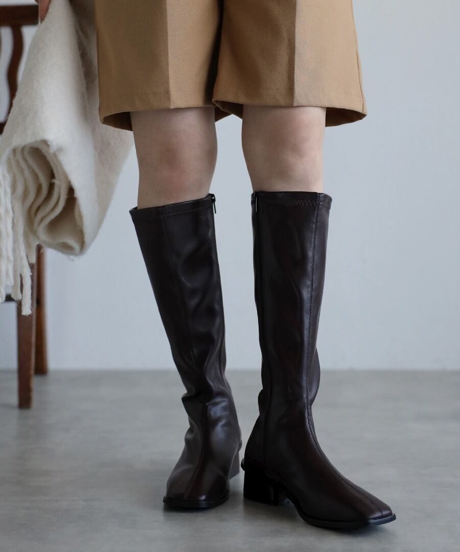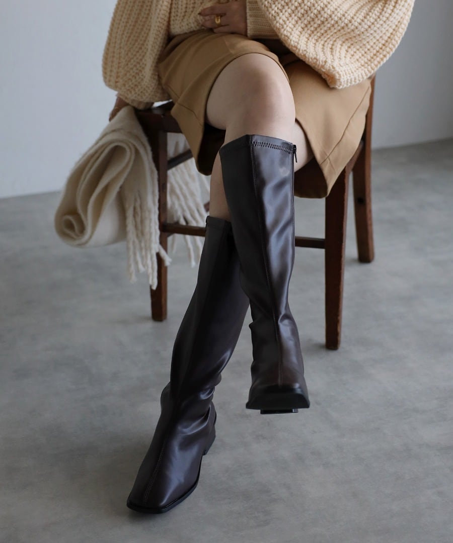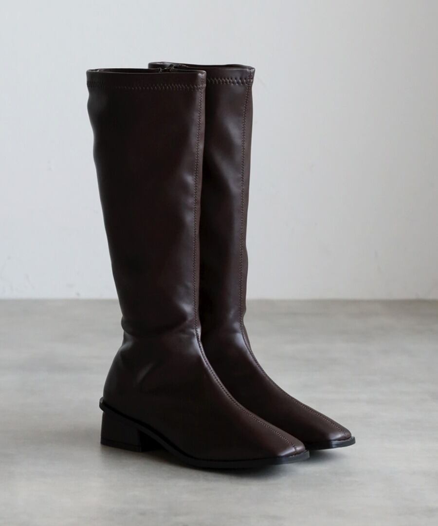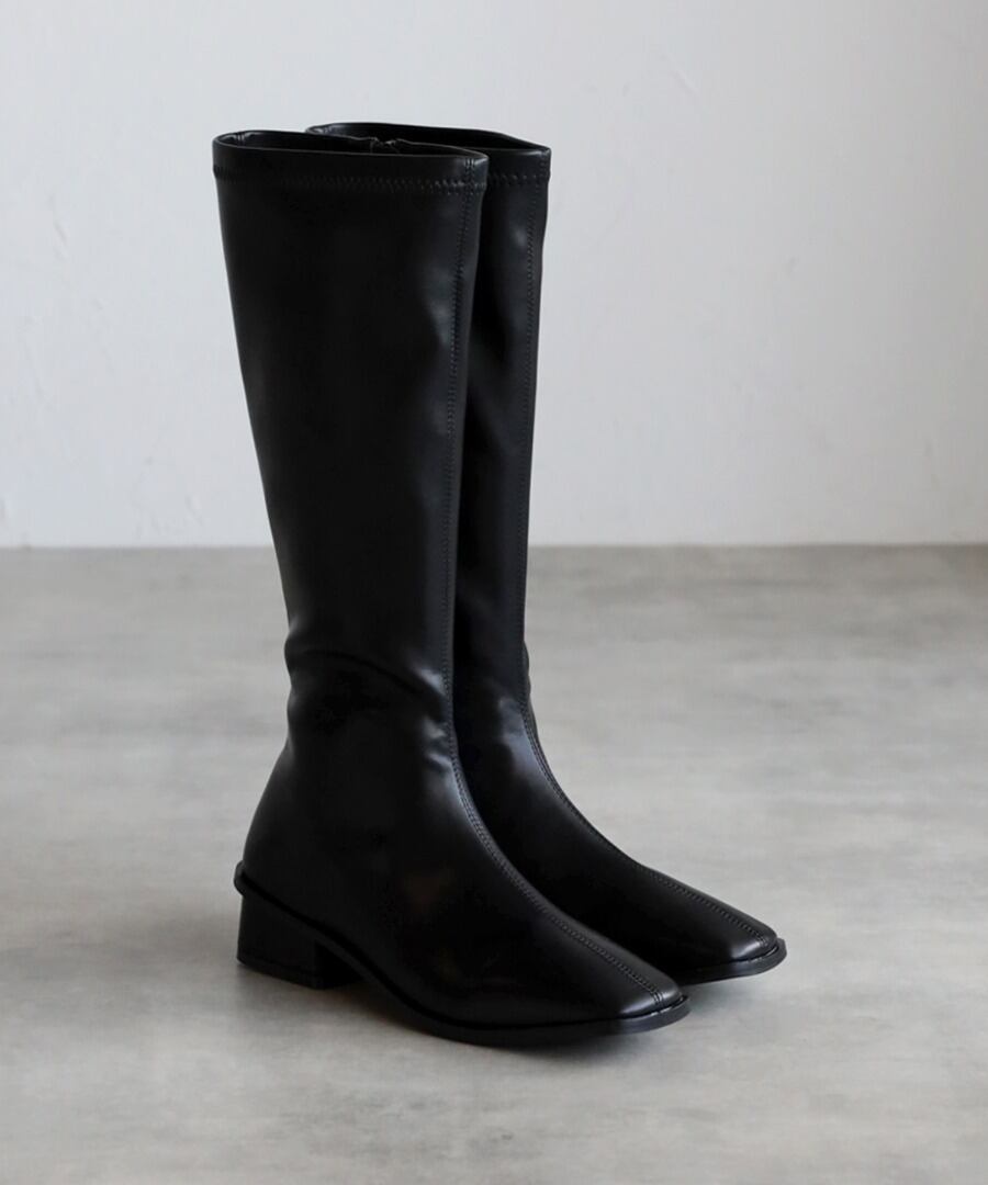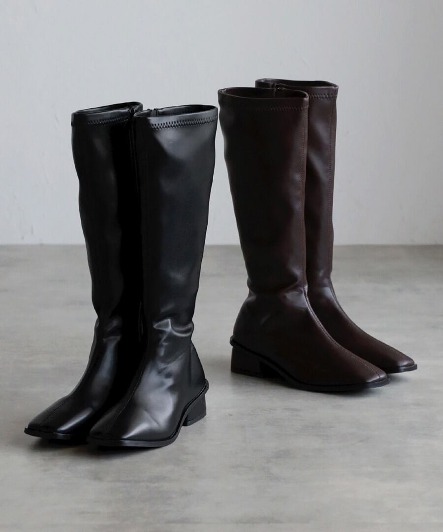 フェイクレザーローヒールロングブーツ【e-70523】.