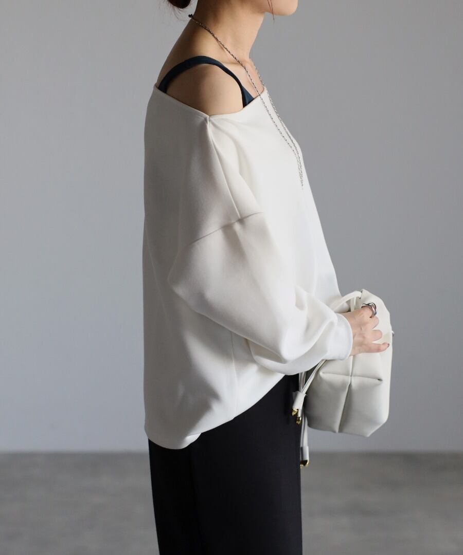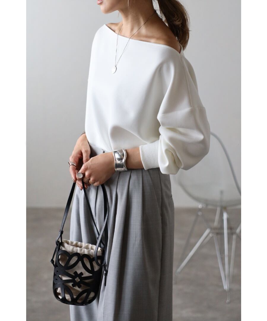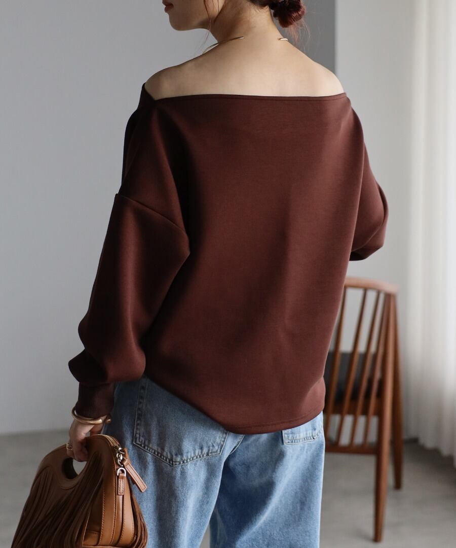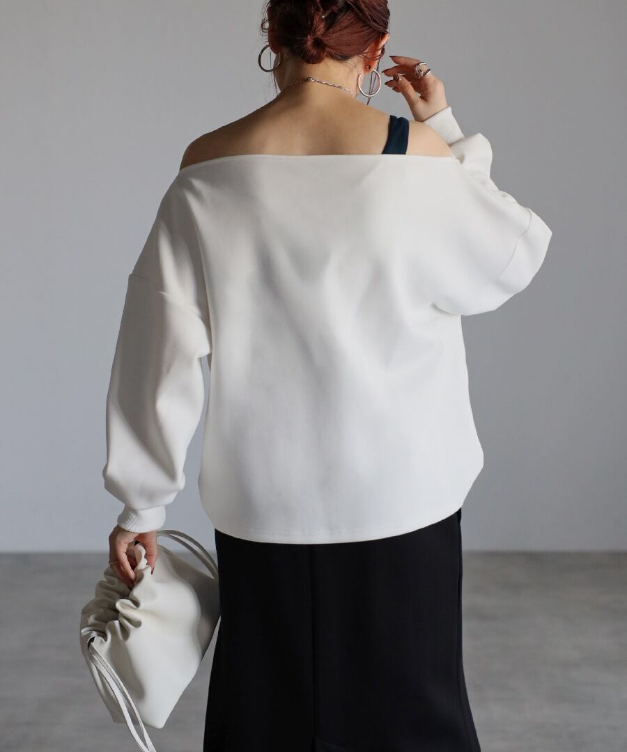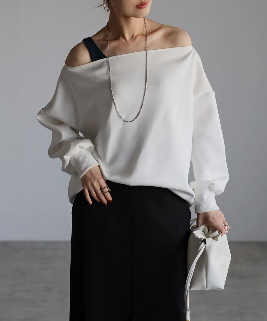 トレンド感のあるオフショルデザインが大人の魅力を引き立てるセンシュアルなプルオーバー。