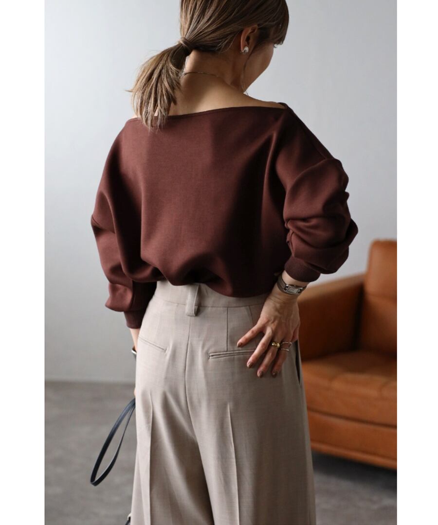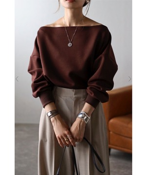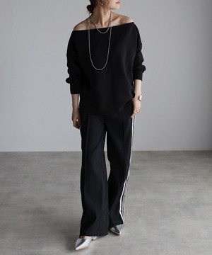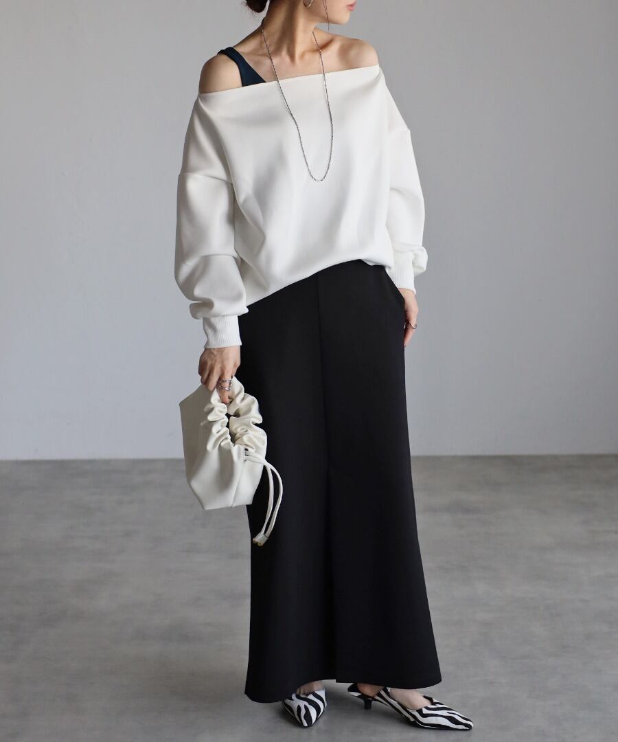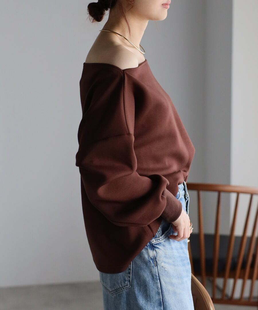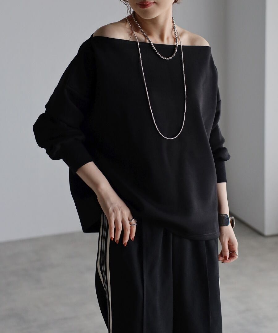 トレンド感のあるオフショルデザインが大人の魅力を引き立てるセンシュアルなプルオーバー。