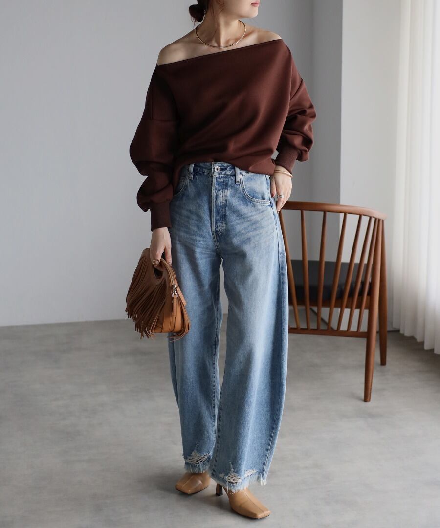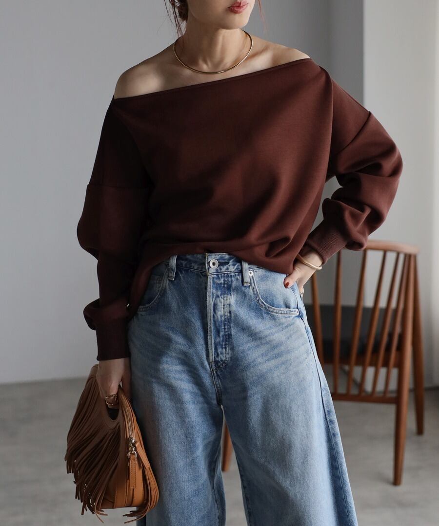リラクシーな大人の雰囲気。トレンドライクなオフショルプルオーバー