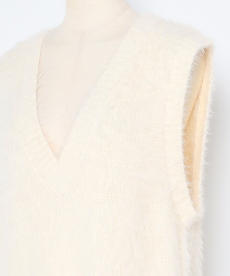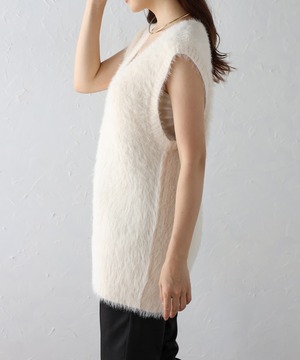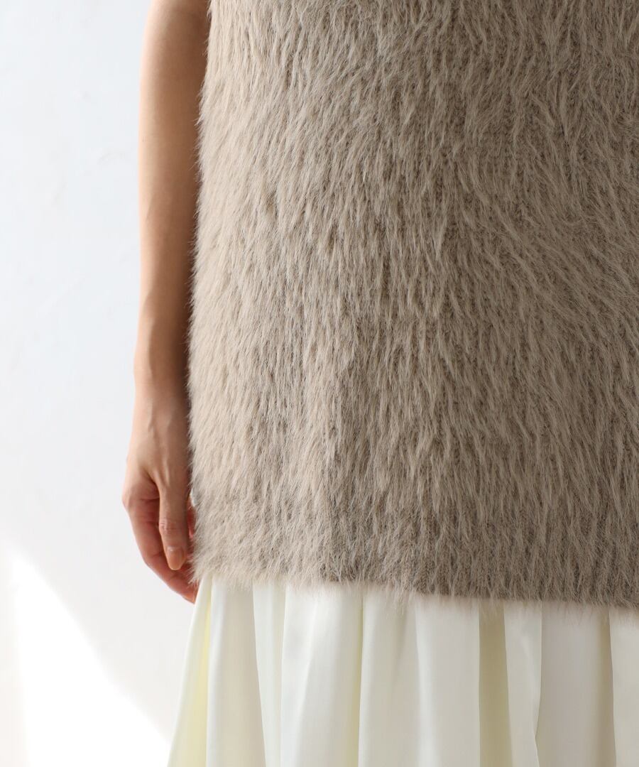 ふわふわとした手触りが心地よい、ナイロン混のフェザーベスト。