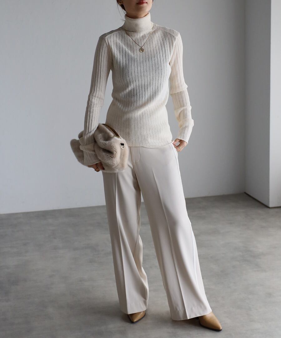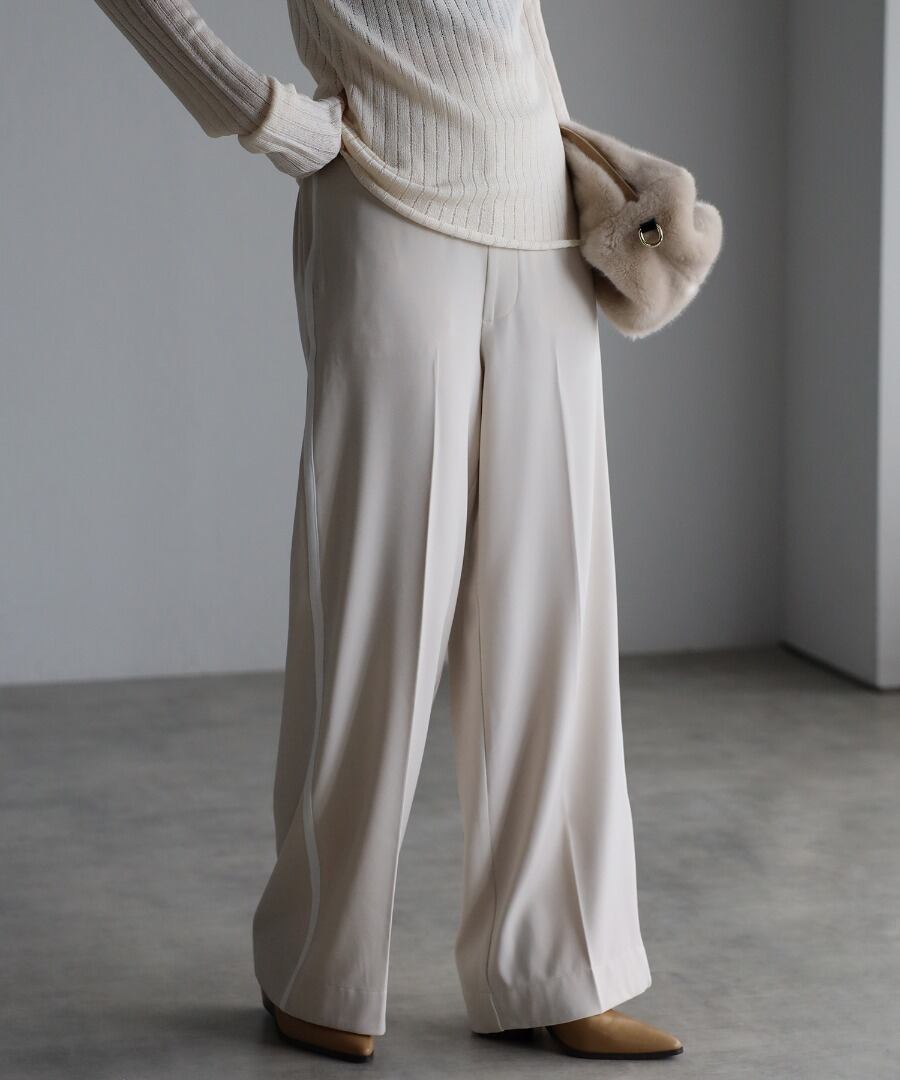 マニッシュな雰囲気のサイドラインで、大人っぽく着られるスラックス