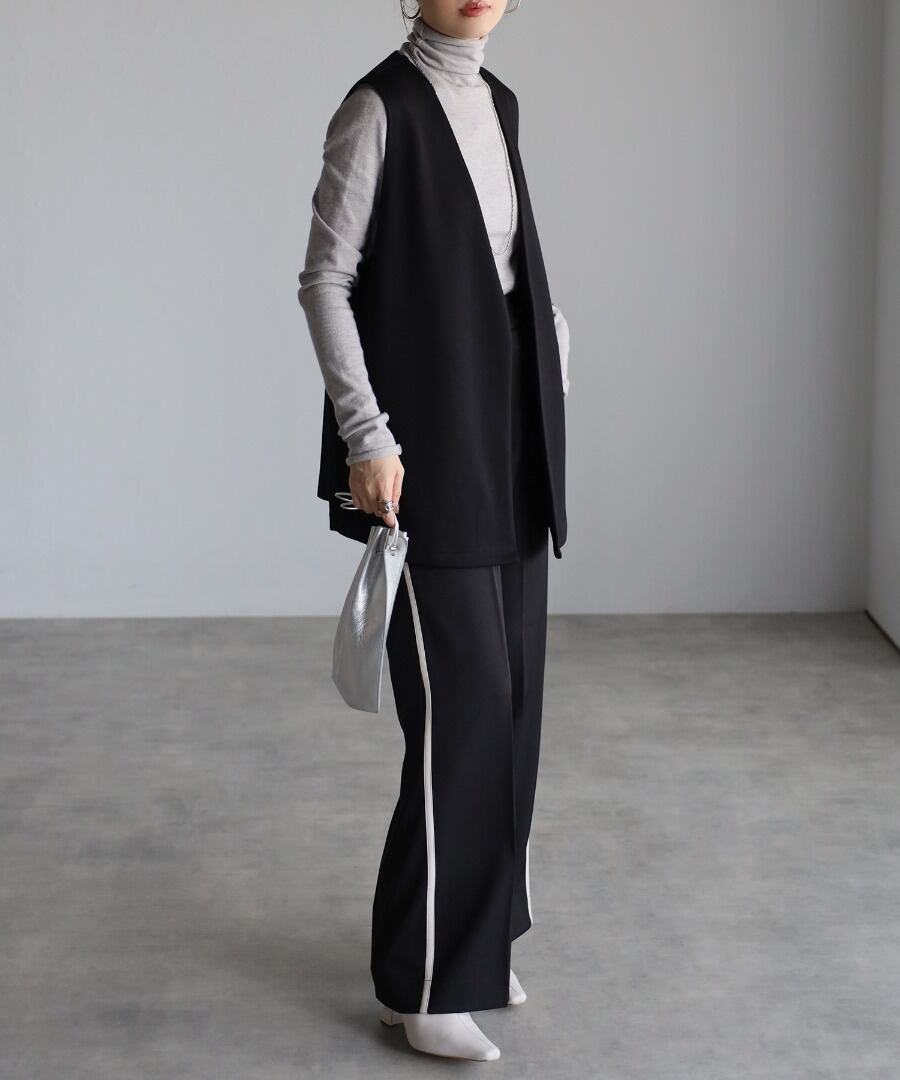 トレンドのラインアイテムに、大人っぽく着られる細めのラインデザインがおしゃれなパンツが登場。
