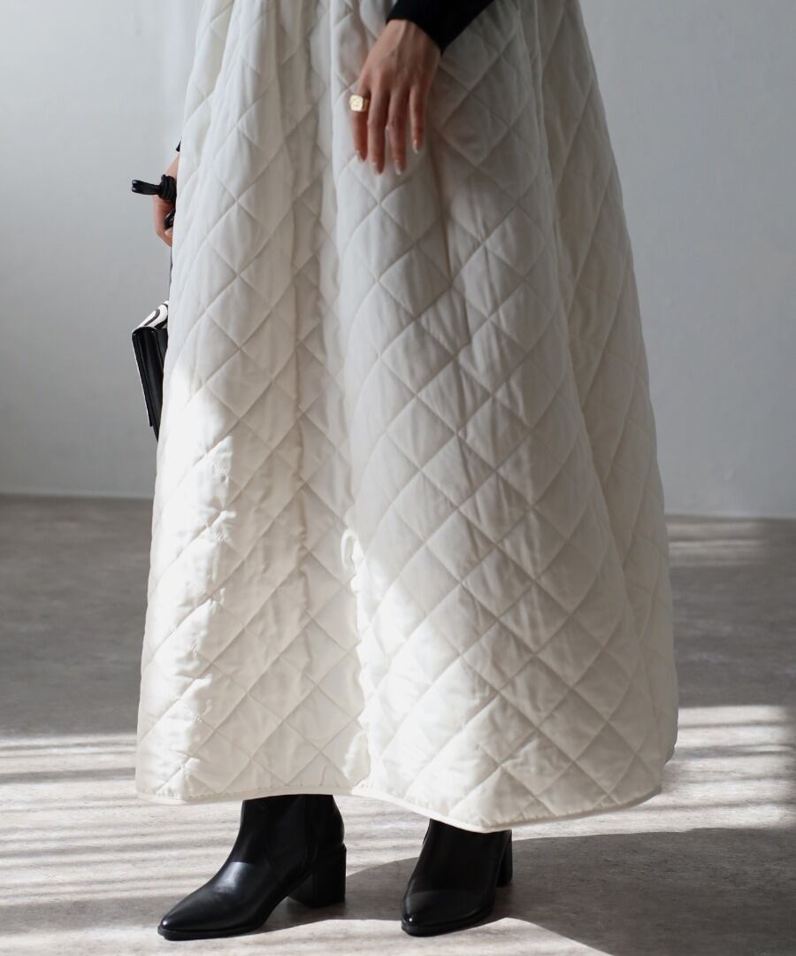 トレンド感のあるダイヤ柄のキルティングがあたたかみのある一枚です。