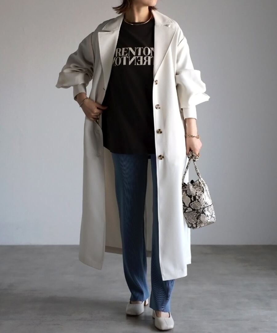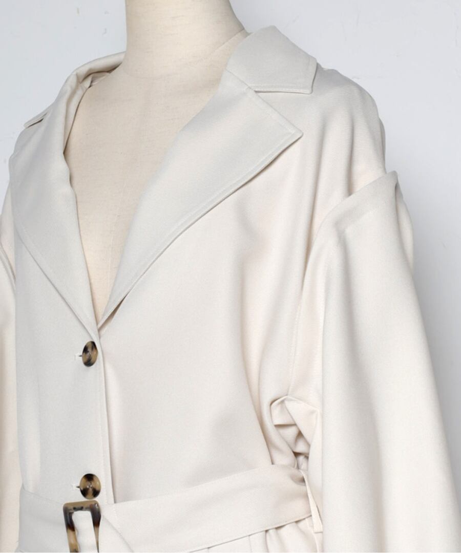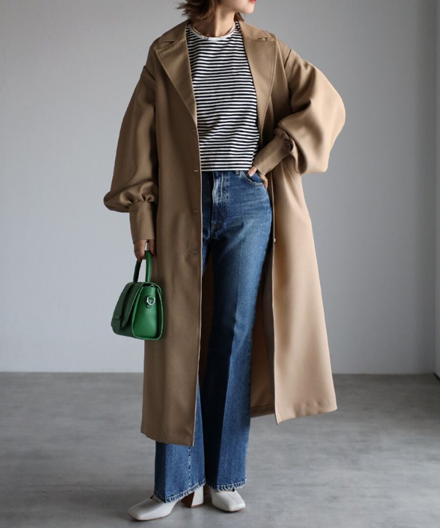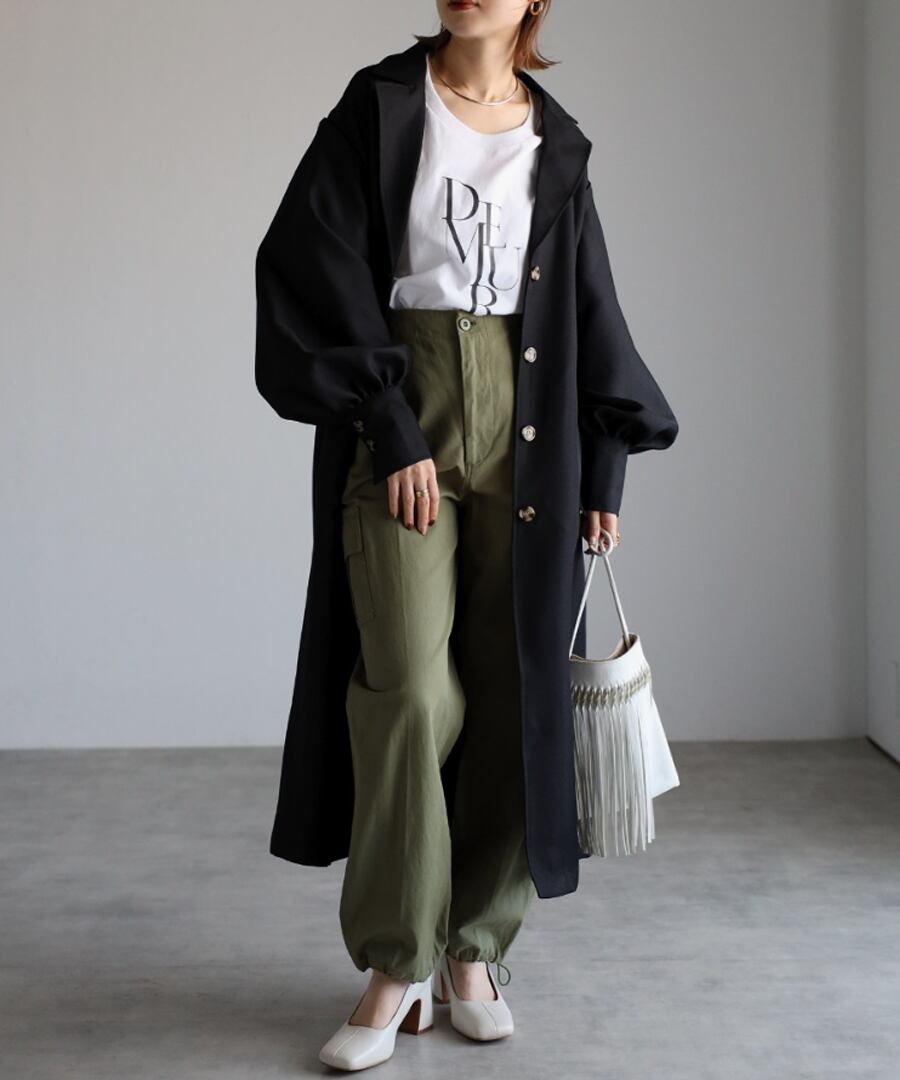 バックのストームフラップがカシュクールデザインになったオシャレなコート。