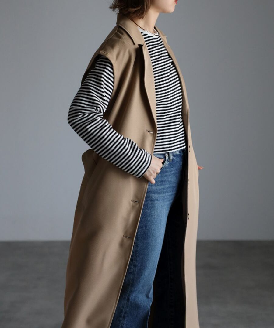薄手のツイル素材で、裏地が無いためサラッと軽く羽織っていただけます。