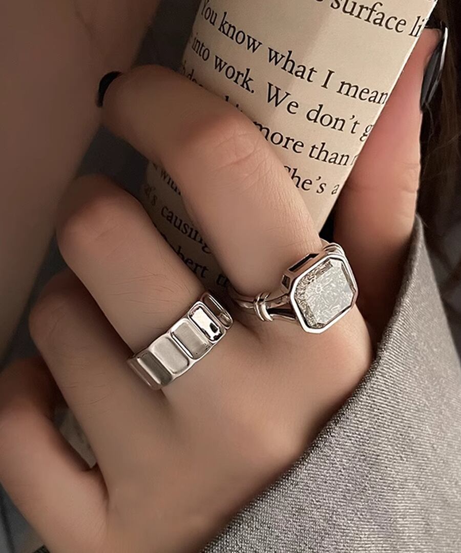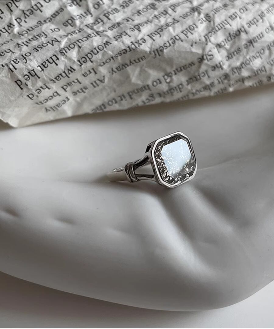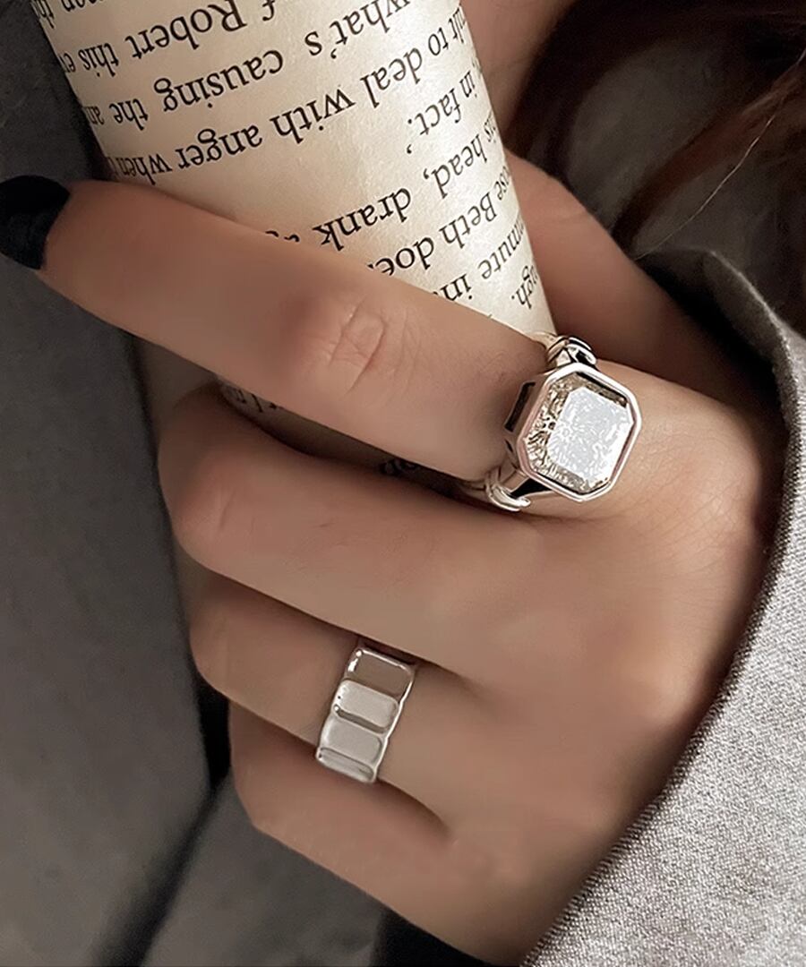 清潔感のあるホワイトティースクエアジルコンが一粒輝き、