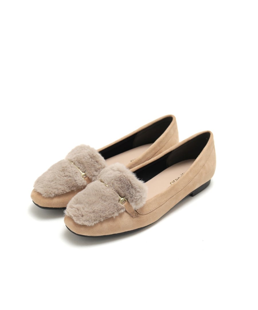 シンプルなデザインにふわふわのフェイクファーでボリュームをプラス。