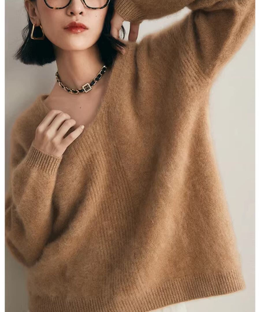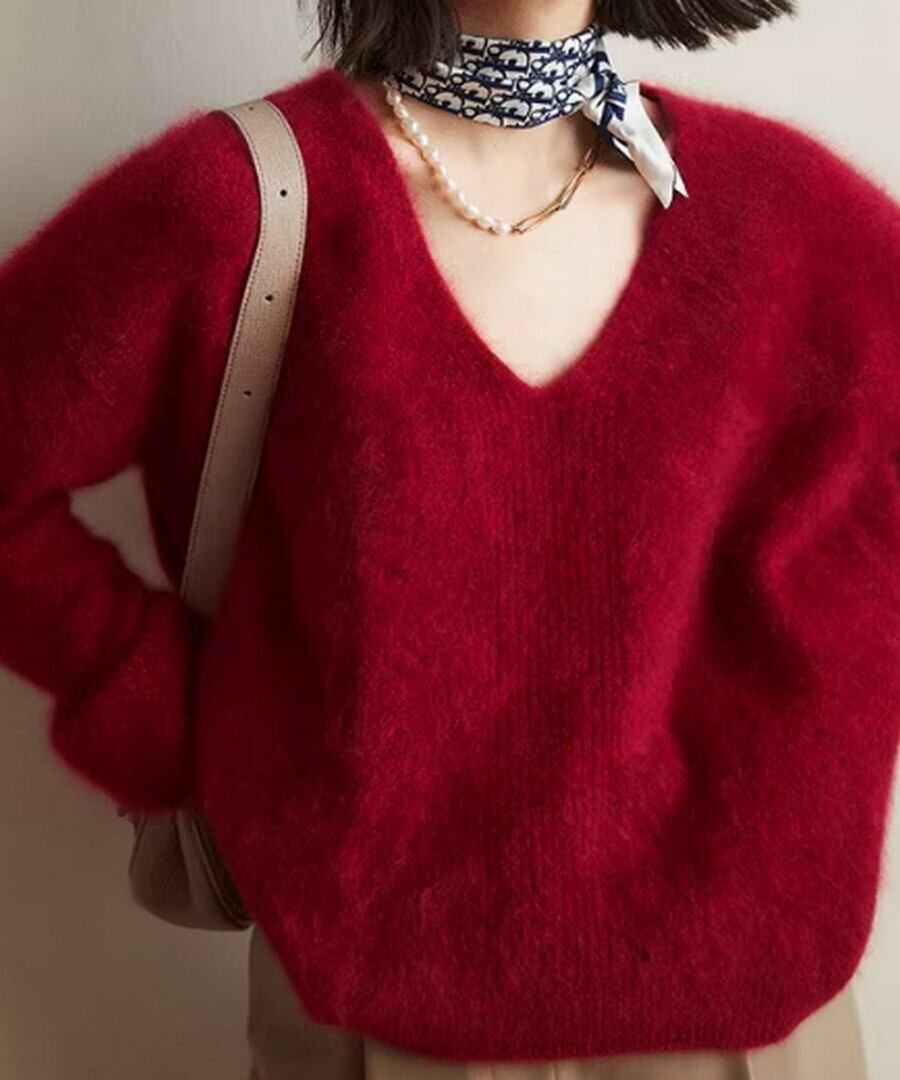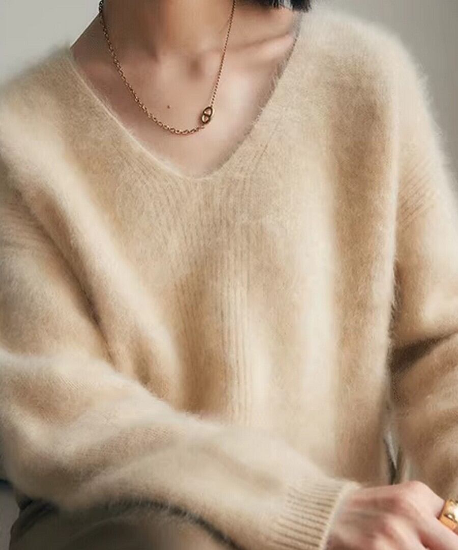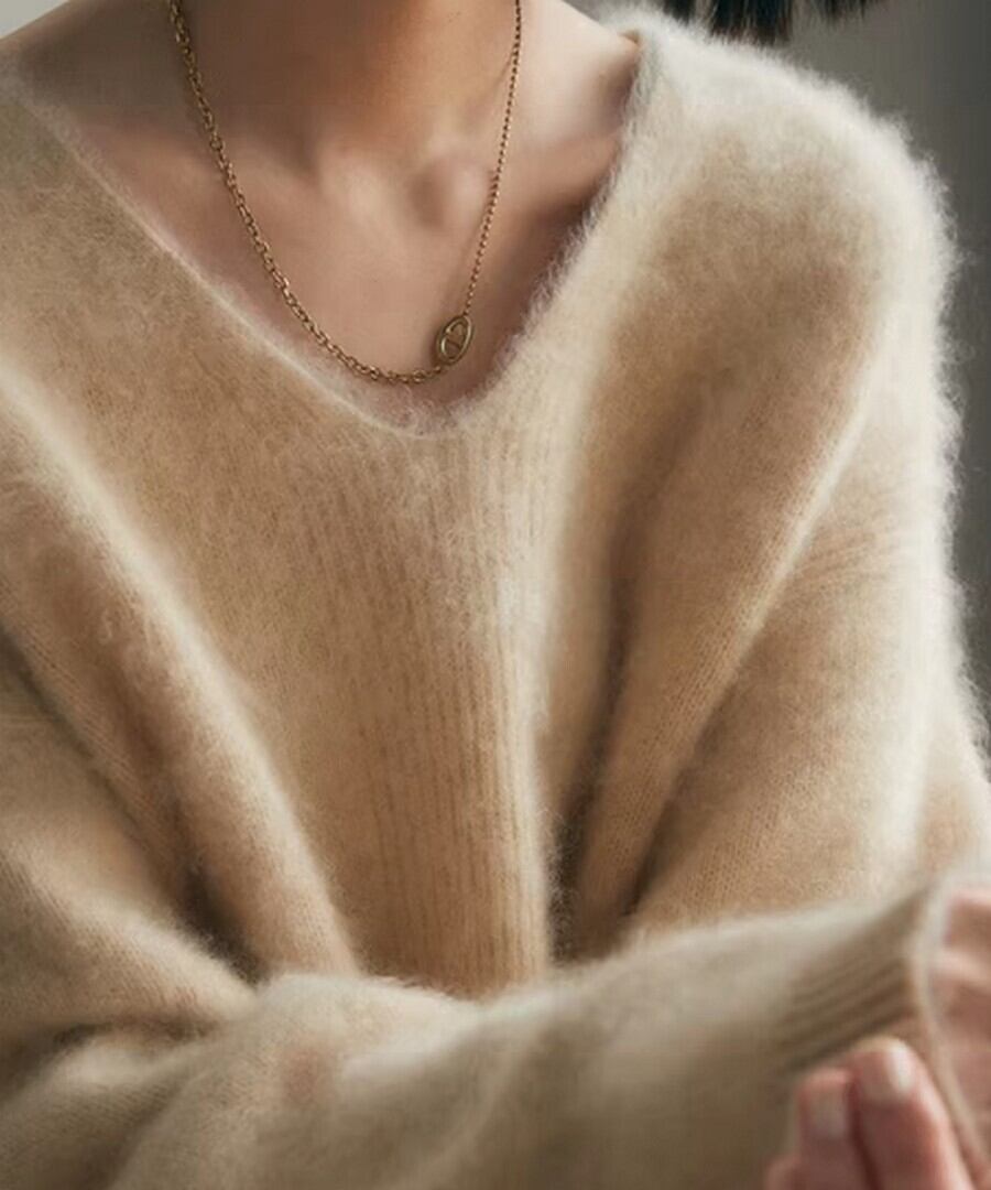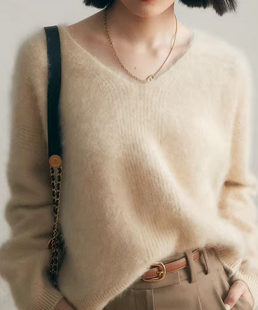 暖かなベルベットタッチのVネックセーターで快適さを手に入れましょう。