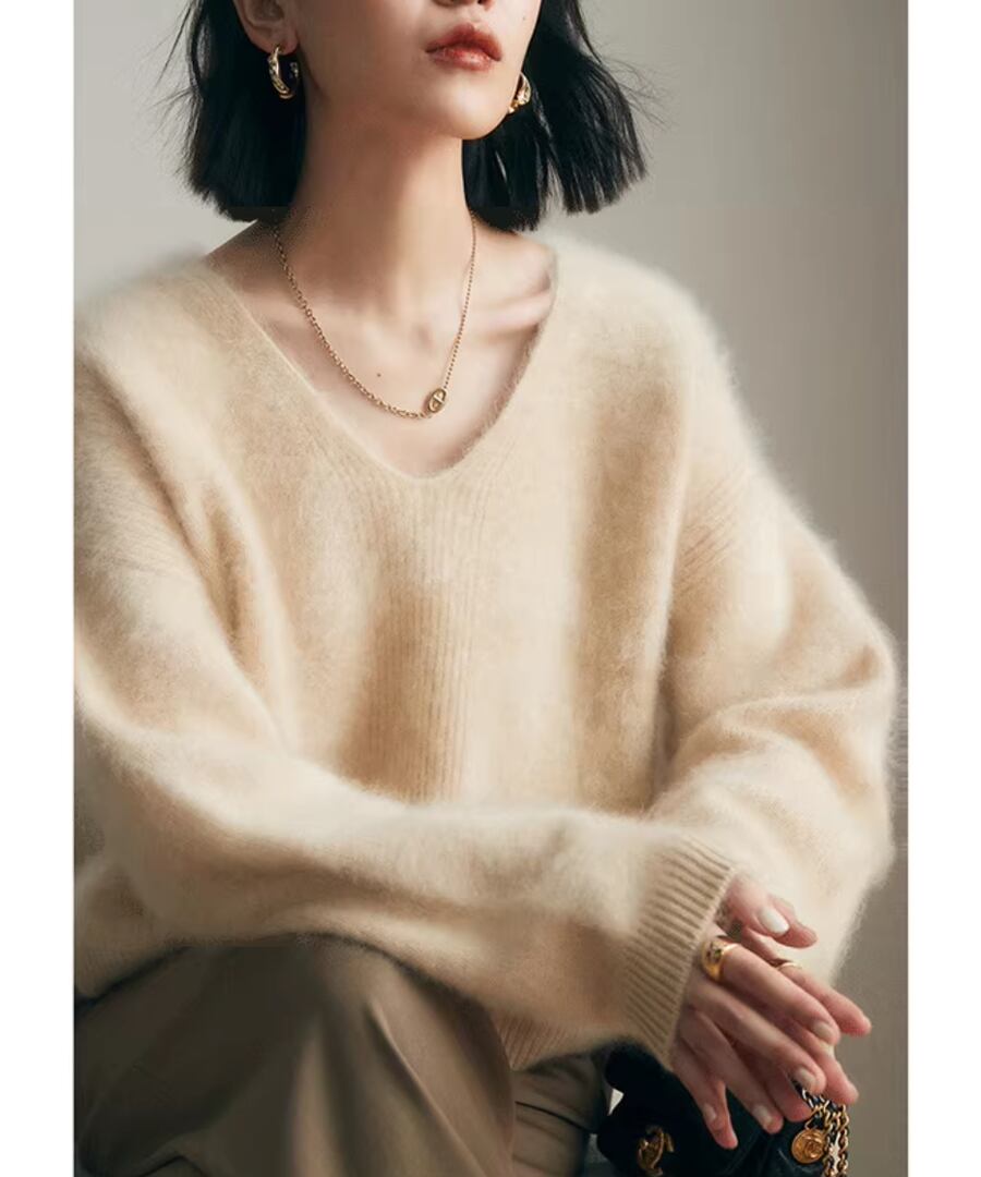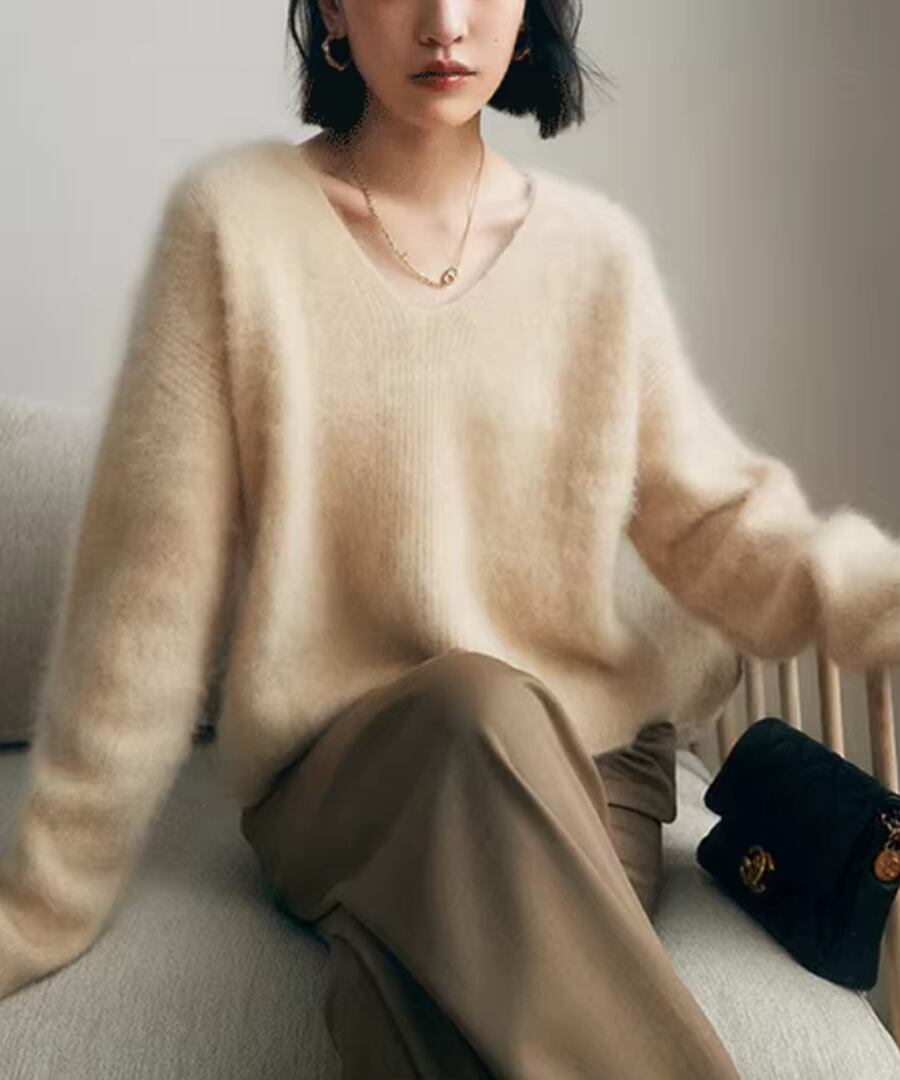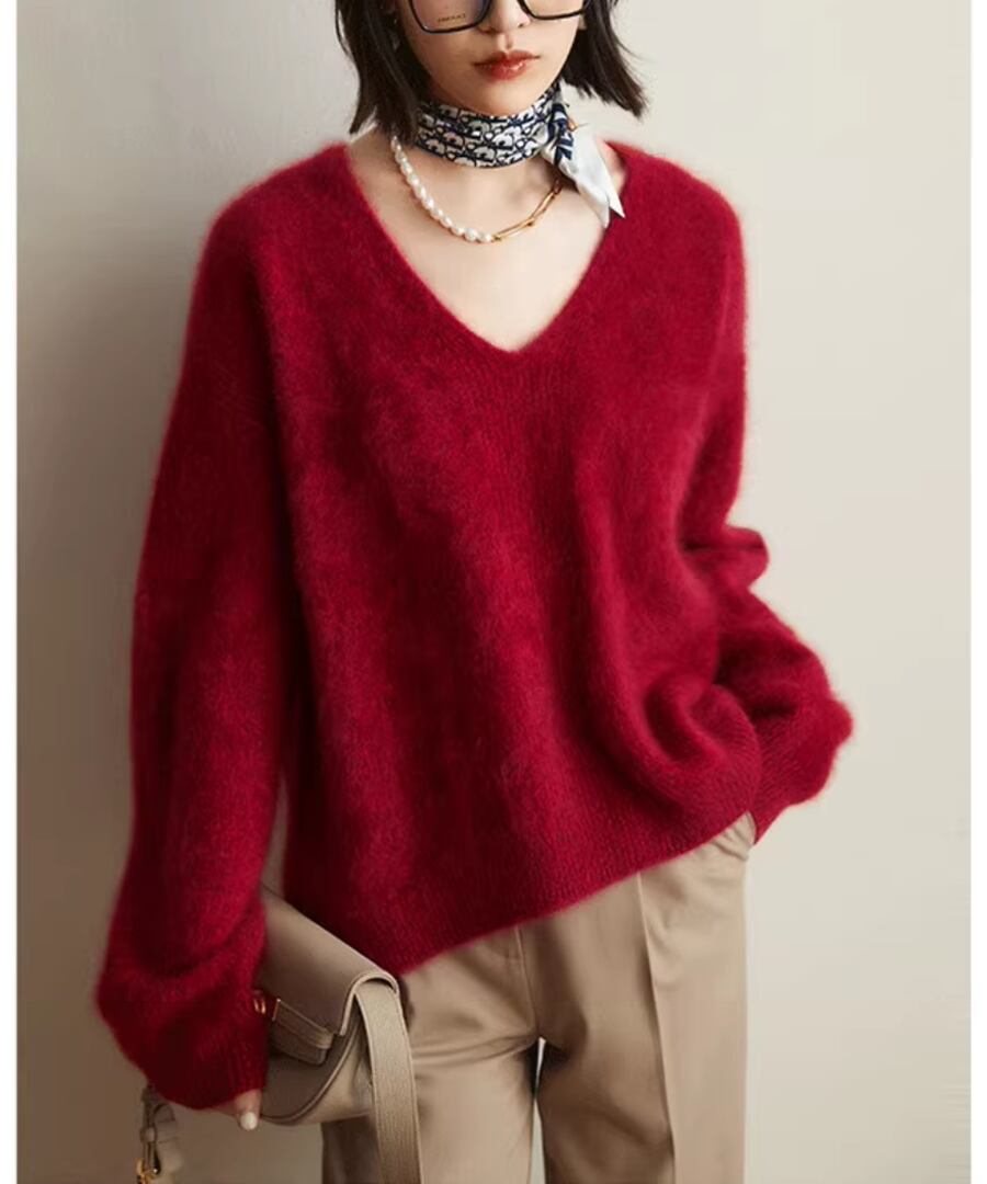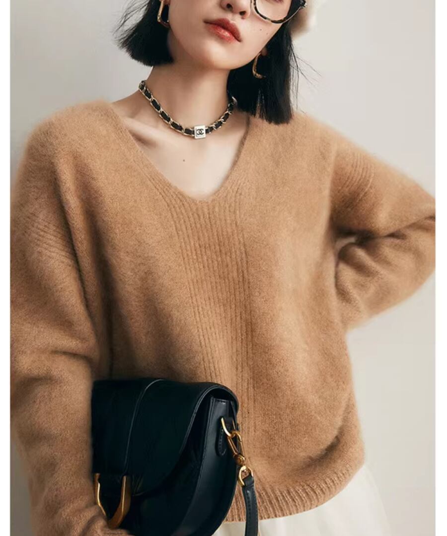 暖かなベルベットタッチのVネックセーターで快適さを手に入れましょう。