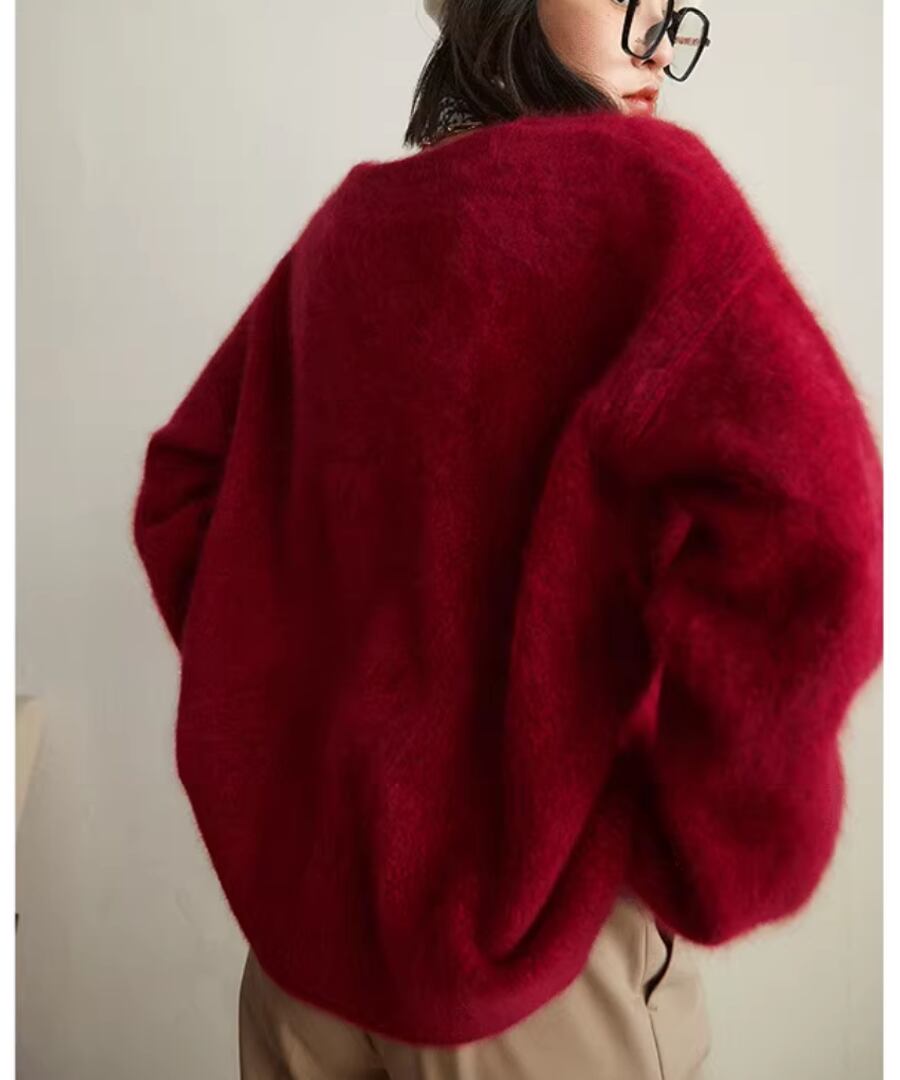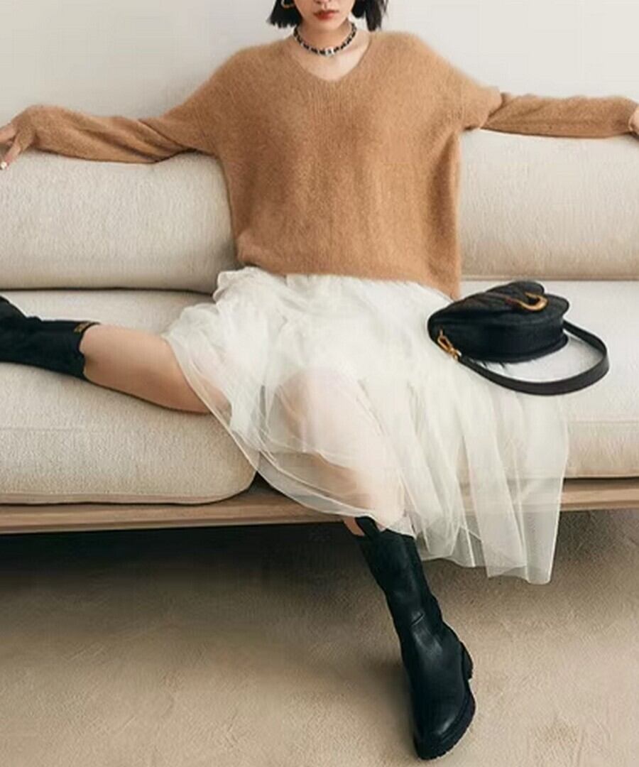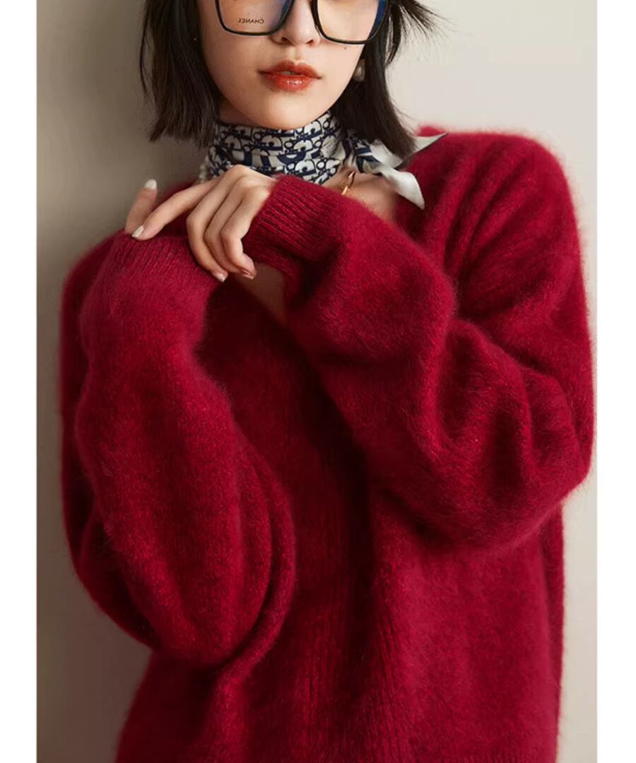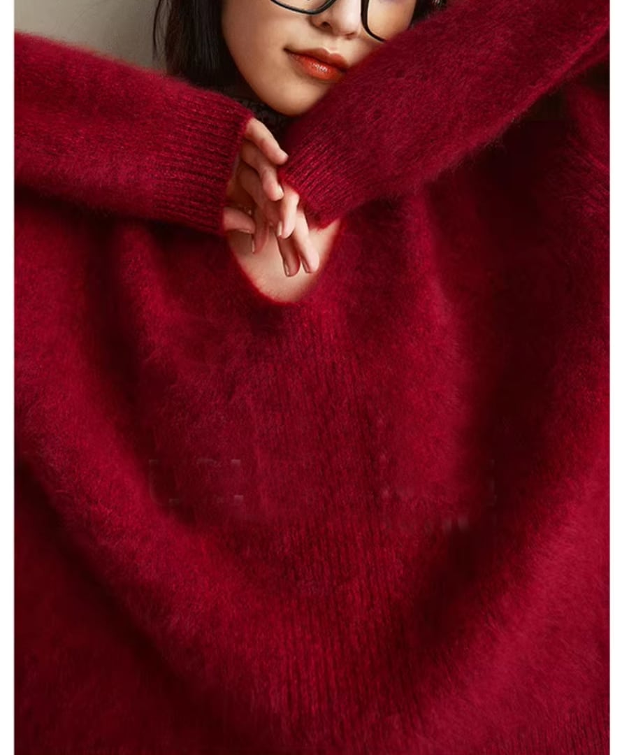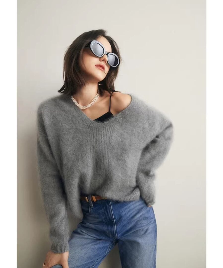 暖かなベルベットタッチのVネックセーターで快適さを手に入れましょう。