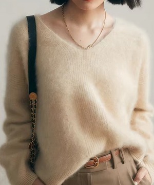 ベルベットタッチ◆ V ネックセーター【t-10758】