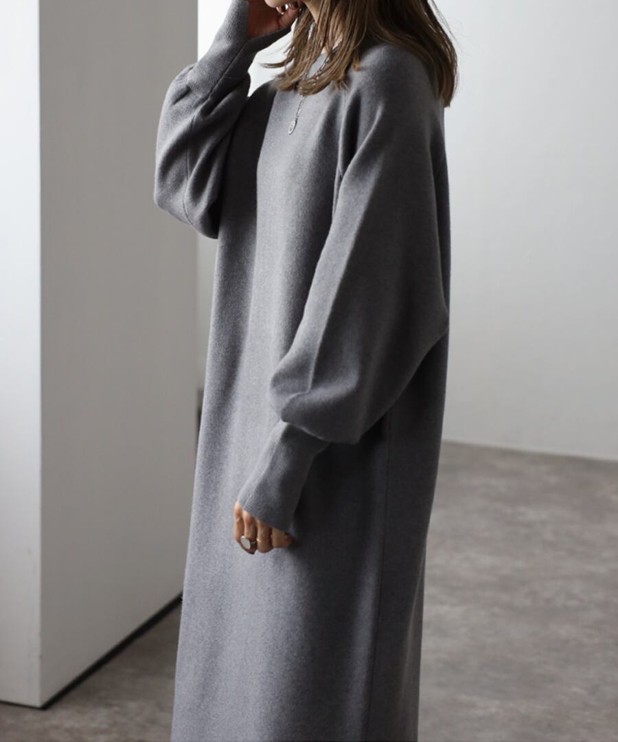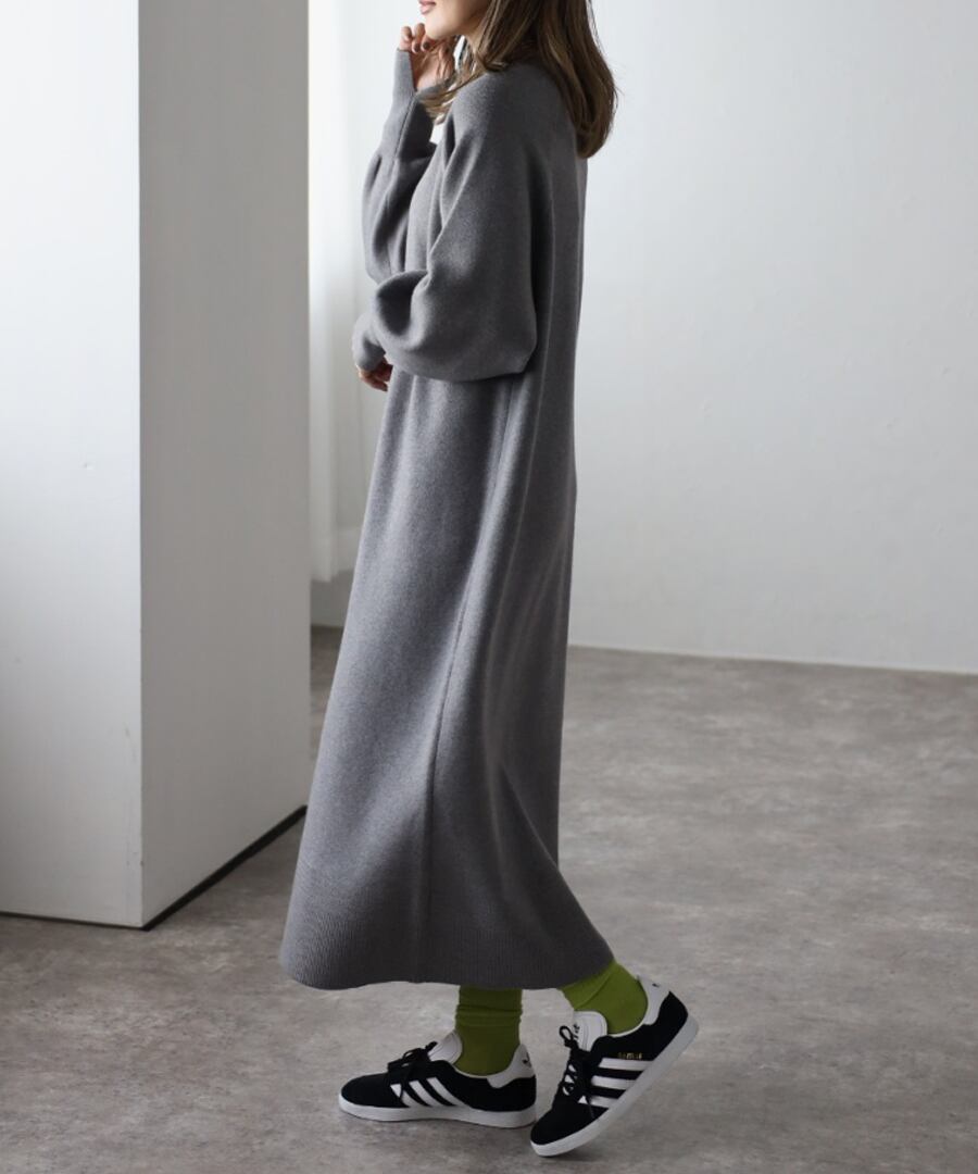 スウェットライクでリラクシーに着られるニットロングワンピース