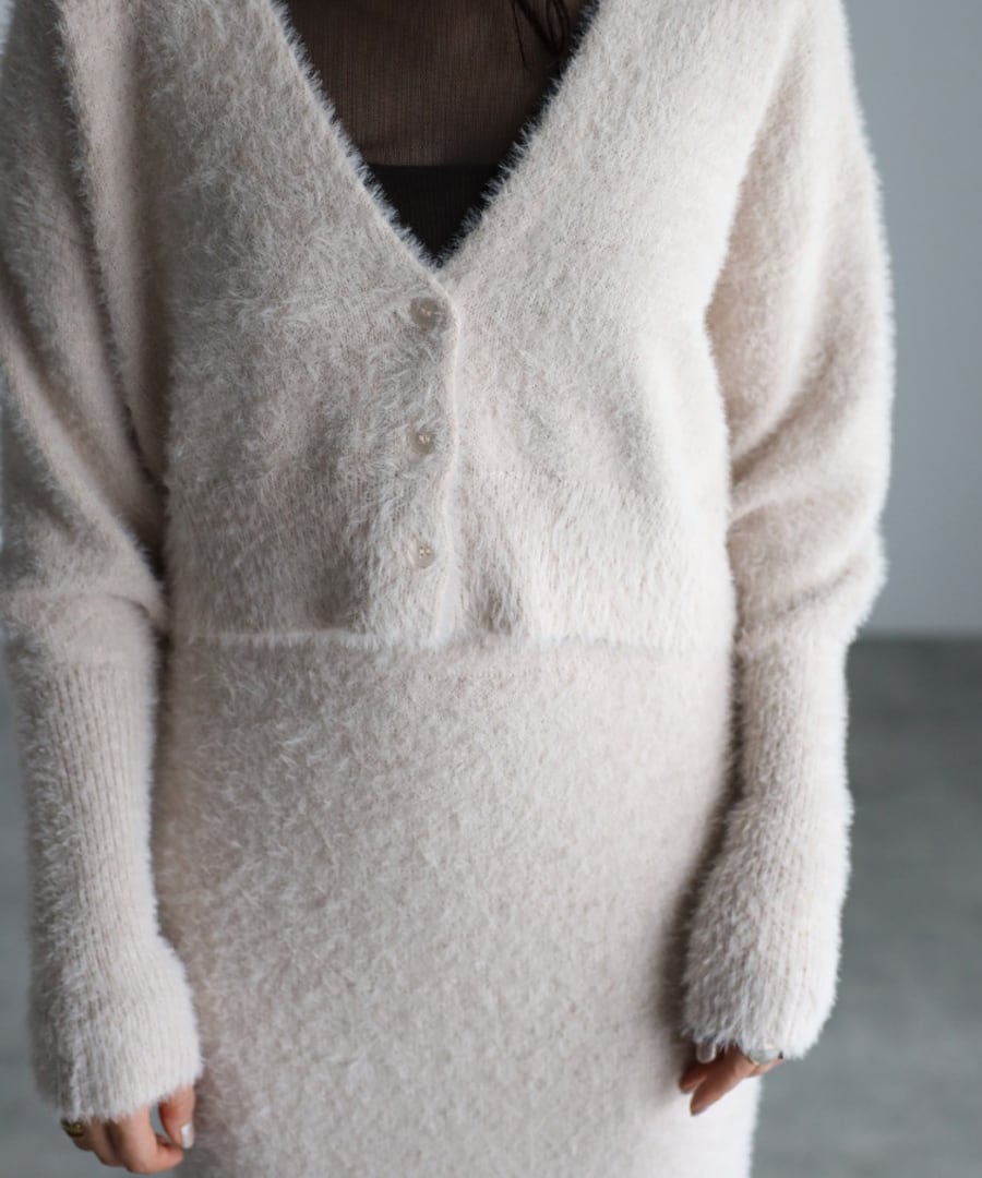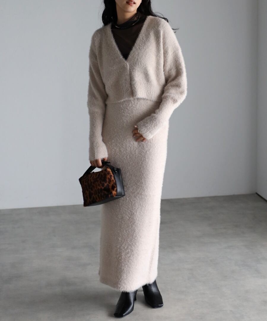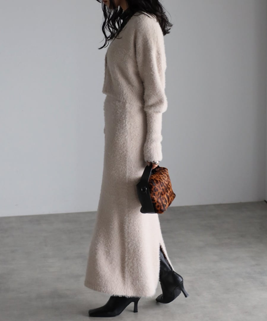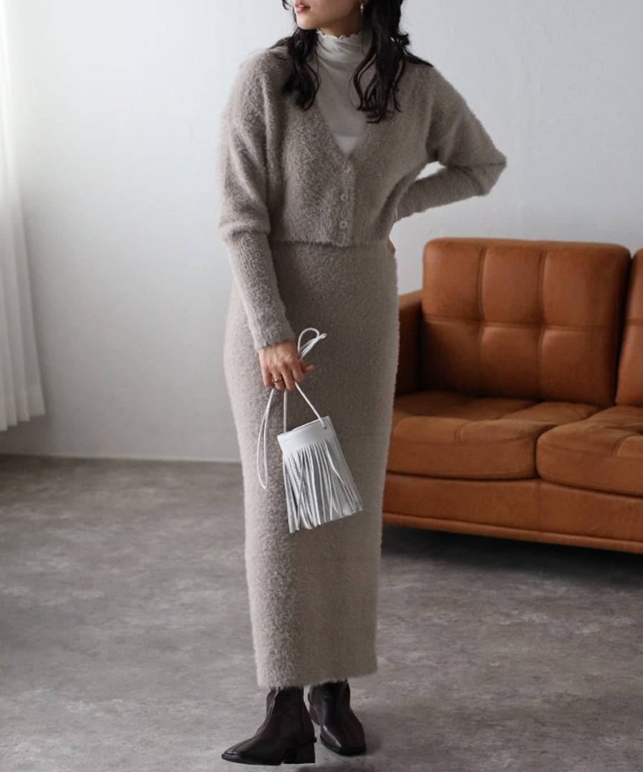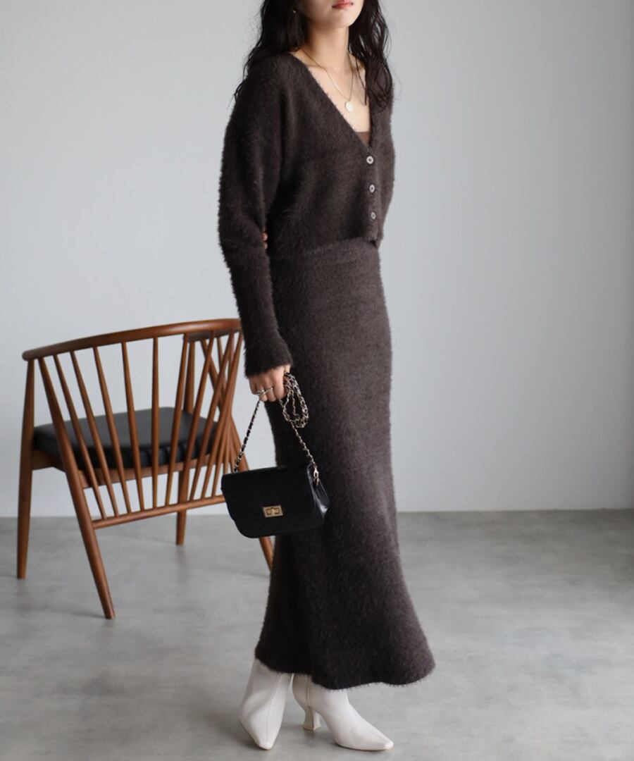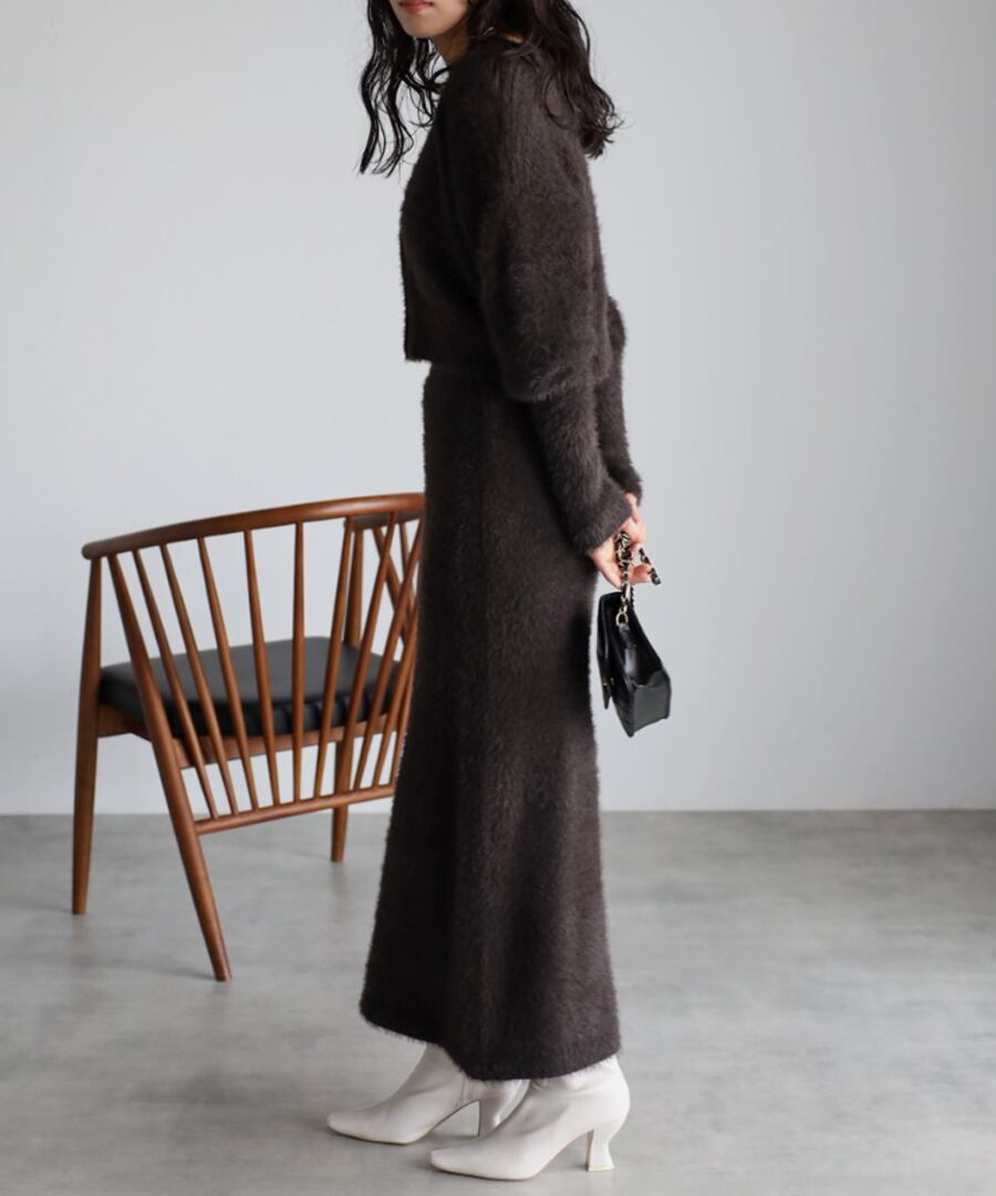 ※同素材のクロップド丈シャギーニットカーディガンと合わせていただくと、セットアップコーデがお楽しみいただけます。