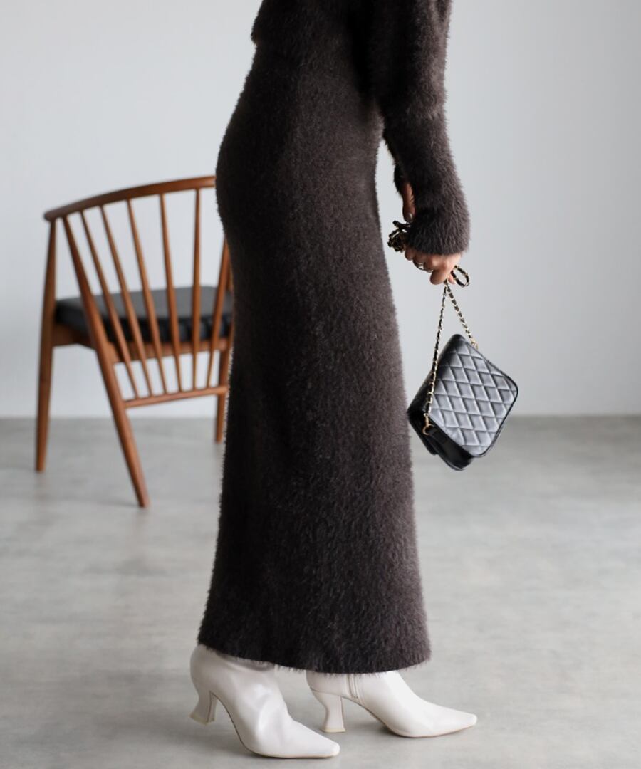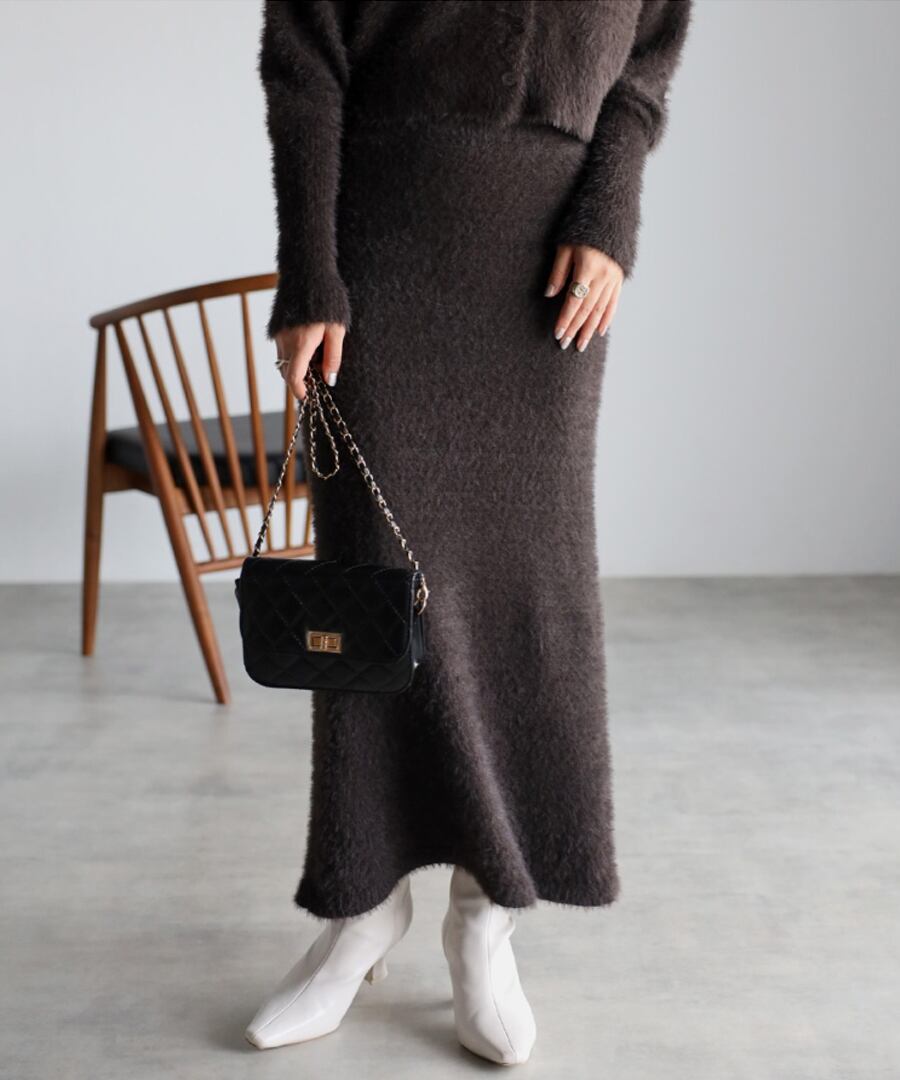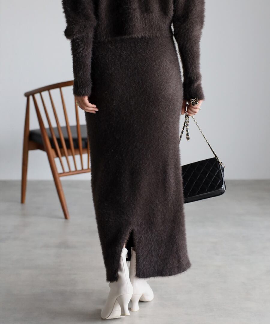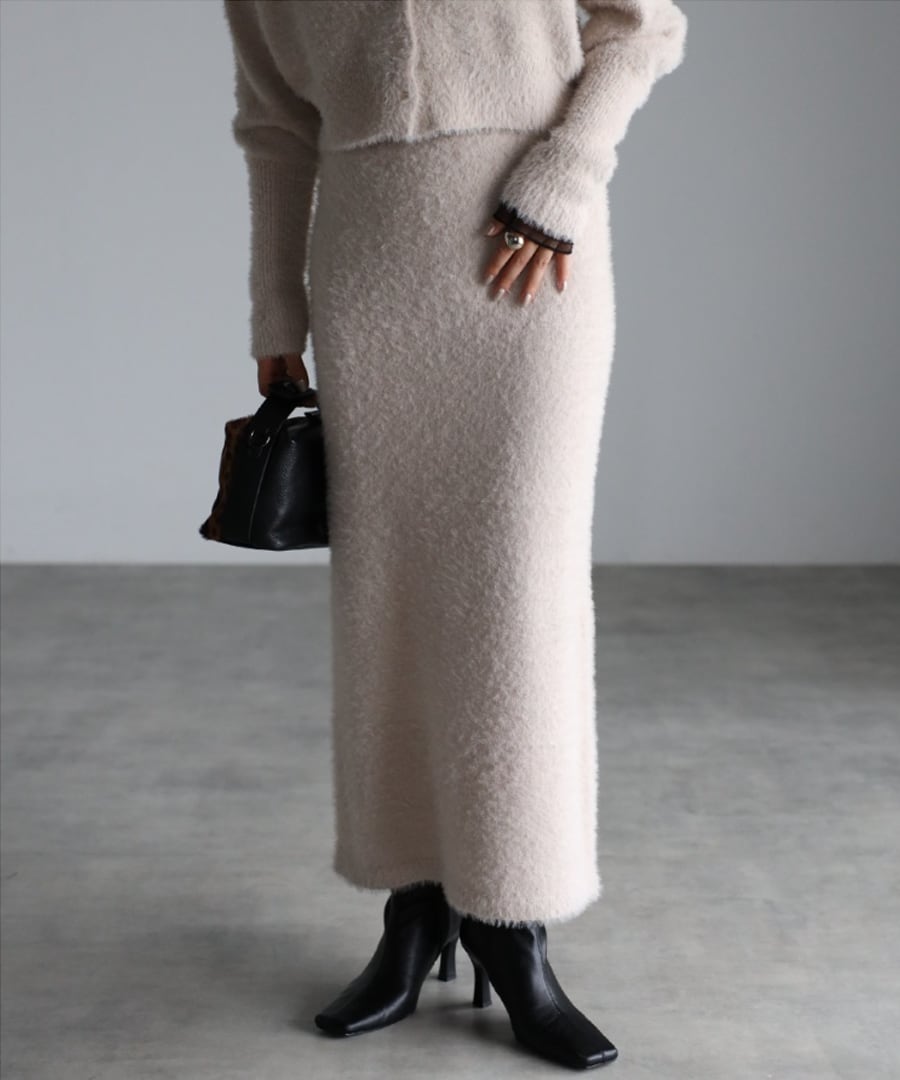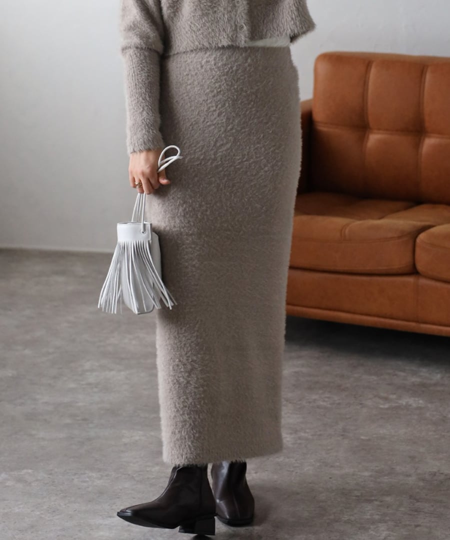トレンドのシャギーニットの編み地を使用したタイトスカート。