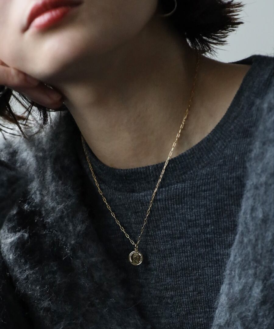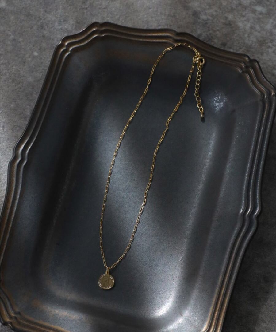 クラシカルなコインモチーフがポイントのシンプルチェーンネックレス