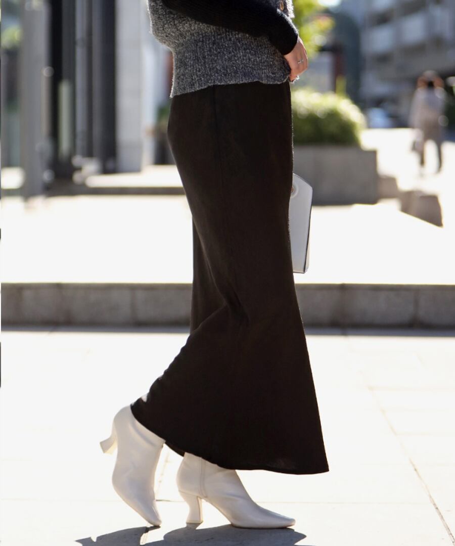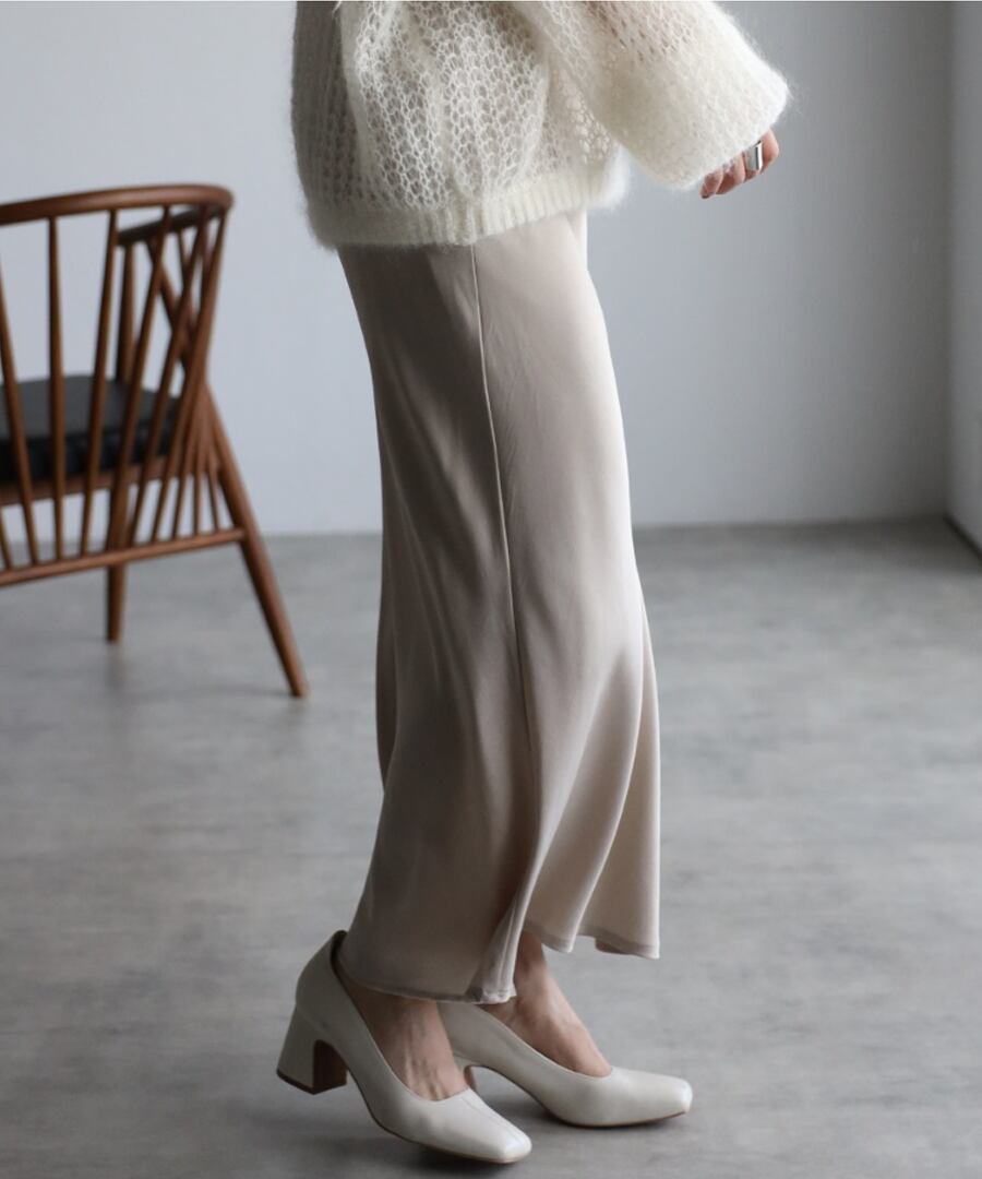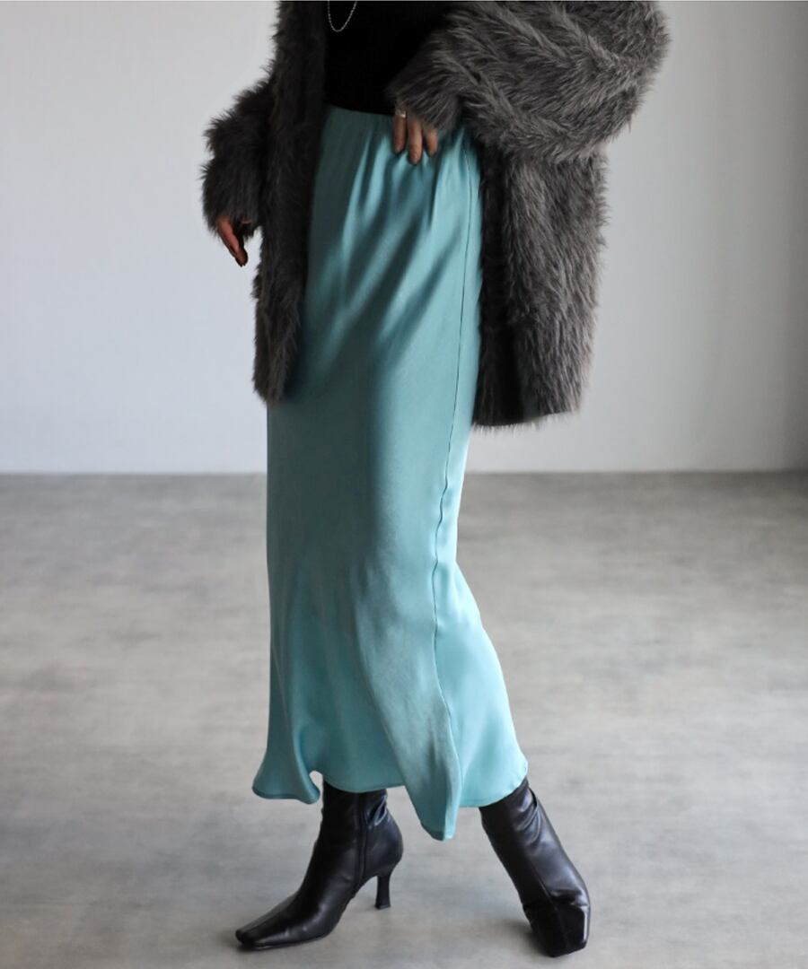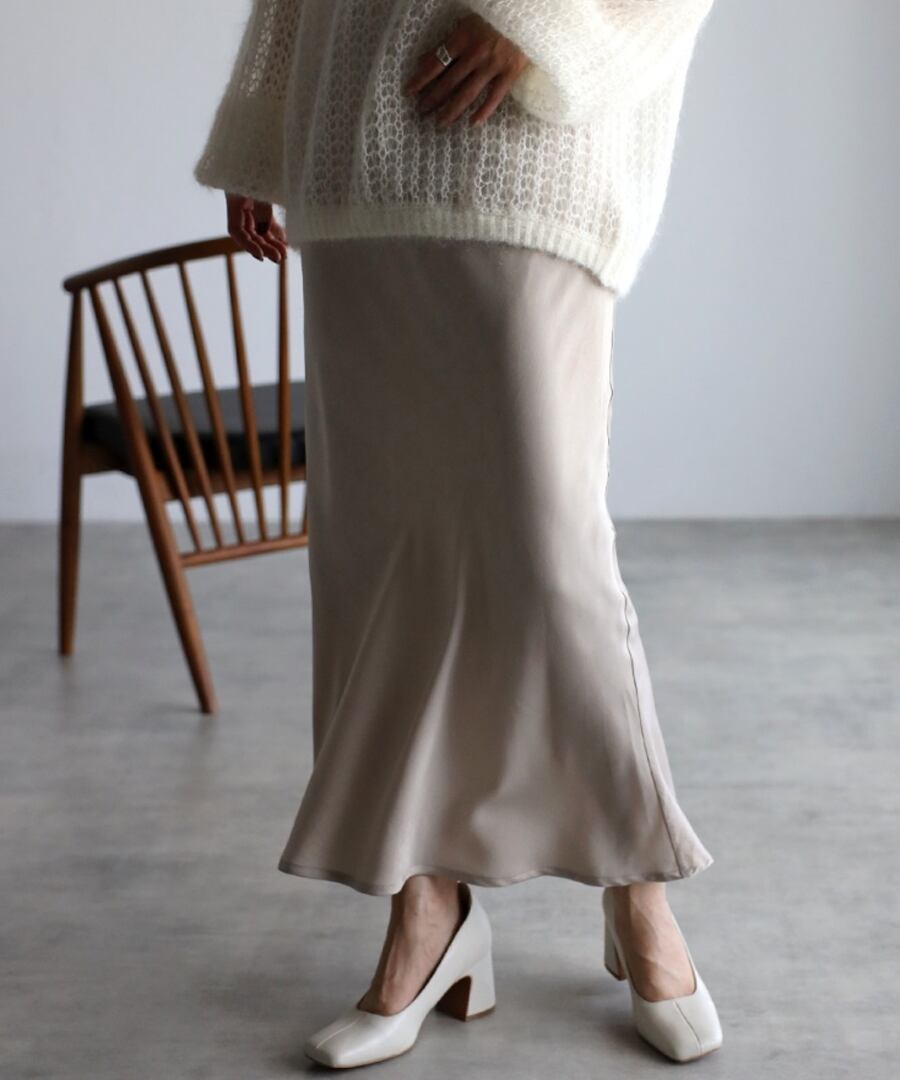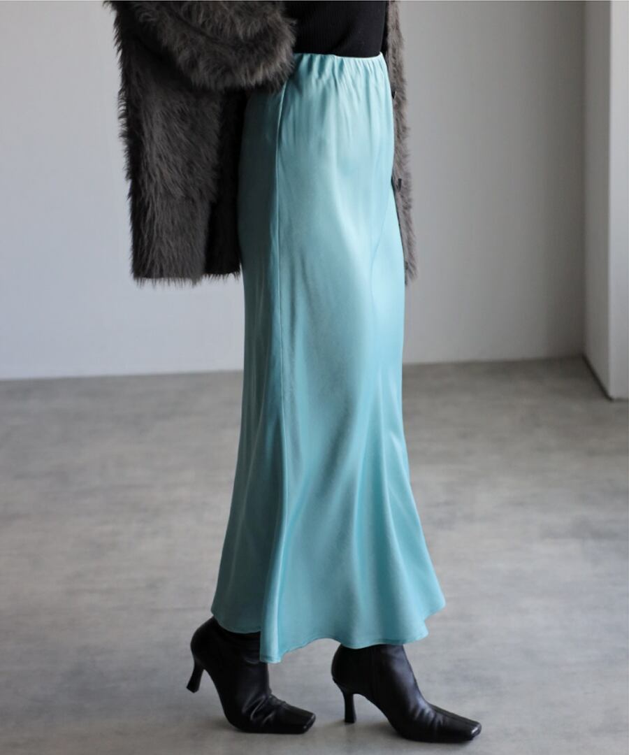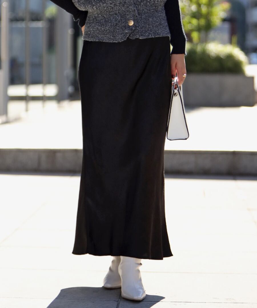 歩くたびに揺れる、綺麗な艶感が魅力のサテンスカート。