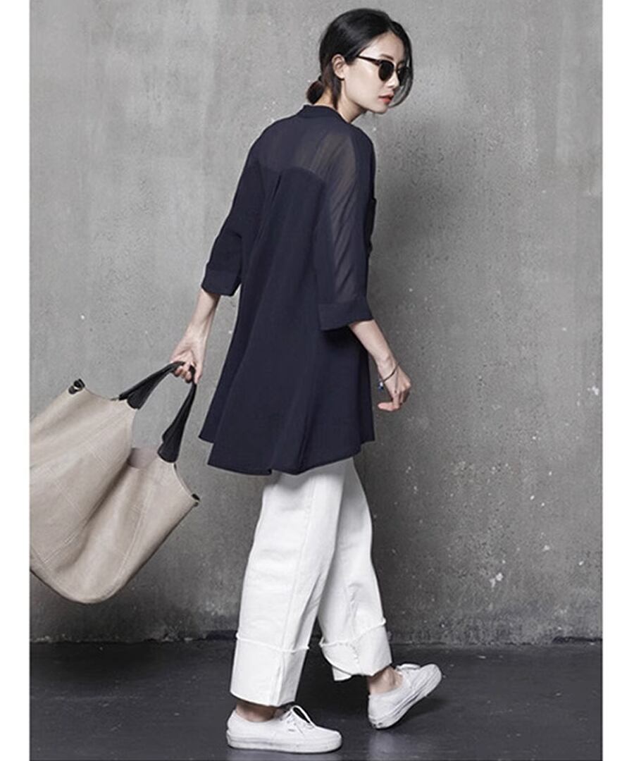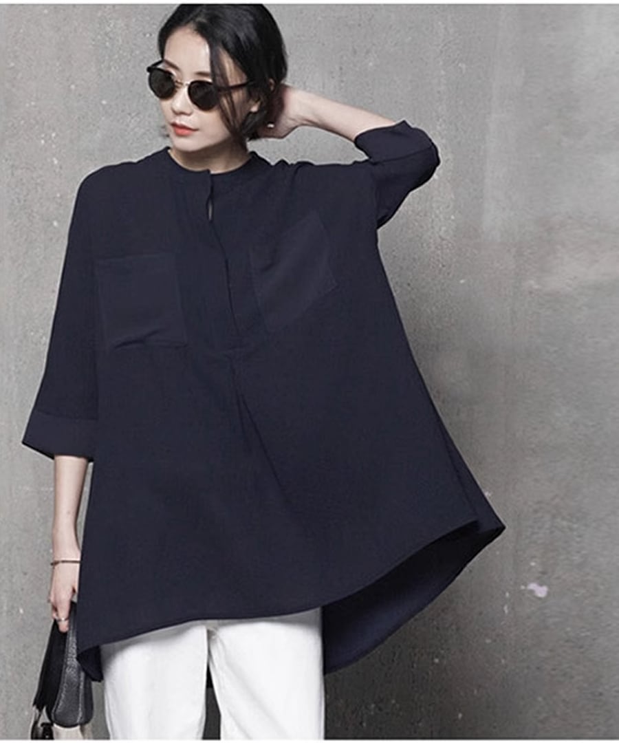 ダブルポケットシフォンシャツ◆2Collar【t-10798】