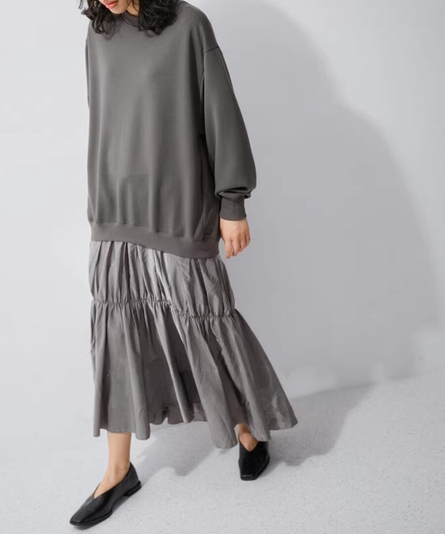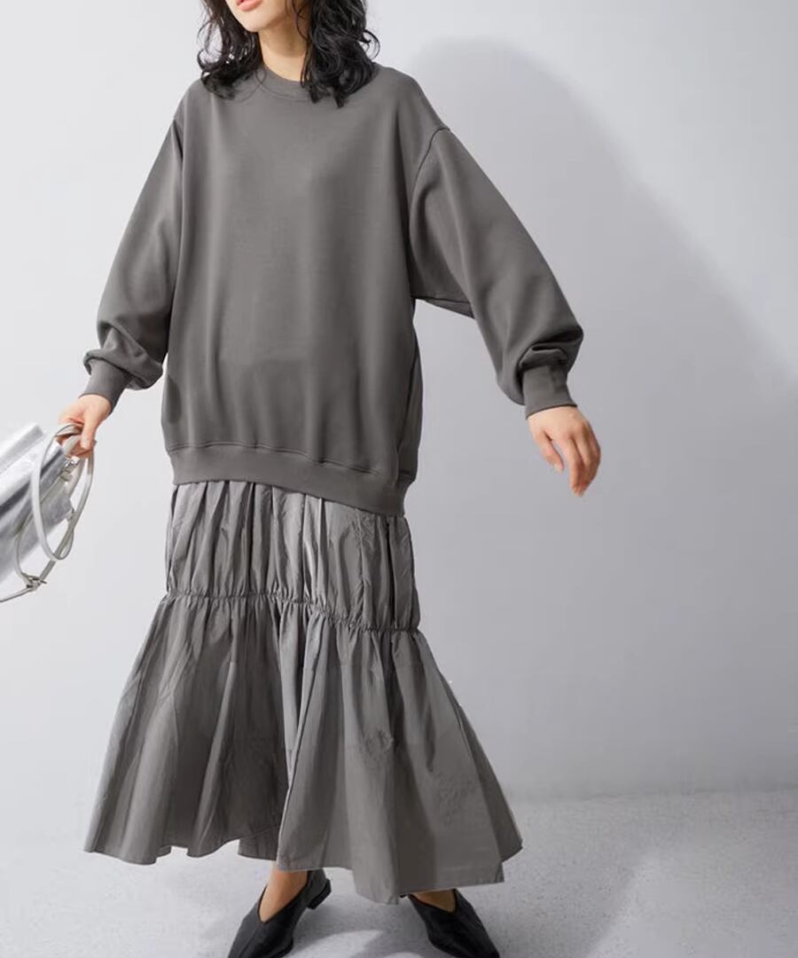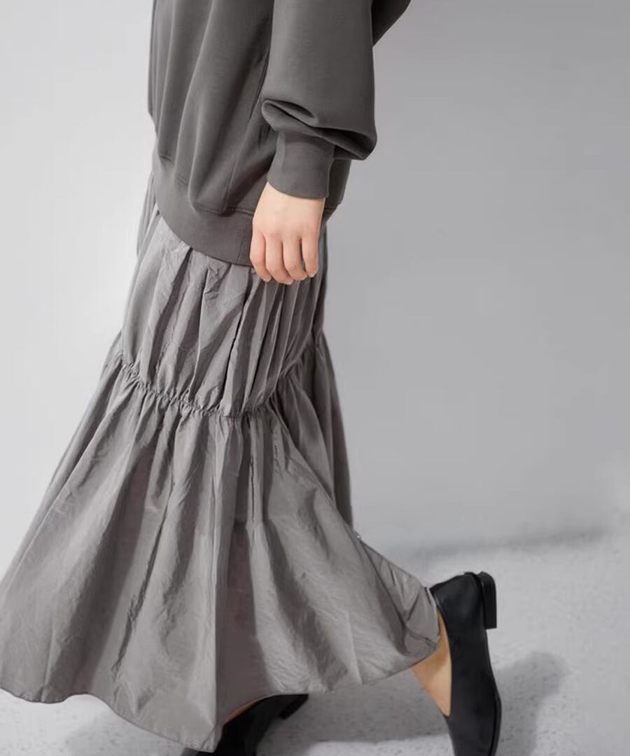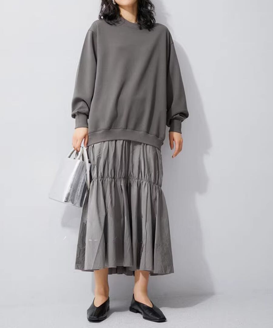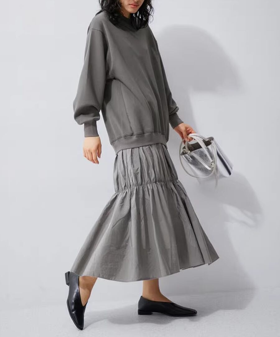 裾に向かって自然に広がるフレアーシルエットがこなれた印象に