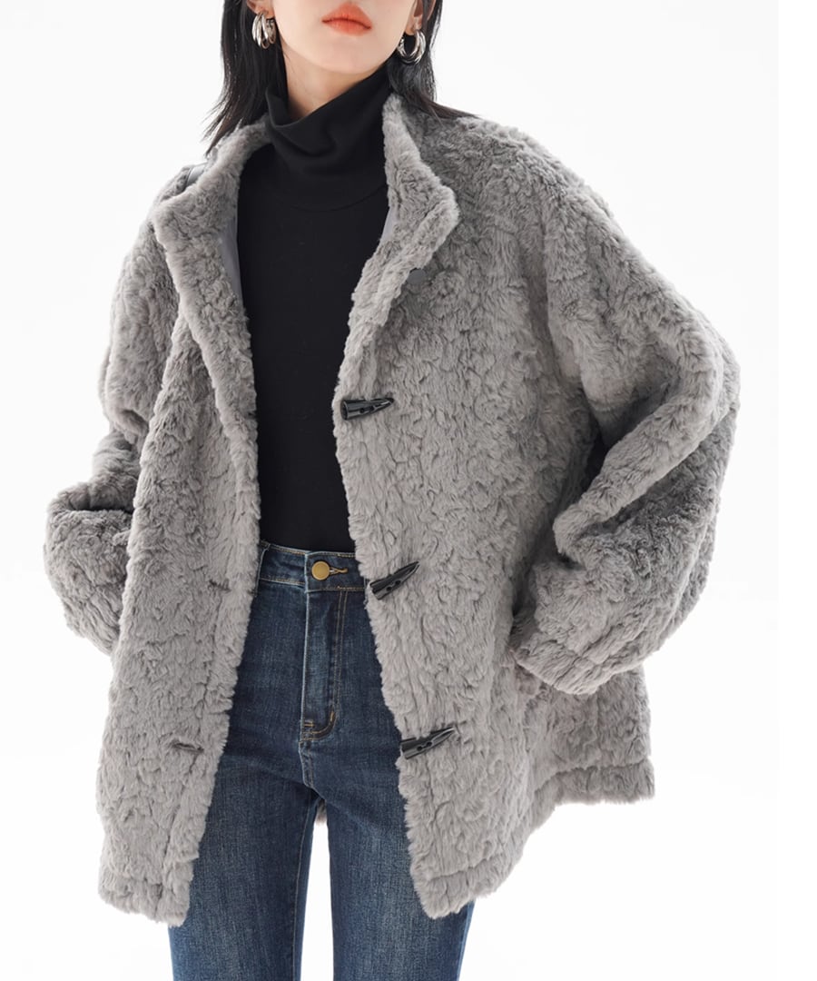 やわらか手触りで癒される、あたたかモコモコアウターです。