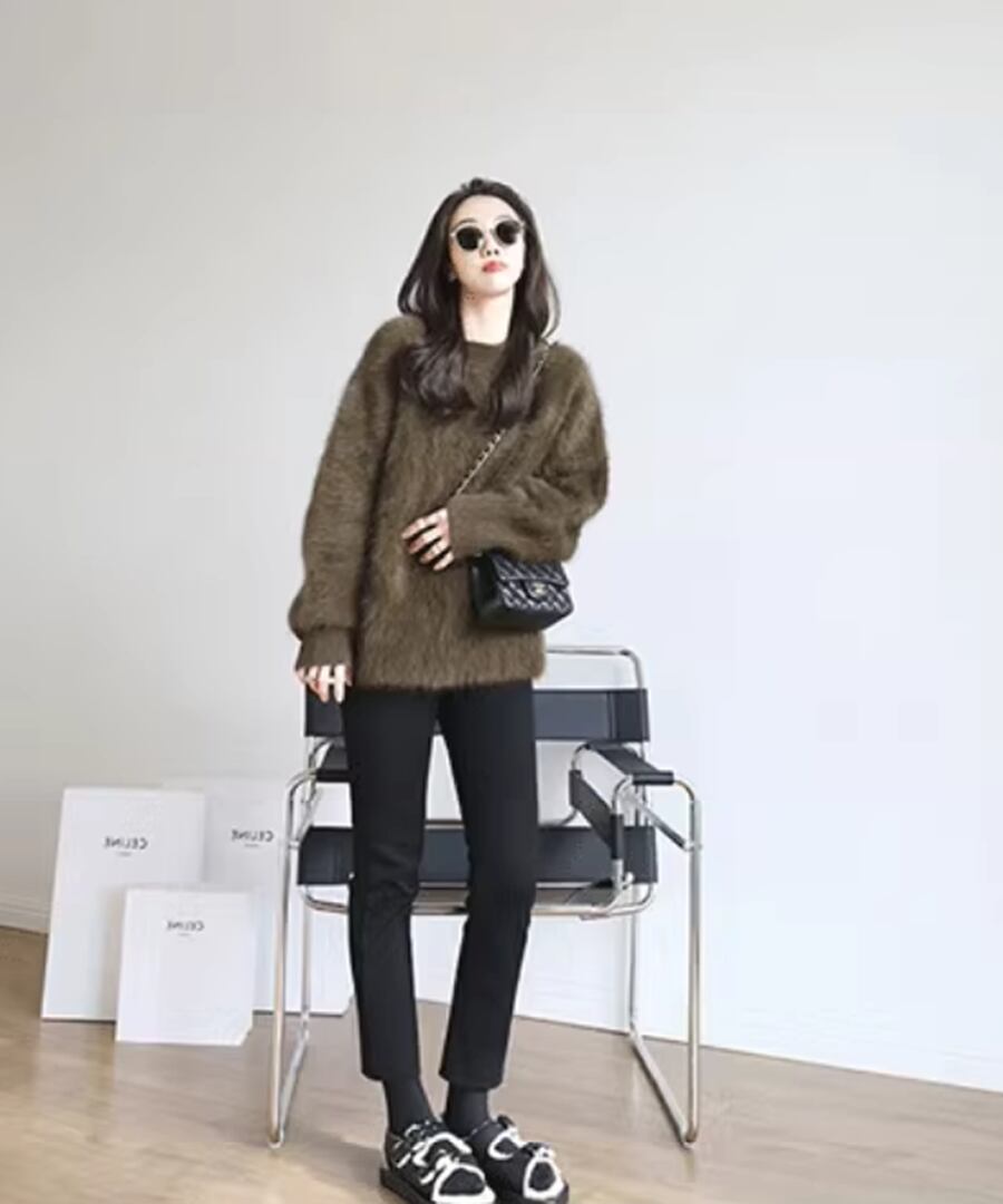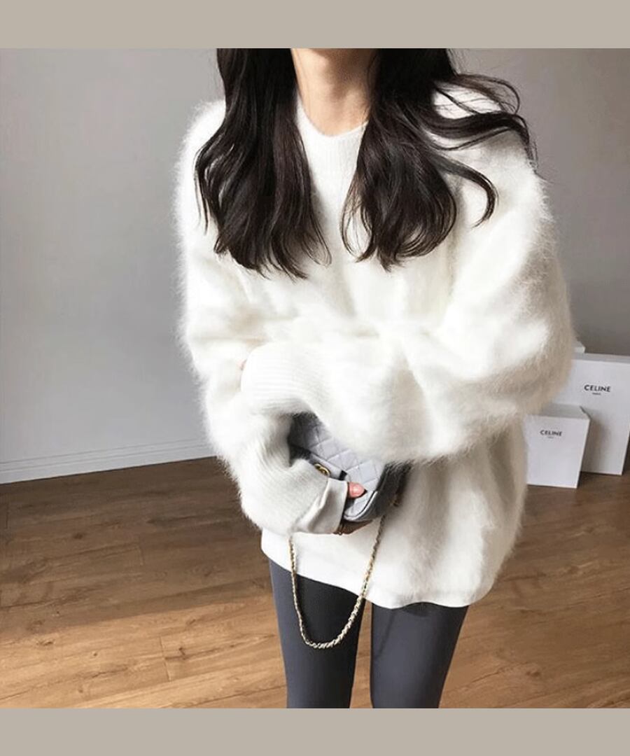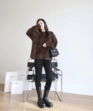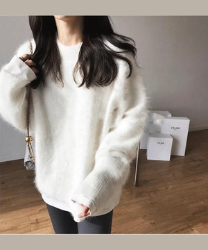 ミンクベルベットラウンドネックセーター◆3Collar【t-10829】