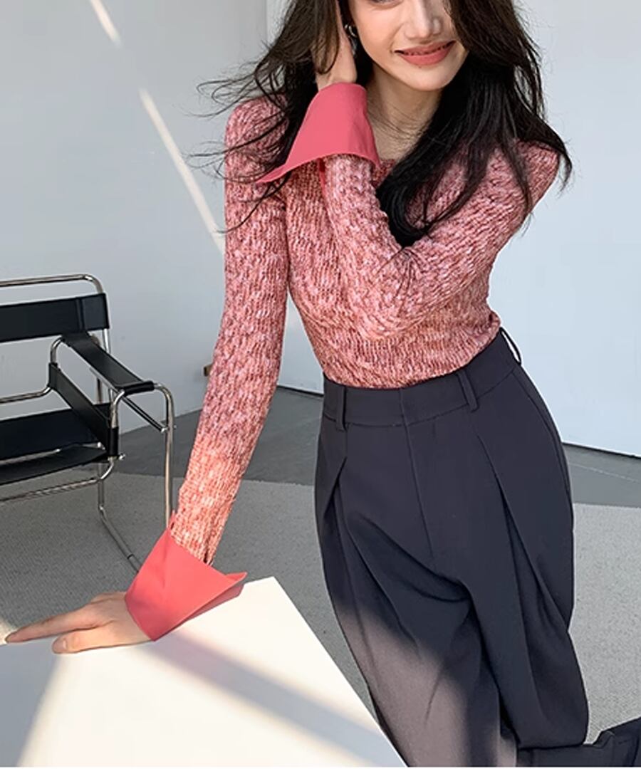 ワイドカフスデザインニット◆2Collar【t-10816】