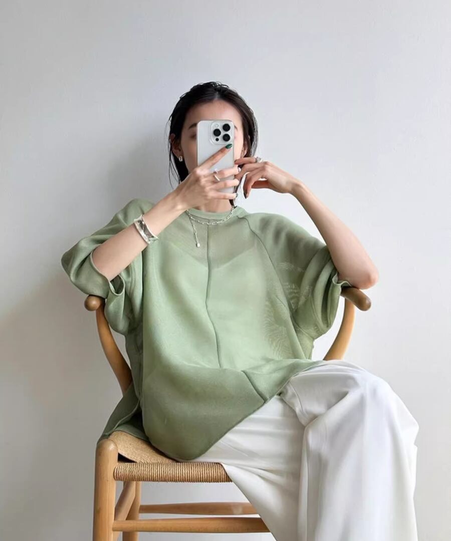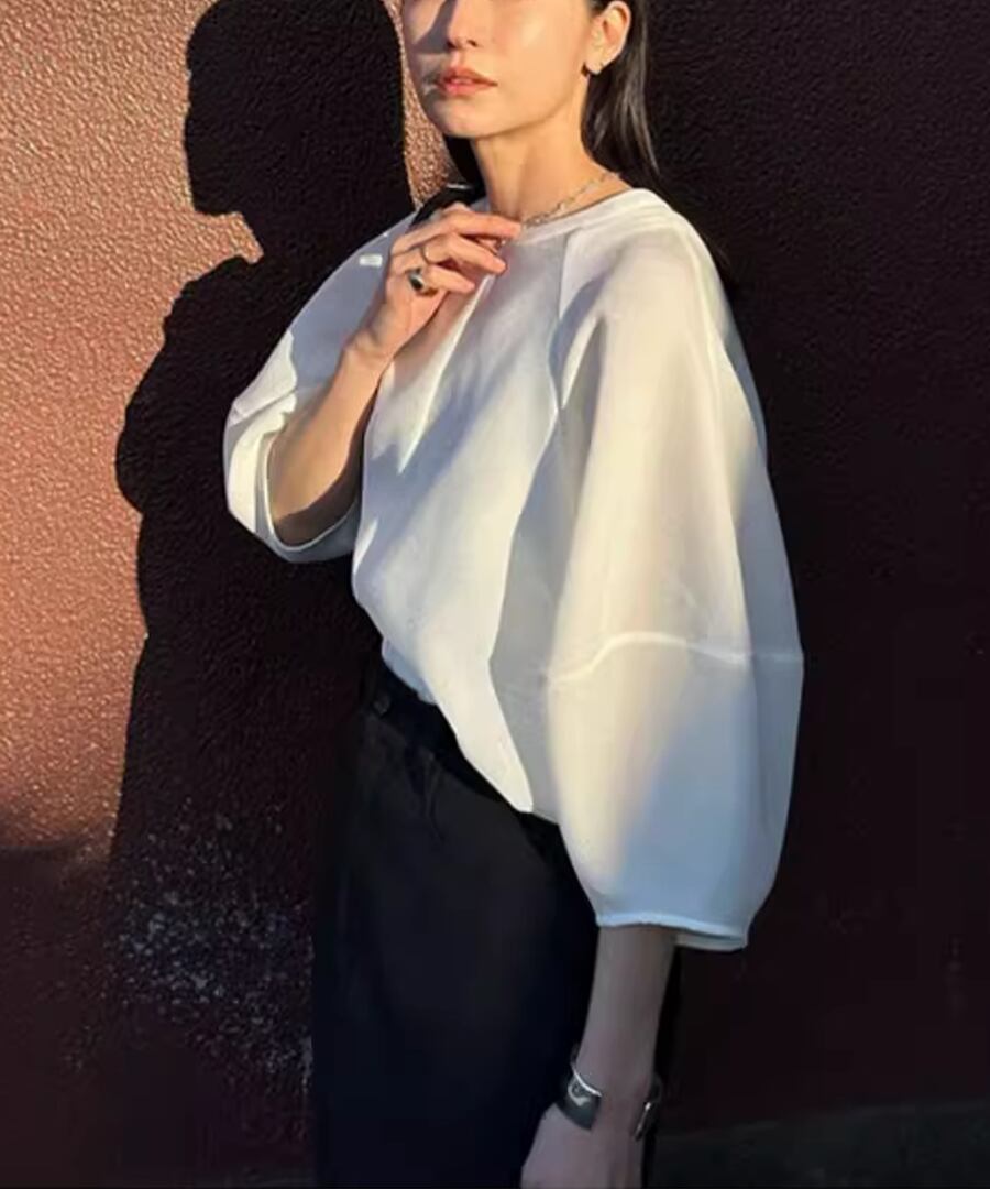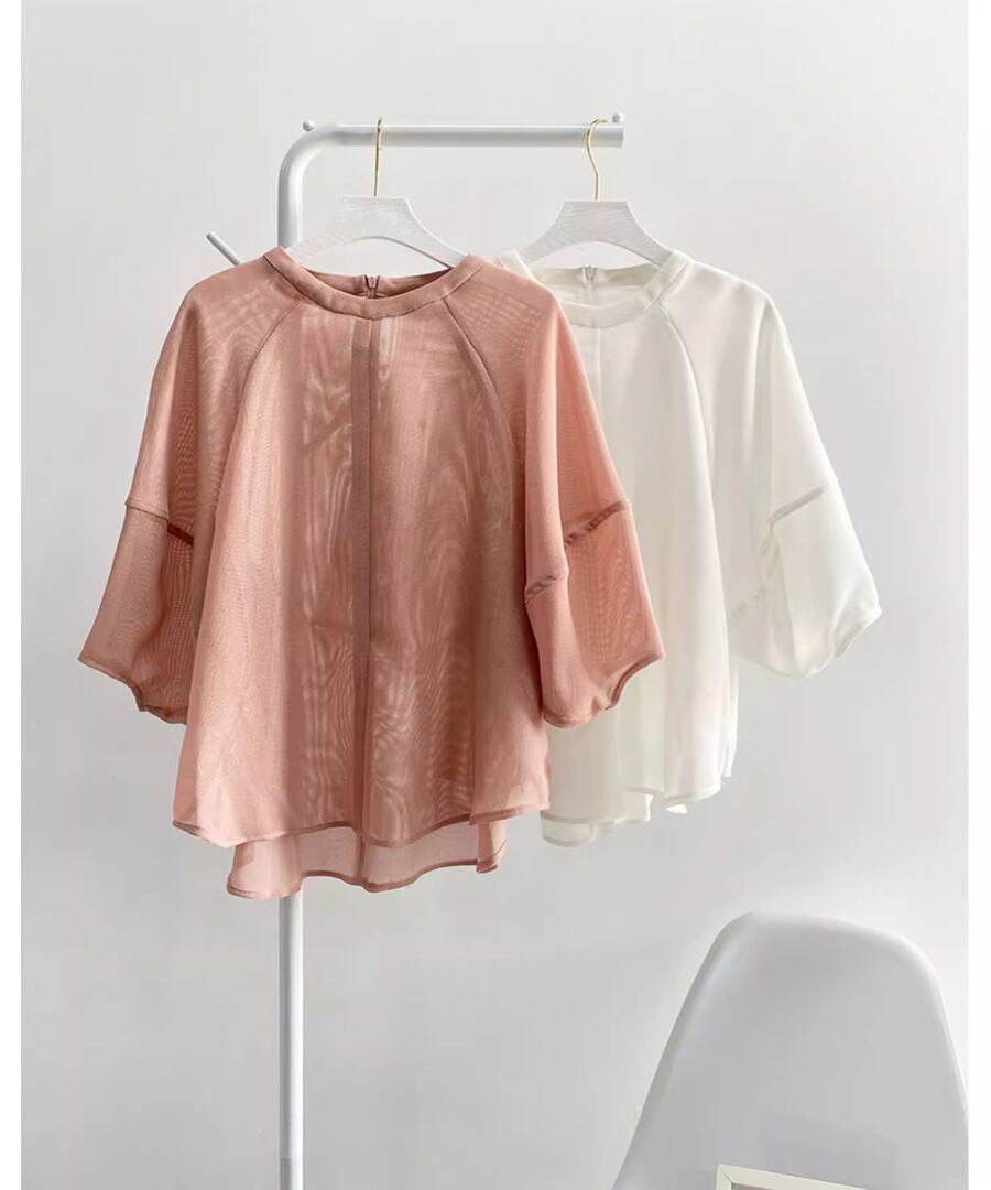 立体パフスリーブブラウス◆シースルー【t-10821】