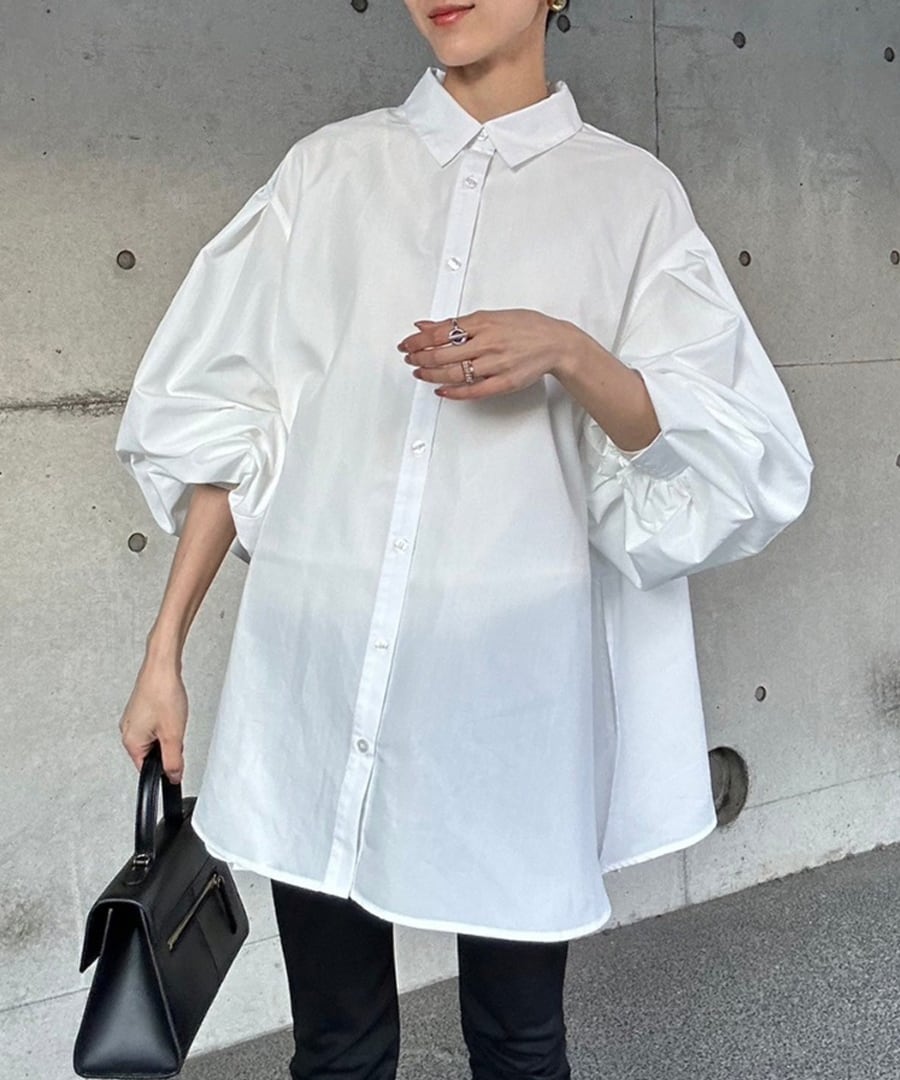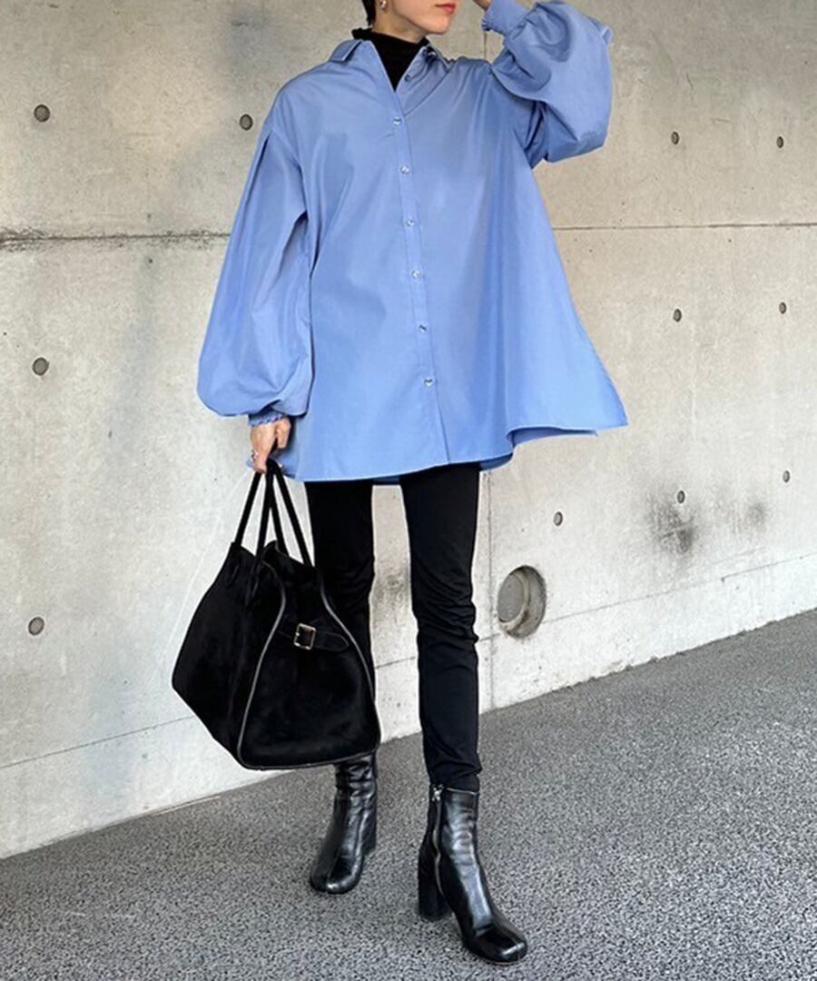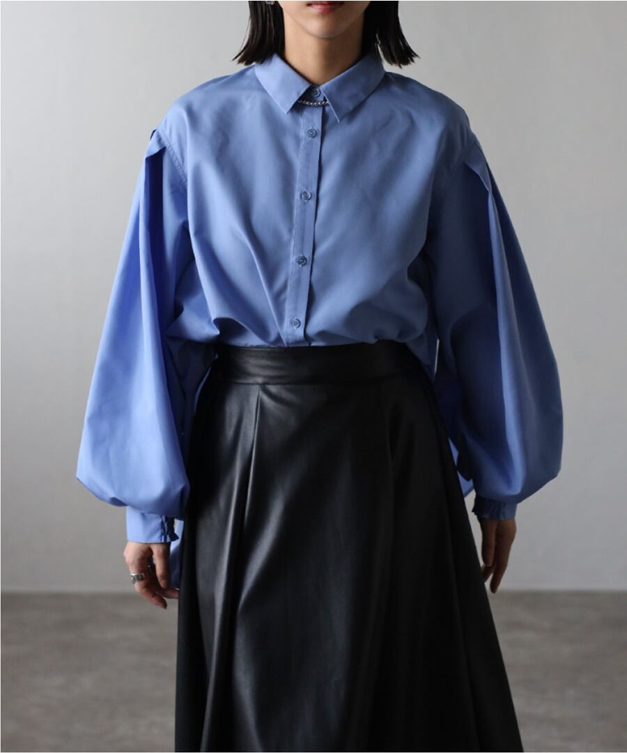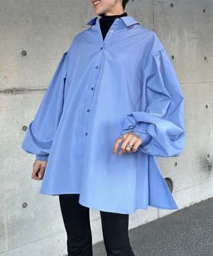 裾フレアバルーンスリーブシャツブラウス【t-10824】.