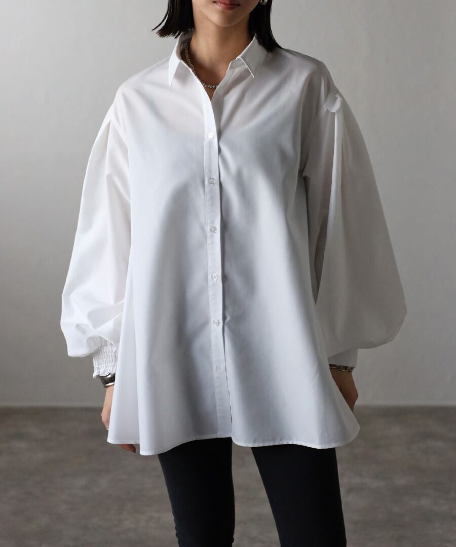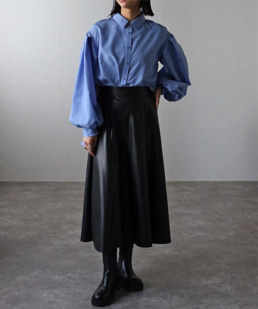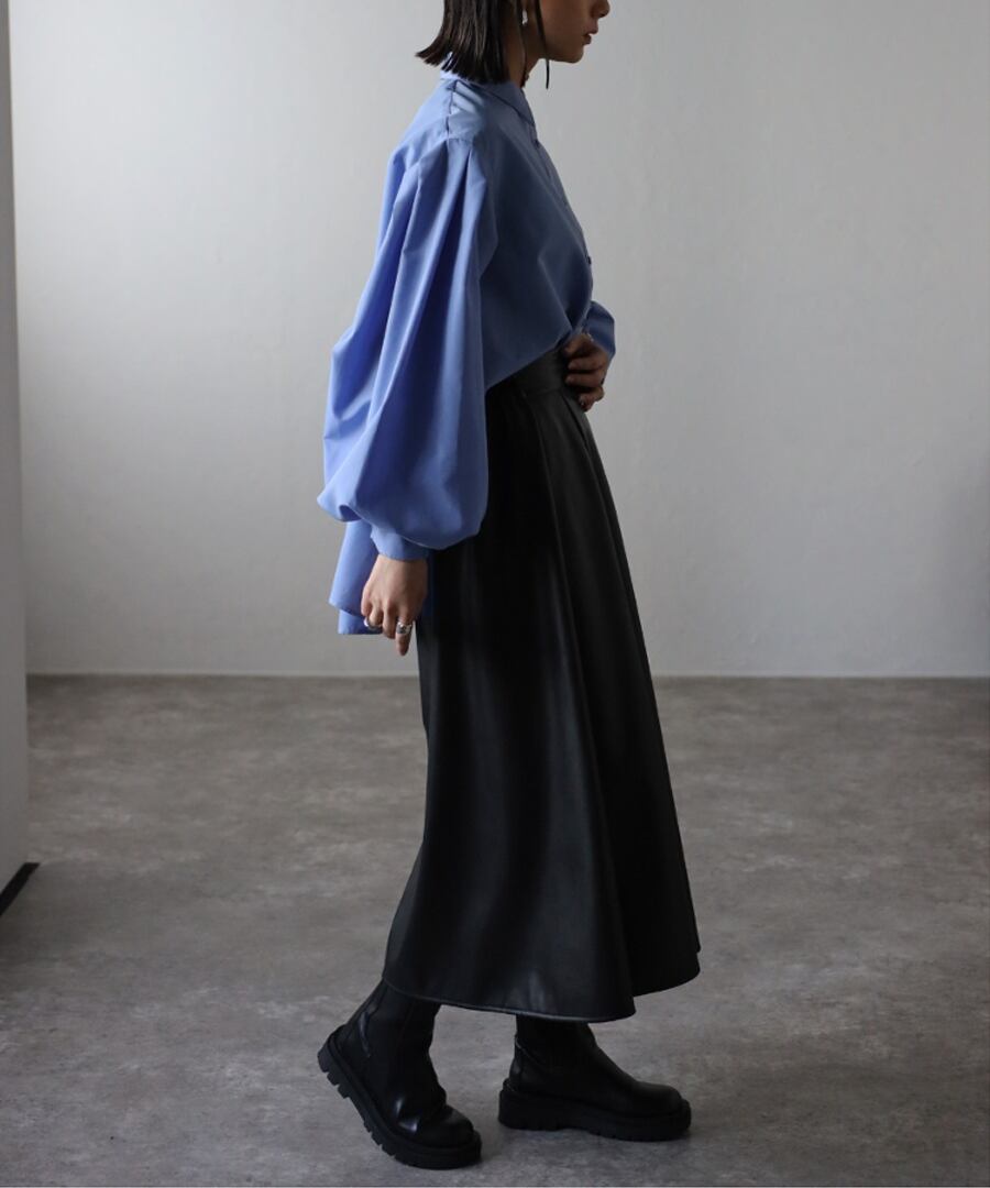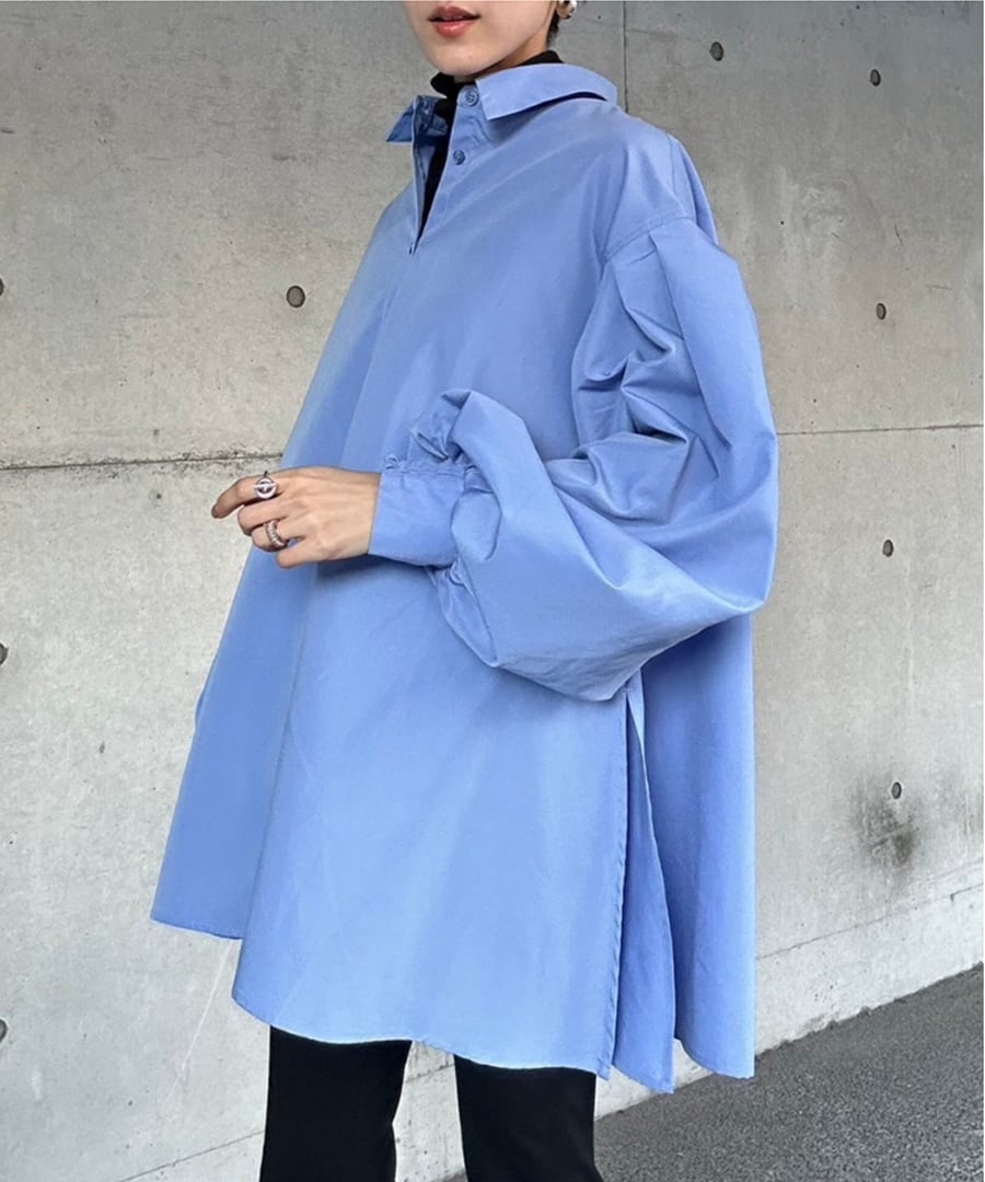 裾フレアバルーンスリーブシャツブラウス【t-10824】.