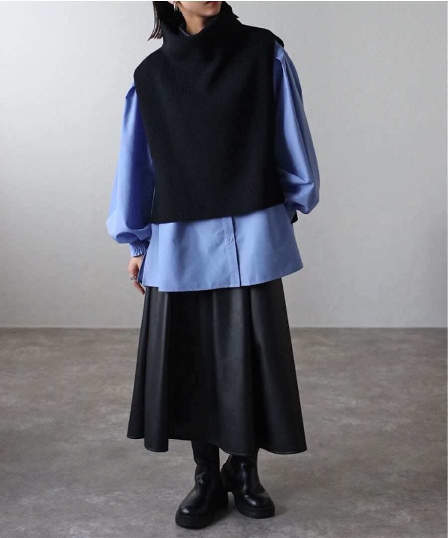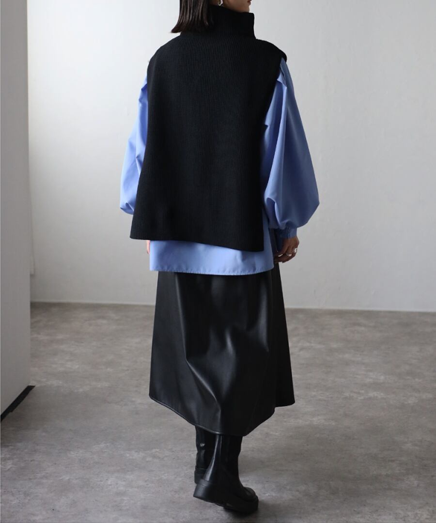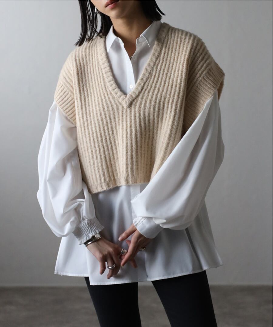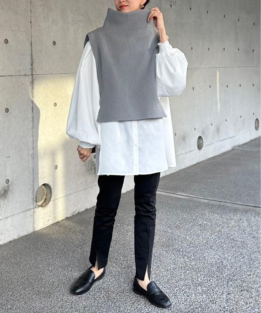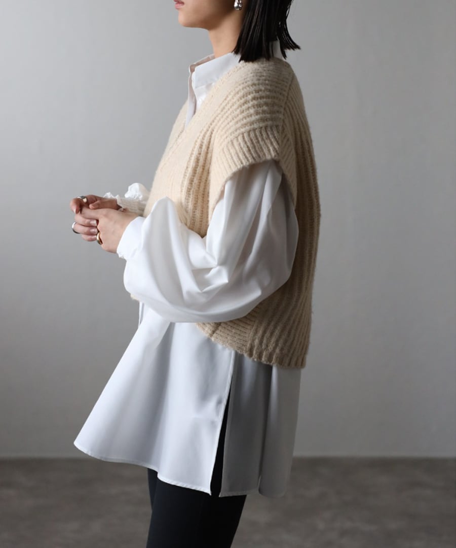 ※畦編みニット前後差ベストとレイヤードコーデしていただけるようシルエット&サイズ感を調整しておりますので、2点合わせたセットコーデを是非お楽しみください。