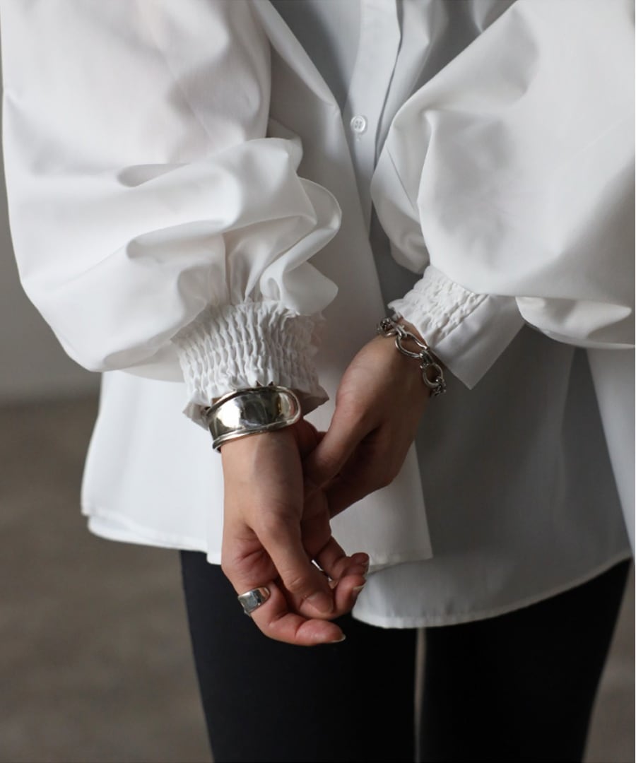 袖口は一部ゴム入りのたくし上げやすい仕様で、ギャザーでクシュっとした繊細な印象が◎