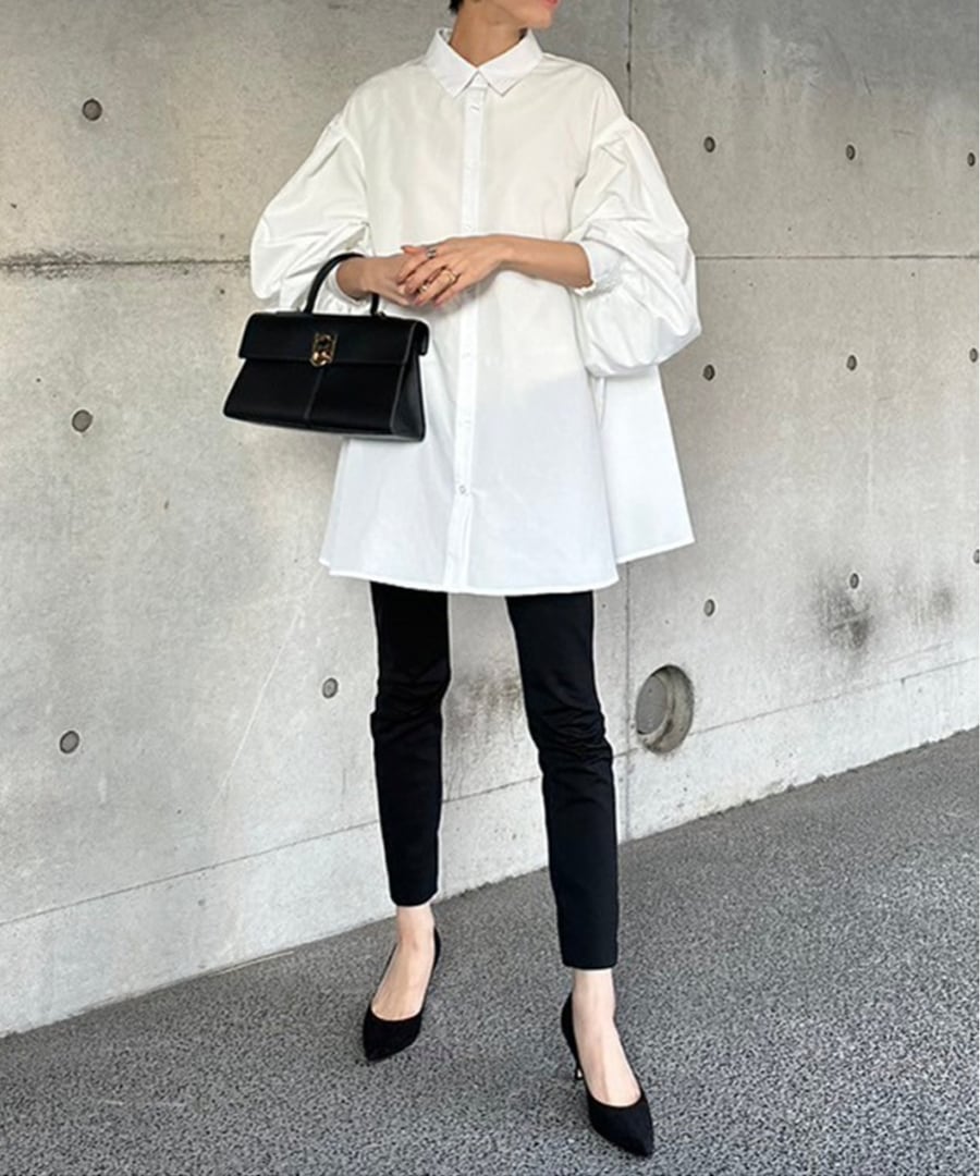 ボリュームがあるので、スリムなパンツやIラインスカートとも相性抜群です。