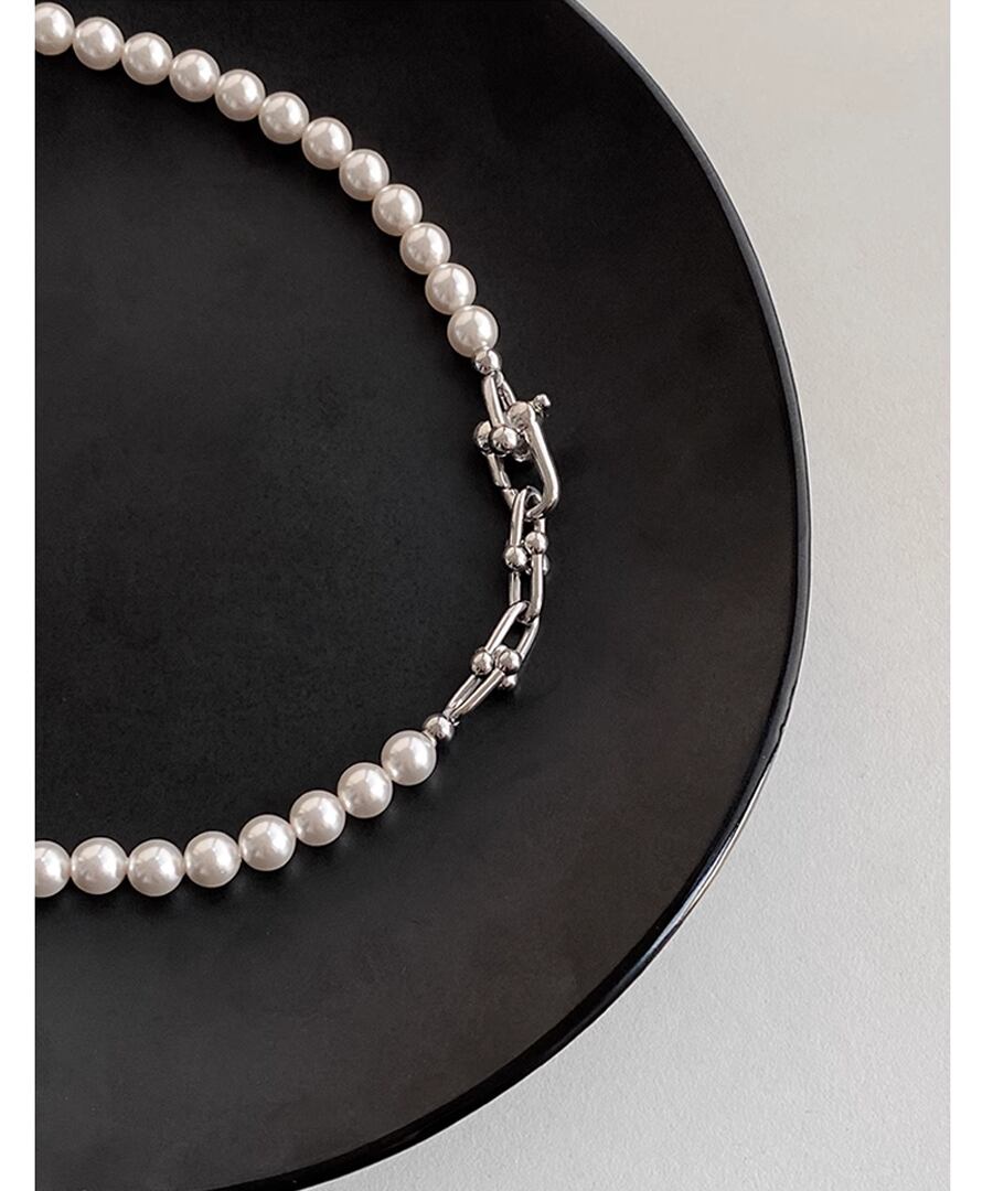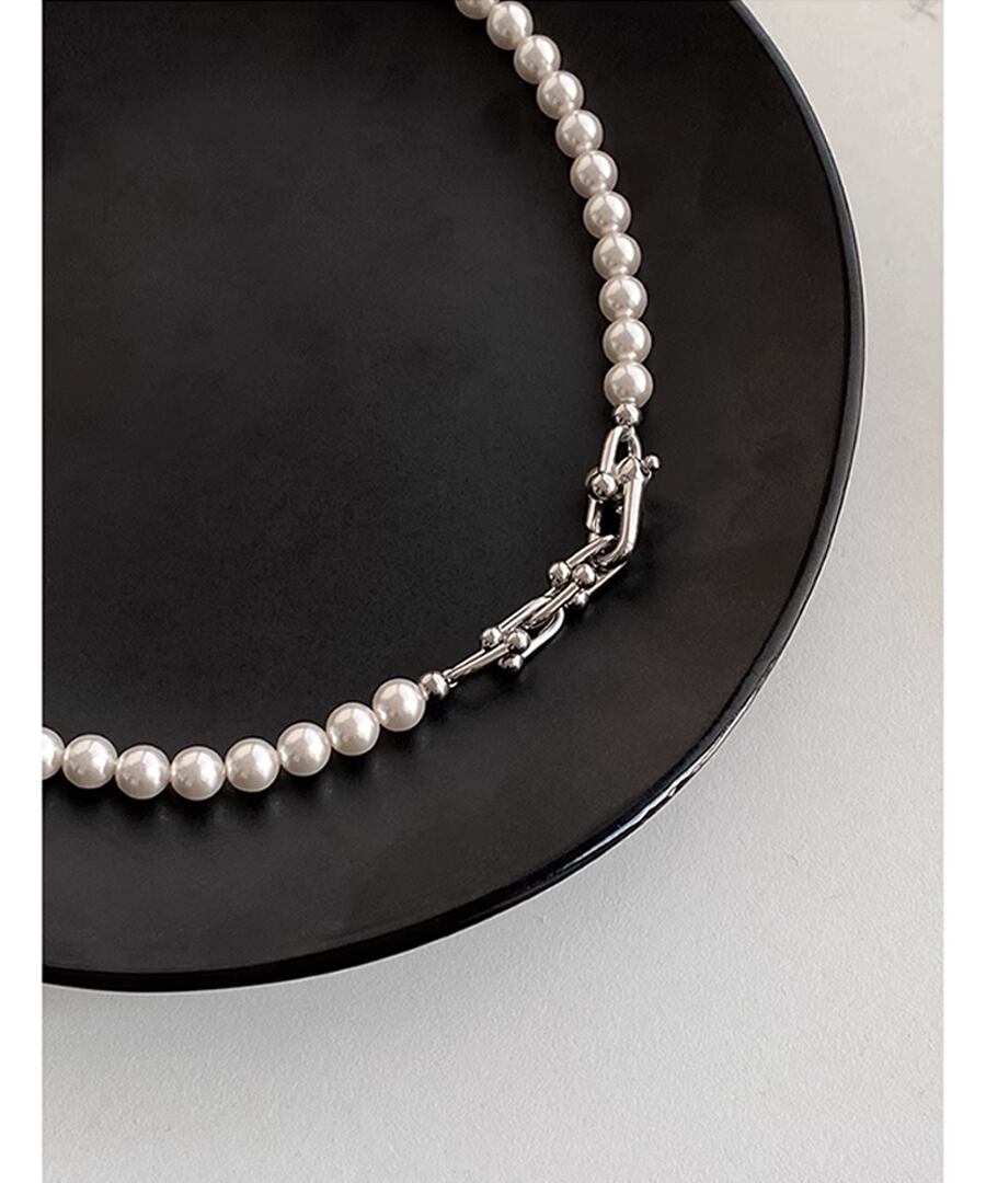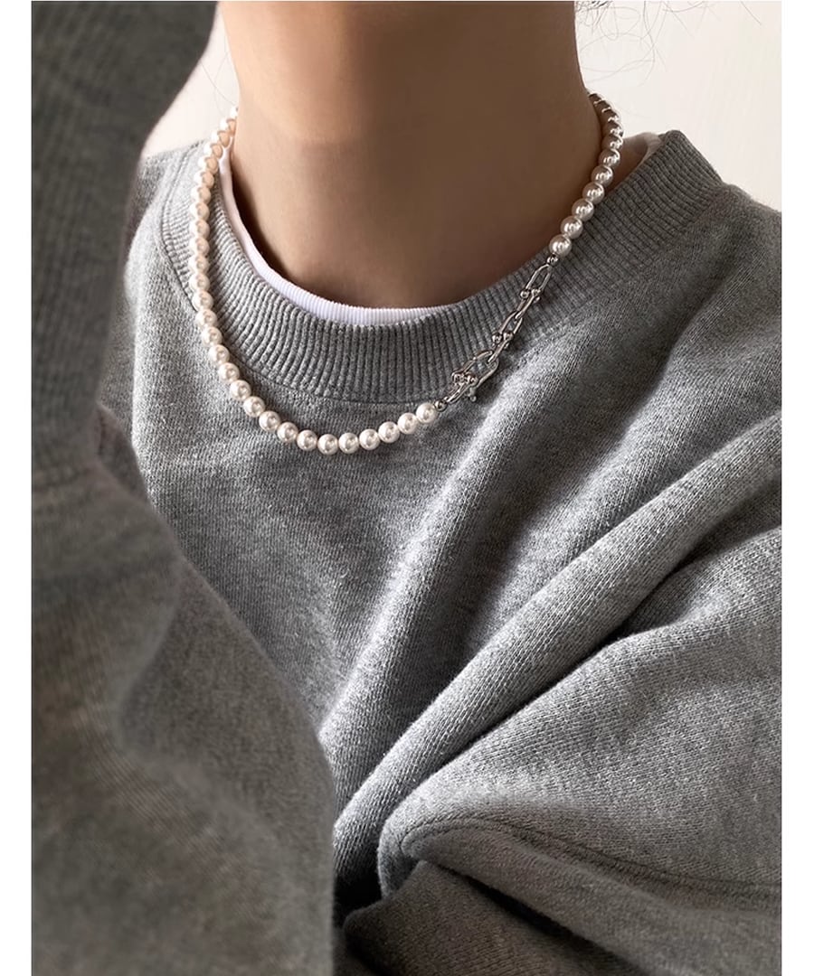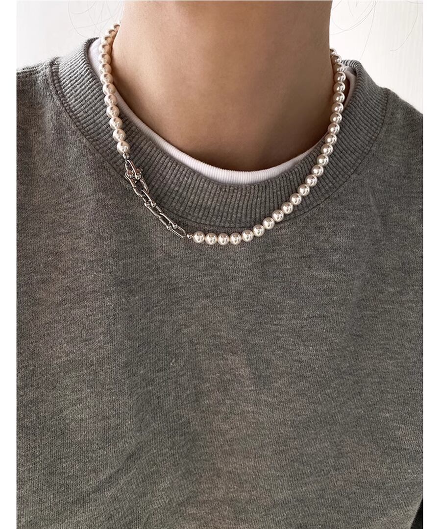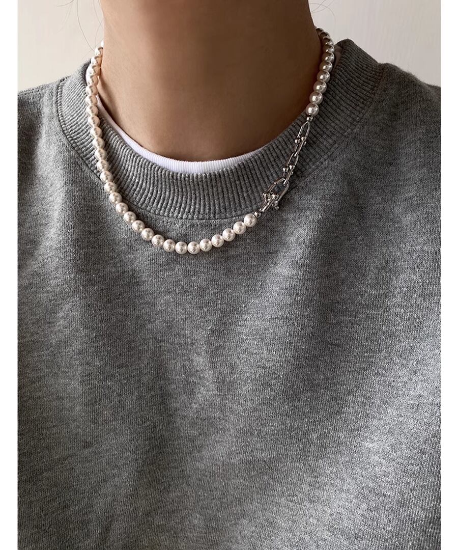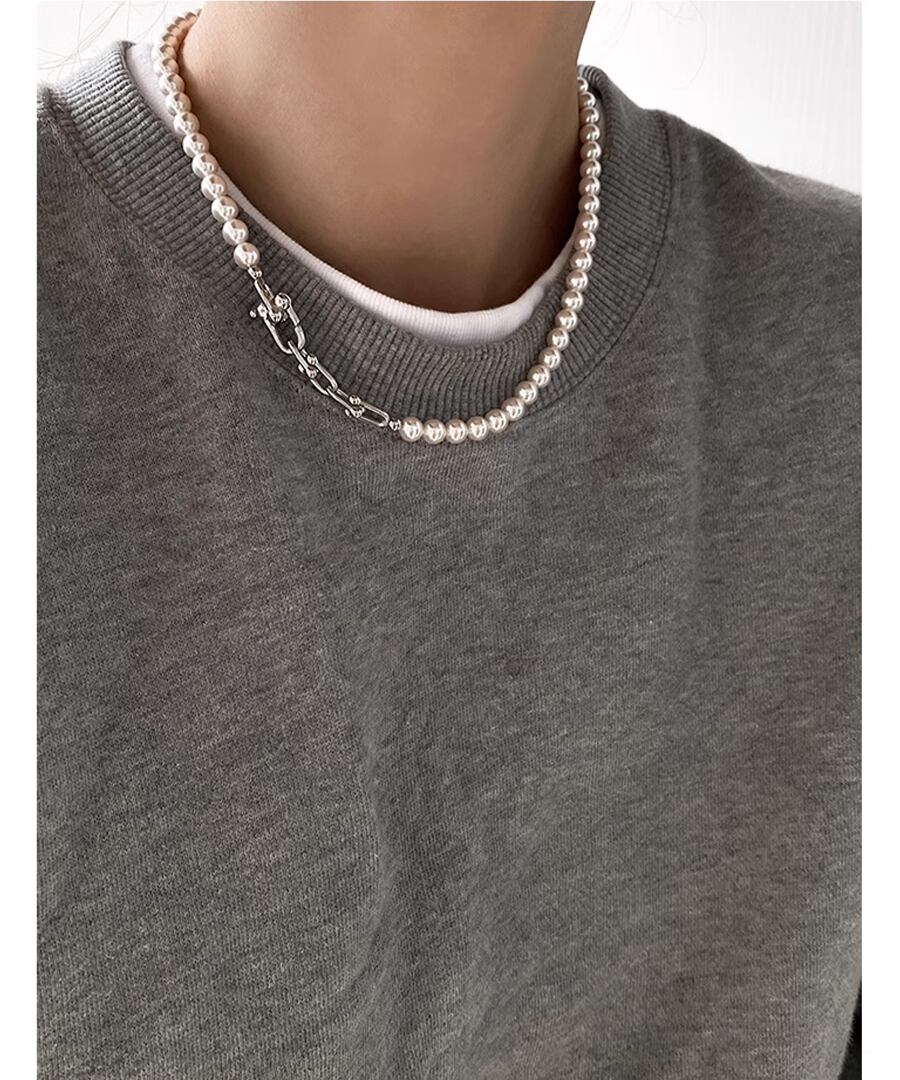 チェーンデザイン◆人工パールネックレス【e-70631】