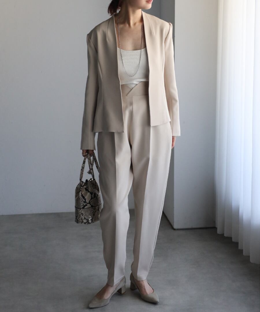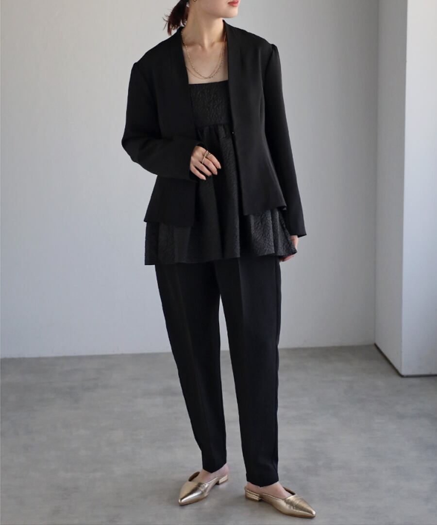 ※同素材のハイウエストテーパードパンツや、フレアラインペプラムブラウスと合わせていただくと、セットアップコーデがお楽しみいただけます。