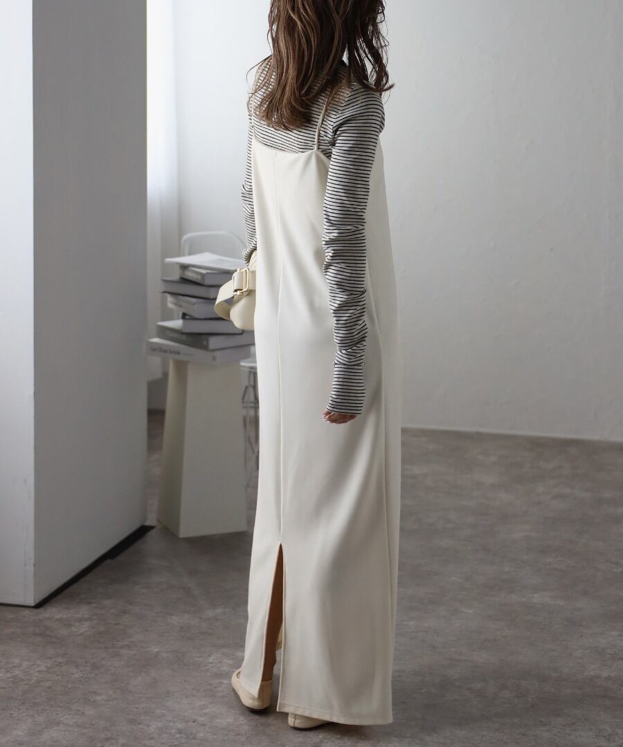 胸パッド取り外しキャミロングワンピース【w-30390】.