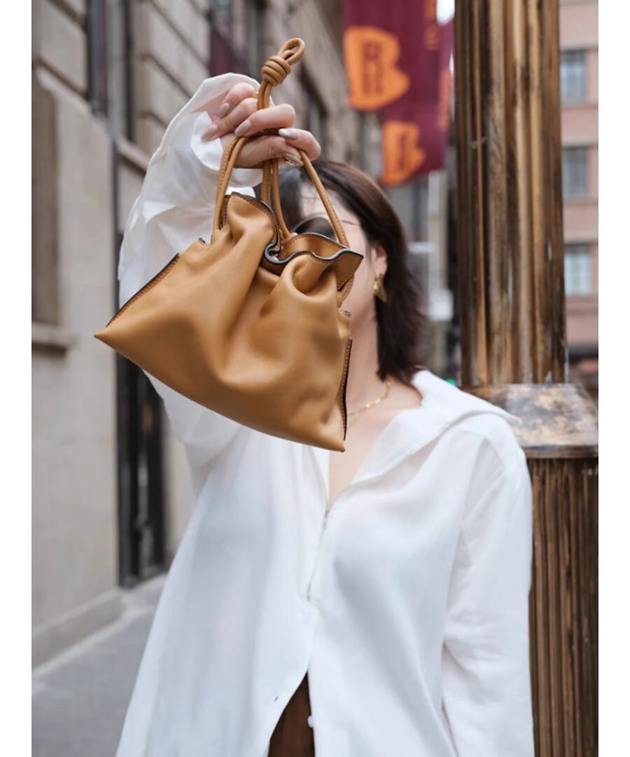 紐を調節することでショルダー にもハンドバッグにもなる、大人の遊び心があるバッグ
