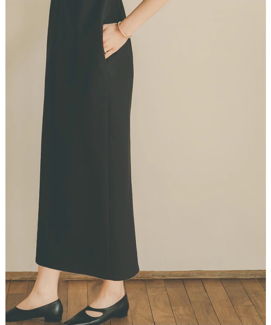 シンプルでありながら、セクシーさが際立つスリムラウンドネックのロングワンピース。